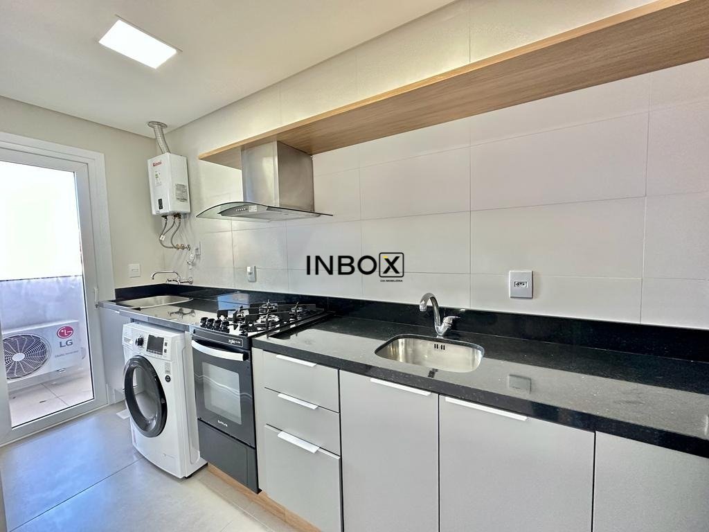 Apartamento composto por: Sala de estar e jantar com mobília fixa e ar condicionado split, mesa cadeiras e sofá, cozinha funcional com mobília fixa e eletros (forno, fogão, coifa, geladeira; micro ondas e juncker), torneiras mono comando em inox, banheiro completo com mobília e chuveiro na opção Elétrico ou Gás. ÁREA DE SERVIÇO com de cuba em inox, cortinas na sala e dormitório SACADA ABERTA na área de serviços ;um box de garagem.
