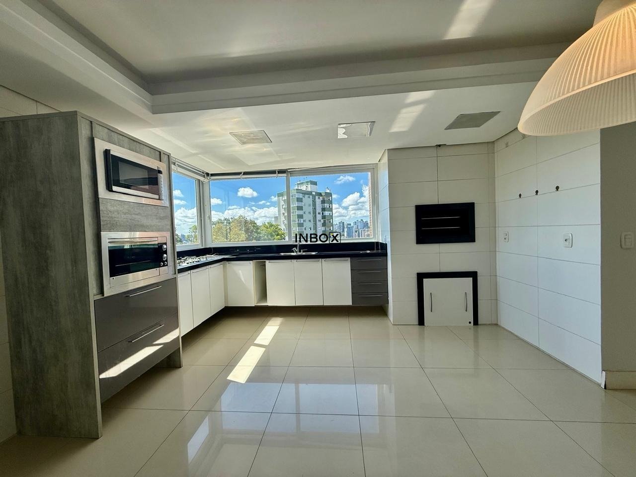 Sala de estar e jantar ampla, com lareira a lenha, churrasqueira, cozinha com móveis fixos, área de serviços mobiliada com sacada integrada, três dormitórios, Sendo 01 com suíte com closet e sacada, escritório, banheiro social com ventilação natural, ar-condicionado split nos quartos.