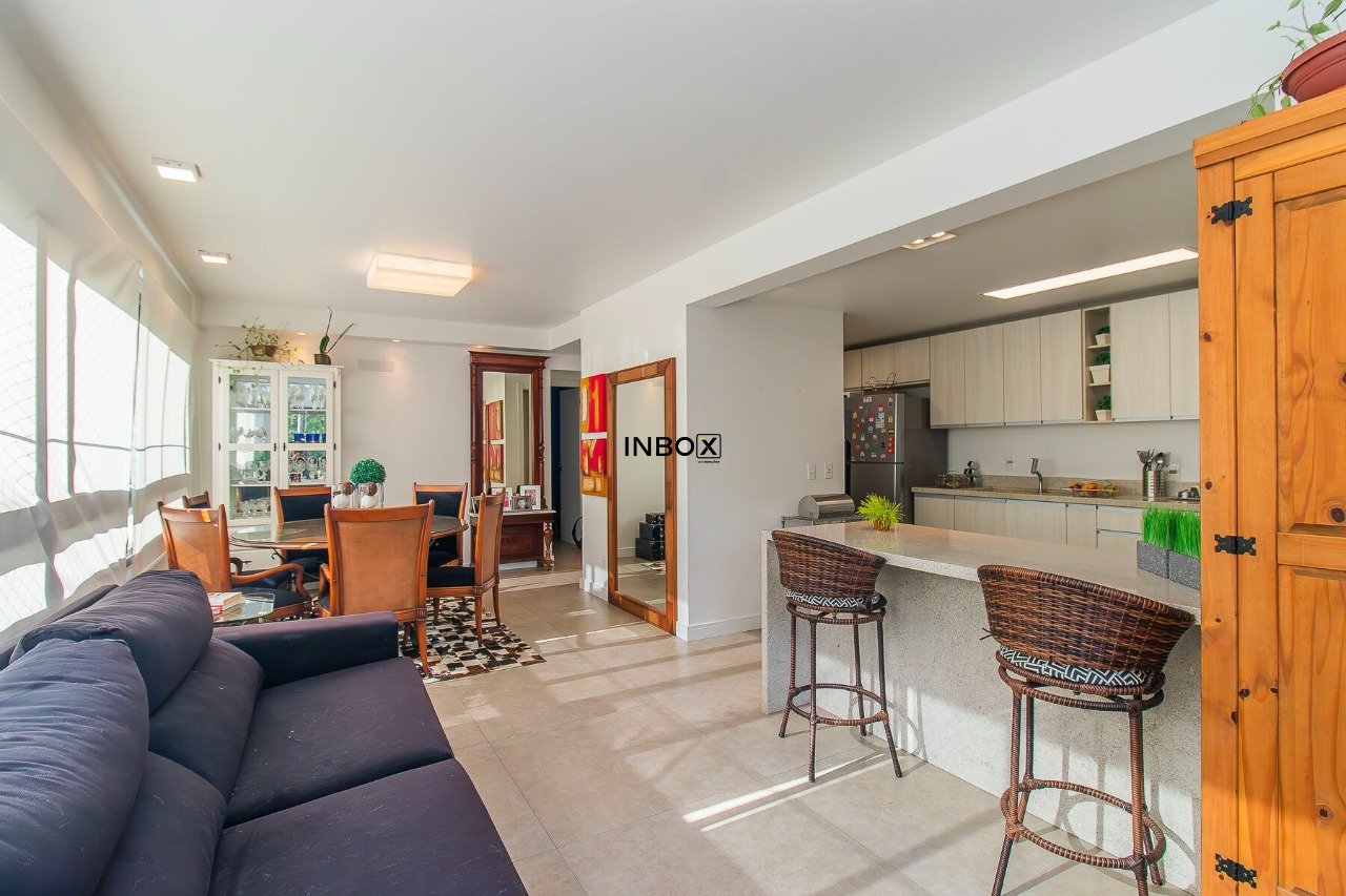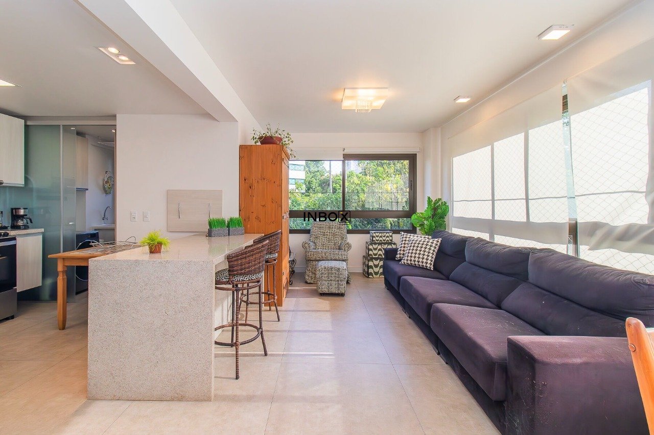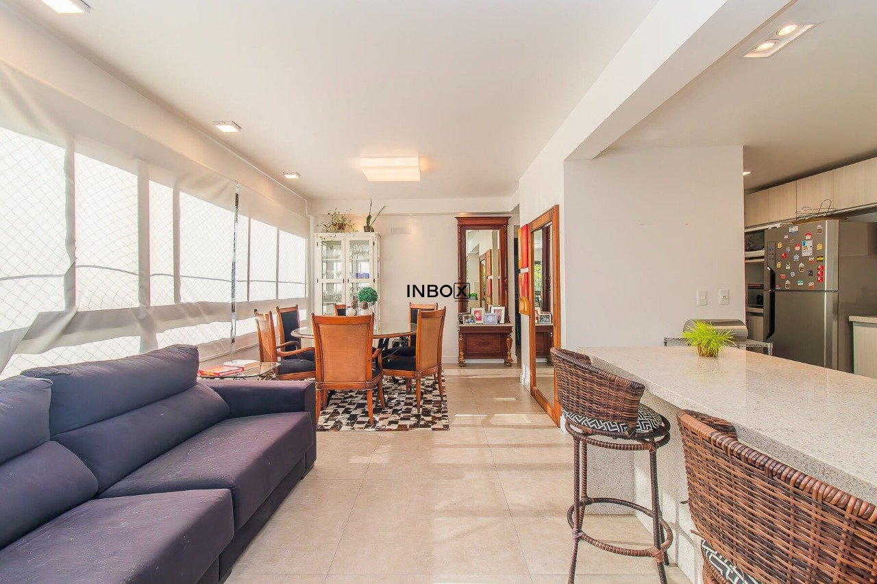 Belíssimo apartamento semimobiliado, com 110 m² privativos, projetado para oferecer conforto, funcionalidade e sofisticação. Conta com um living espaçoso e integrado, distribuído em três ambientes, com churrasqueira, cozinha americana e lavanderia separada.