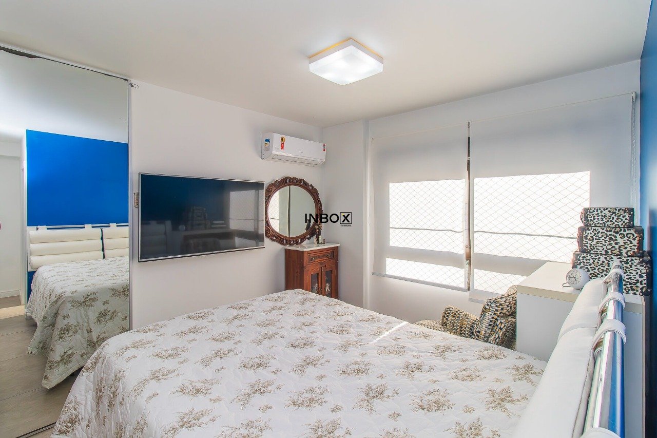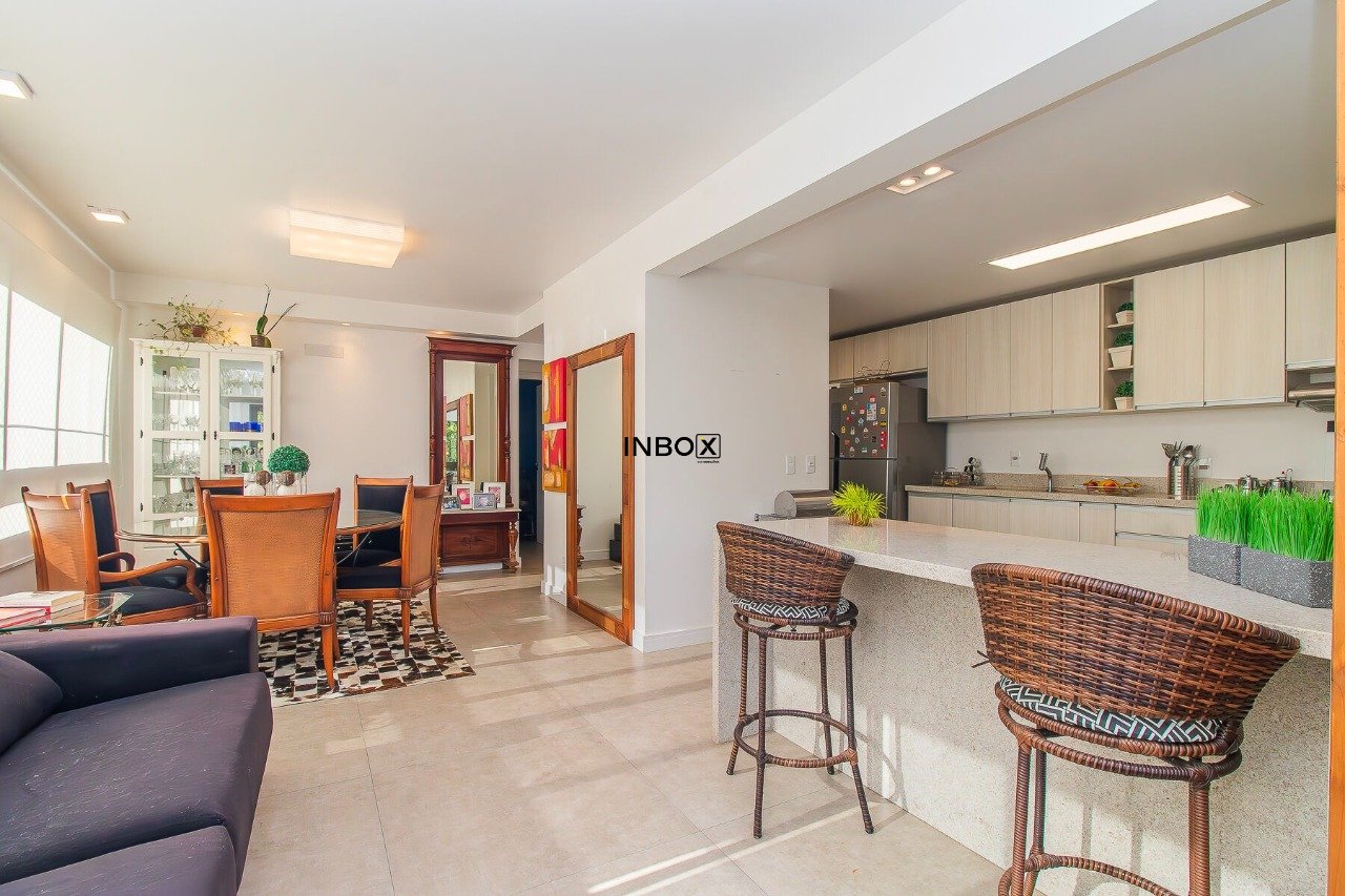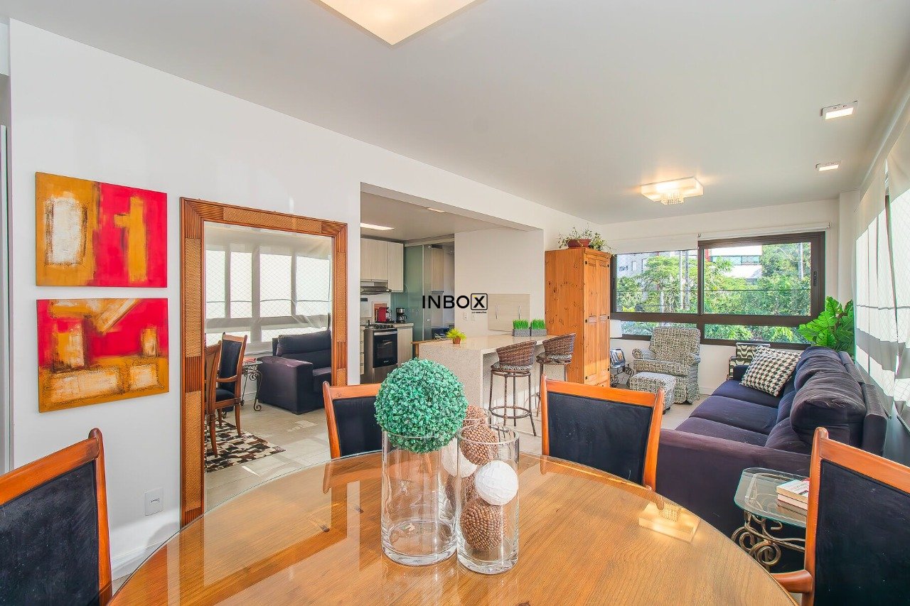 Belíssimo apartamento semimobiliado, com 110 m² privativos, projetado para oferecer conforto, funcionalidade e sofisticação. Conta com um living espaçoso e integrado, distribuído em três ambientes, com churrasqueira, cozinha americana e lavanderia separada.