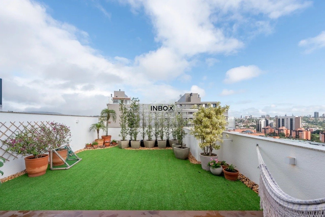 INBOX CIA IMOBILIÁRIA VENDE cobertura horizontal exclusiva, totalmente reformada e mobiliada, com 144m² de área privativa. O imóvel possui 1 suíte, amplo living com terraço e vista panorâmica para o Parque Germânia e Shopping Iguatemi, além de sala de jantar com sacada, cozinha montada, lavanderia separada e 2 vagas de garagem cobertas.