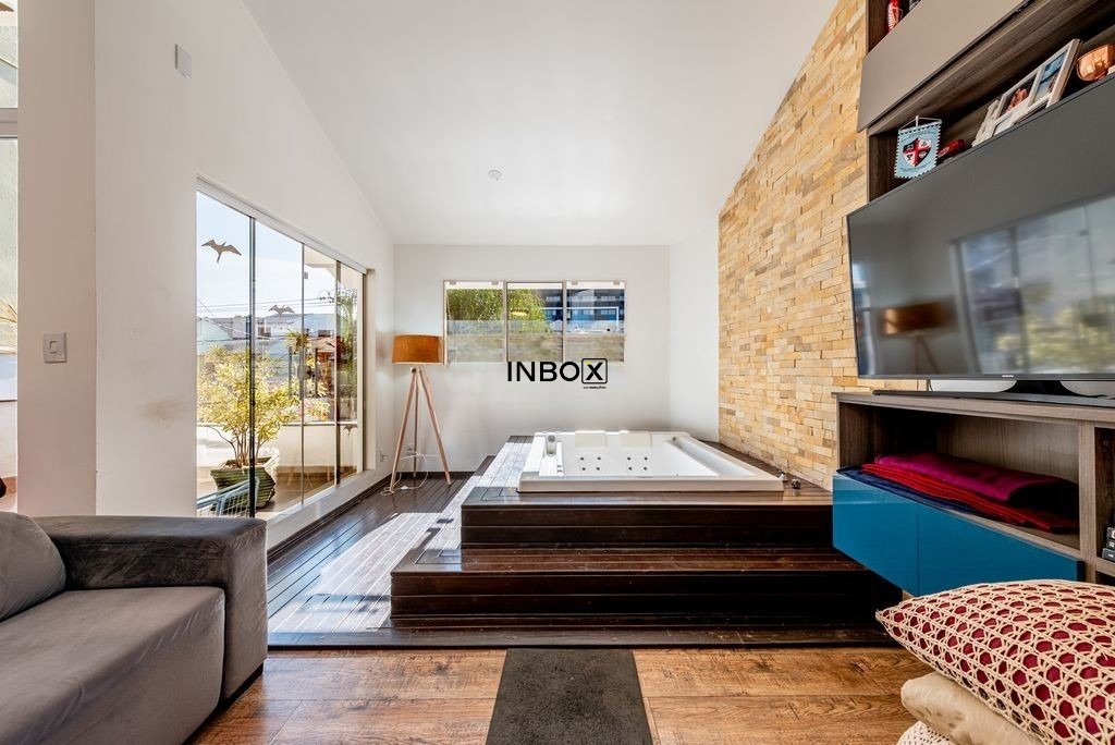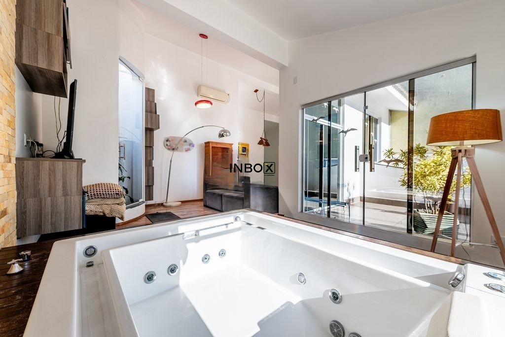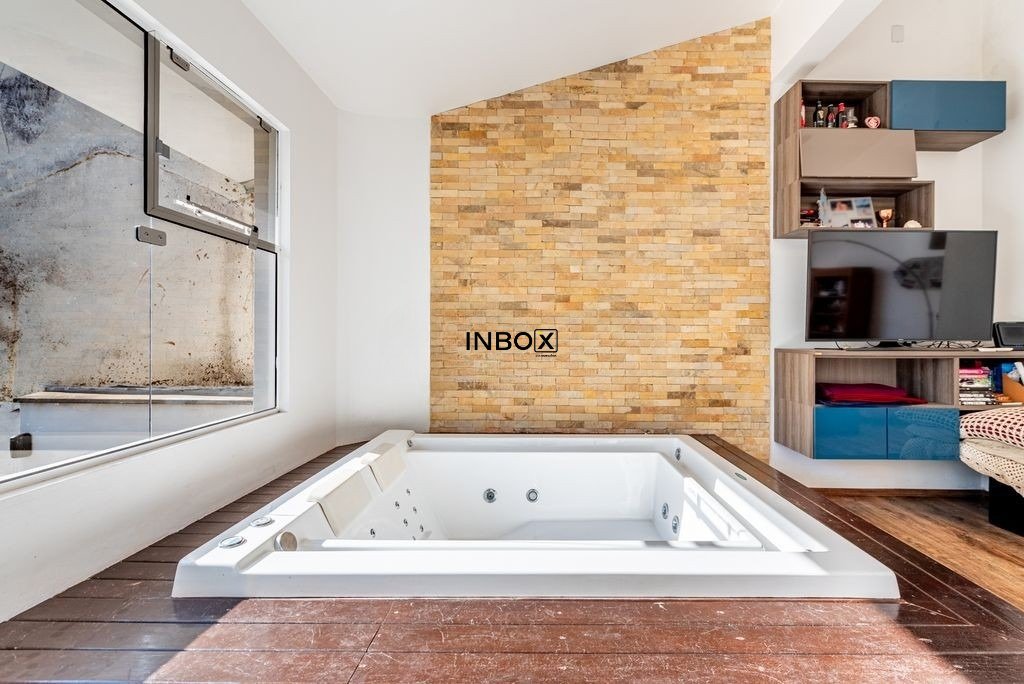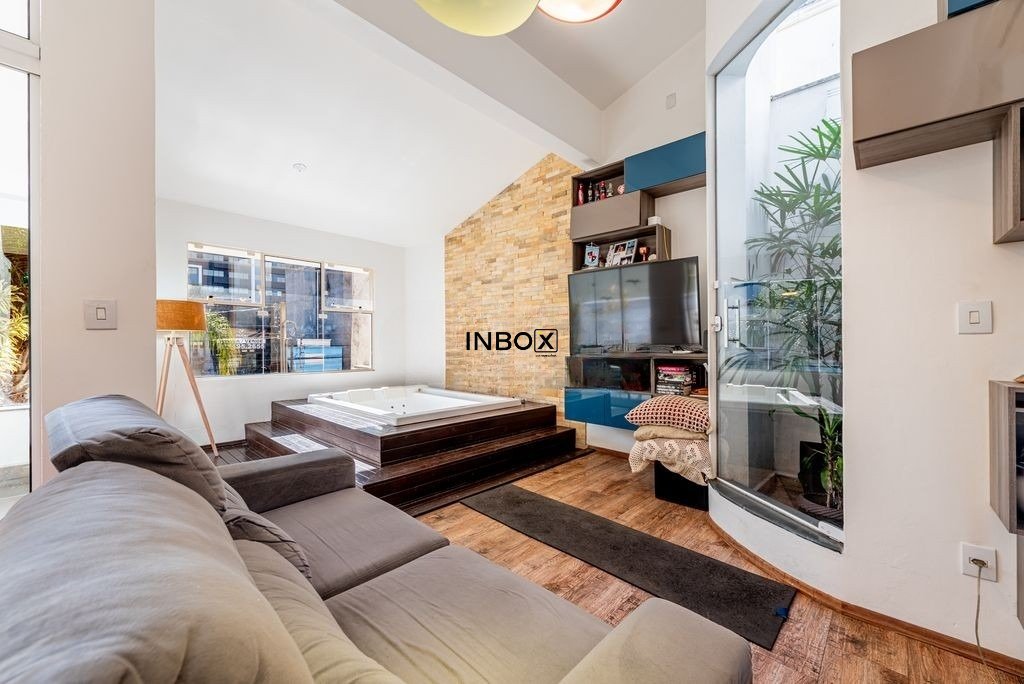 No pavimento superior, encontra-se uma residência impecável, cuidadosamente planejada para proporcionar conforto e privacidade. São dois dormitórios, sendo um deles uma suíte com closet, ambos com sacadas voltadas para um terraço silencioso nos fundos, banhado pelo sol da manhã. A área social é integrada e acolhedora, com cozinha moderna em conceito aberto, conectada a uma ampla sala dividida em três ambientes. Um dos destaques é a banheira de hidromassagem e a sacada com vista para a rua, que completam o clima de relaxamento e bem-estar.