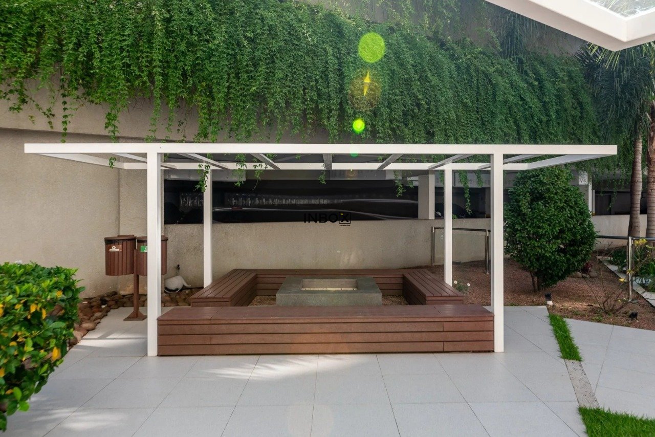 O imóvel está totalmente mobiliado e decorado por arquiteto, oferecendo um living amplo para dois ambientes com vista panorâmica e ótima iluminação natural. A cozinha é americana, equipada com churrasqueira e integrada à área de serviço separada. Todos os ambientes recebem o sol da manhã, garantindo conforto térmico e luminosidade ao longo do dia.