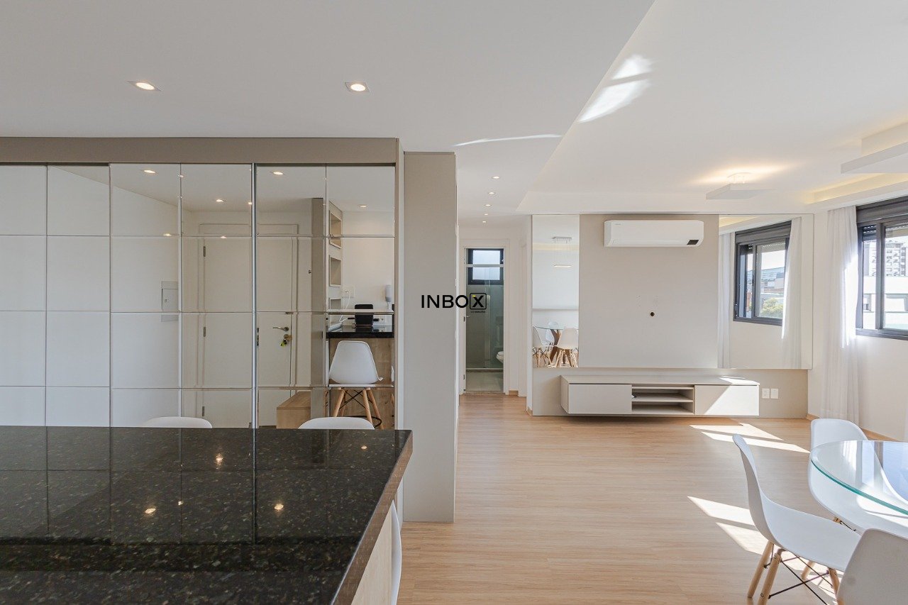 Originalmente com 3 dormitórios, foi transformado em 2 para ampliar o living, que oferece dois ambientes espaçosos e integrados. A unidade possui ainda uma suíte, banheiro social, cozinha funcional e área de serviço. Está pronto para morar e conta com uma vaga de garagem escriturada.