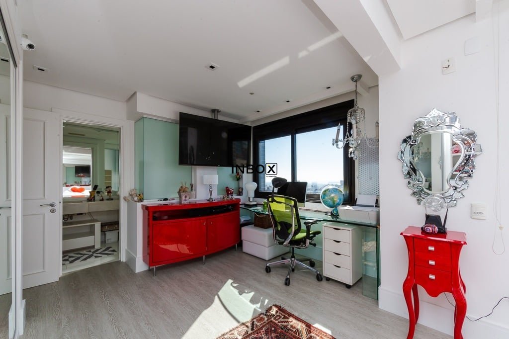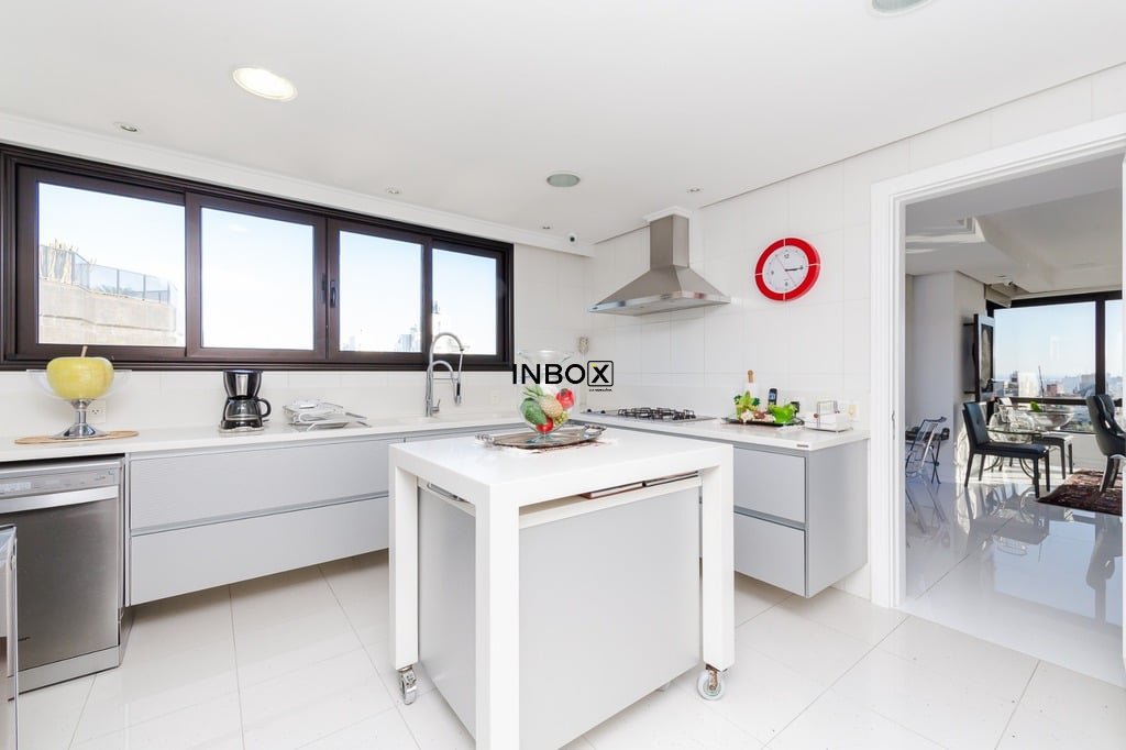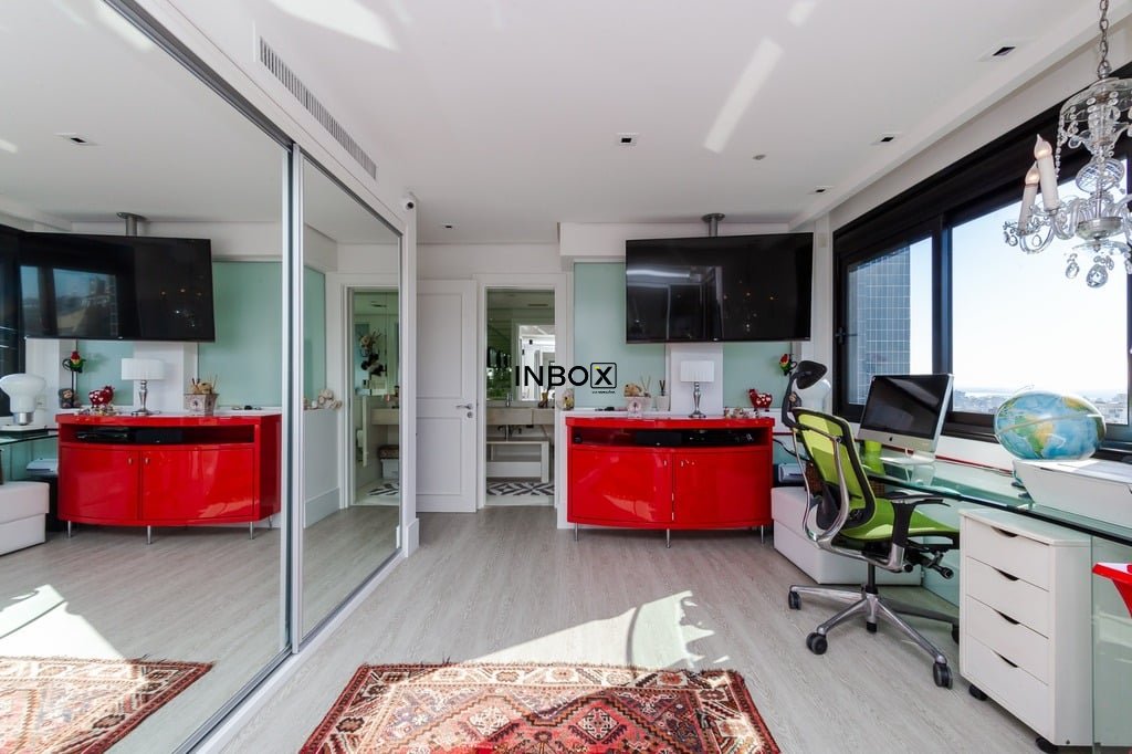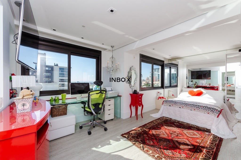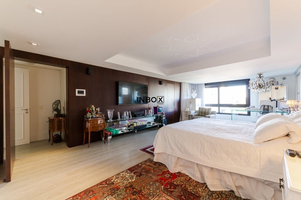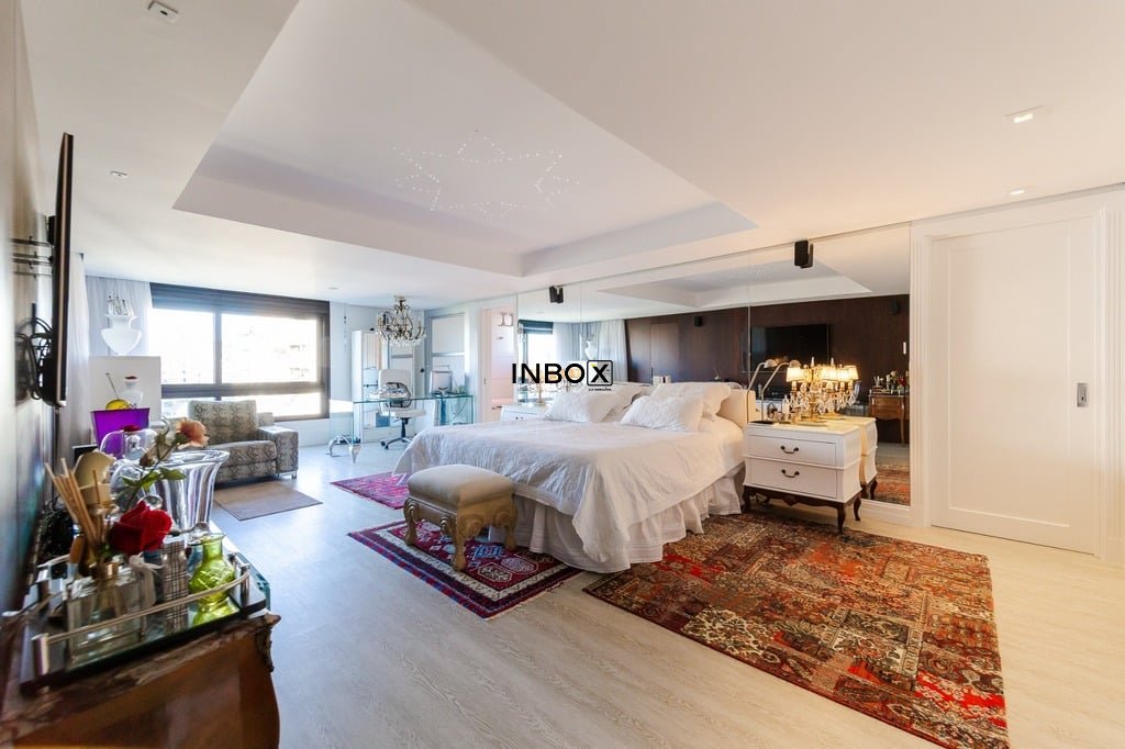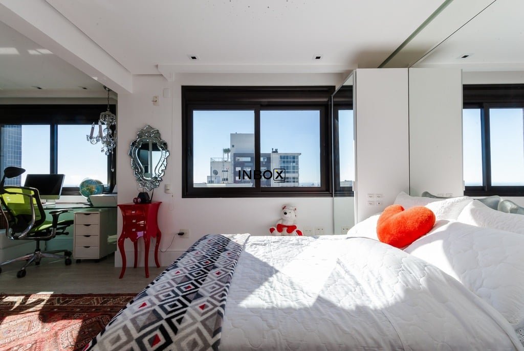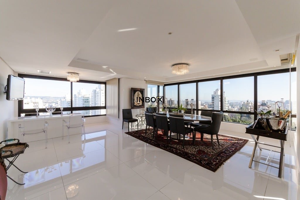 Apresentamos um sofisticado apartamento de 365m² de área privativa nos altos do bairro Bela Vista, com vistas definidas e permanentes. Esta residência de luxo dispõe de quatro suítes e quatro vagas de garagem individuais, proporcionando conforto e exclusividade. Localizado em um andar único com hall e elevador privativos, o apartamento oferece acesso direto a um amplo living voltado para o leste, com uma sacada que proporciona uma vista deslumbrante do pôr do sol sobre o Guaíba e uma linda vista da cidade. O espaço gourmet com churrasqueira, lareira e lavabo complementa este ambiente refinado. A copa-cozinha, equipada com móveis planejados Kitchens, despensa e área de serviço com entrada independente, inclui dormitório e banheiro de serviço. A área íntima é diferenciada, atualmente configurada com três suítes, com opção para uma quarta suíte ou gabinete/home office, além de espaço para uma ampla adega privativa. A suíte master destaca-se com banheiro ele/ela, com jacuzzi, sauna, hidromassagem vertical e pisos aquecidos. Os banheiros e chuveiros possuem cromoterapia, proporcionando um ambiente de bem-estar e relaxamento. O apartamento está equipado com um sistema de automação para cortinas, persianas e iluminação, além de ar condicionado inteligente em todos os ambientes. O empreendimento, Ville de Grasse, é atemporal com uma fachada imponente e revestida, porte-cochère e hall de entrada com pé-direito triplo e acabamentos em mármore. A infraestrutura de luxo inclui espaço gourmet com churrasqueira, salão de festas com cozinha gourmet, sala de cinema equipada, adega climatizada com espaço individual para cada morador, duas academias, sauna, piscina externa aquecida, espaço para jogos, lounge, sala de motorista, estacionamento para visitantes e gerador para áreas comuns e unidades autônomas. A segurança é reforçada com guarita blindada, entradas de veículos individualizadas para moradores e visitantes com sistema de clausura, e portaria 24 horas. Situado no centro do bairro Bela Vista, o Ville de Grasse oferece muita luminosidade, privacidade e conforto aos seus privilegiados moradores. Agende sua visita e descubra a experiência de viver neste condomínio exclusivo. Preço e disponibilidade do imóvel sujeitos a alteração sem aviso prévio.