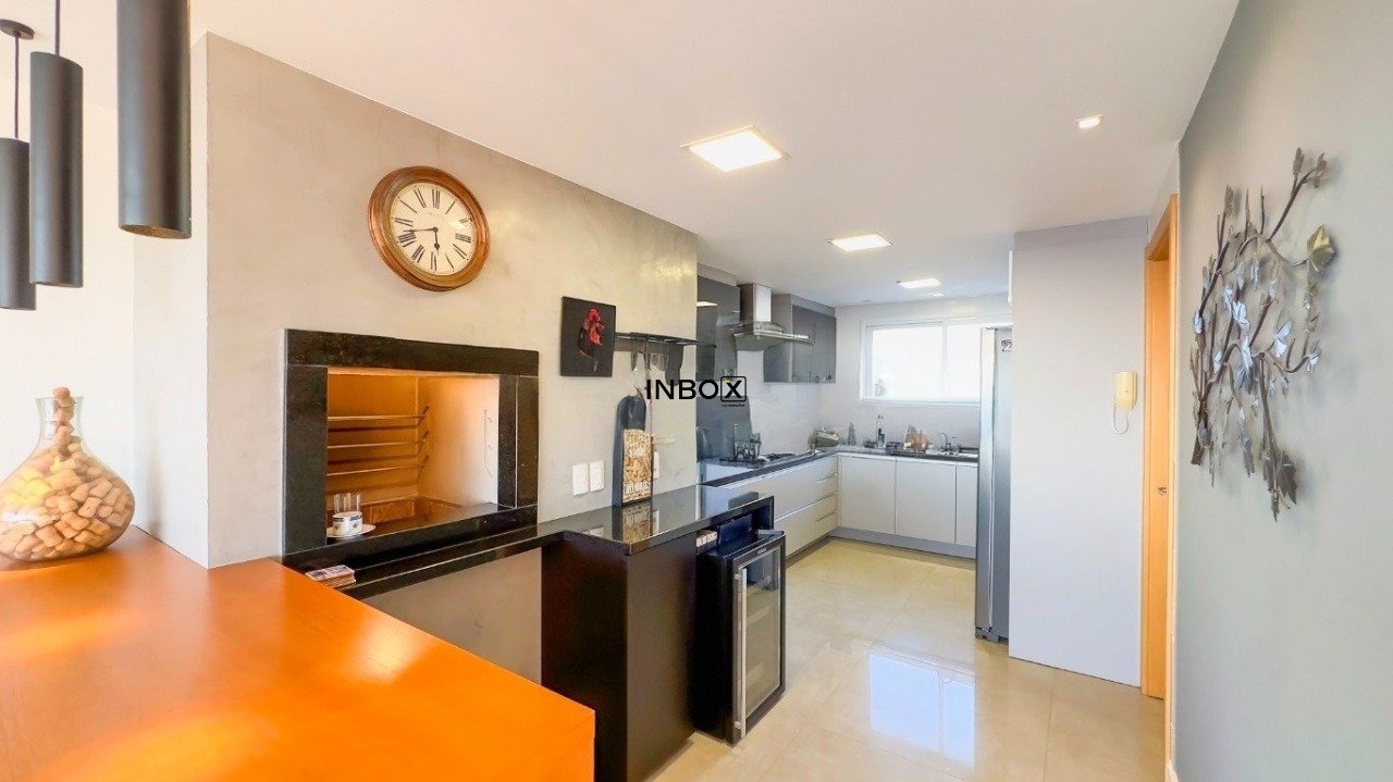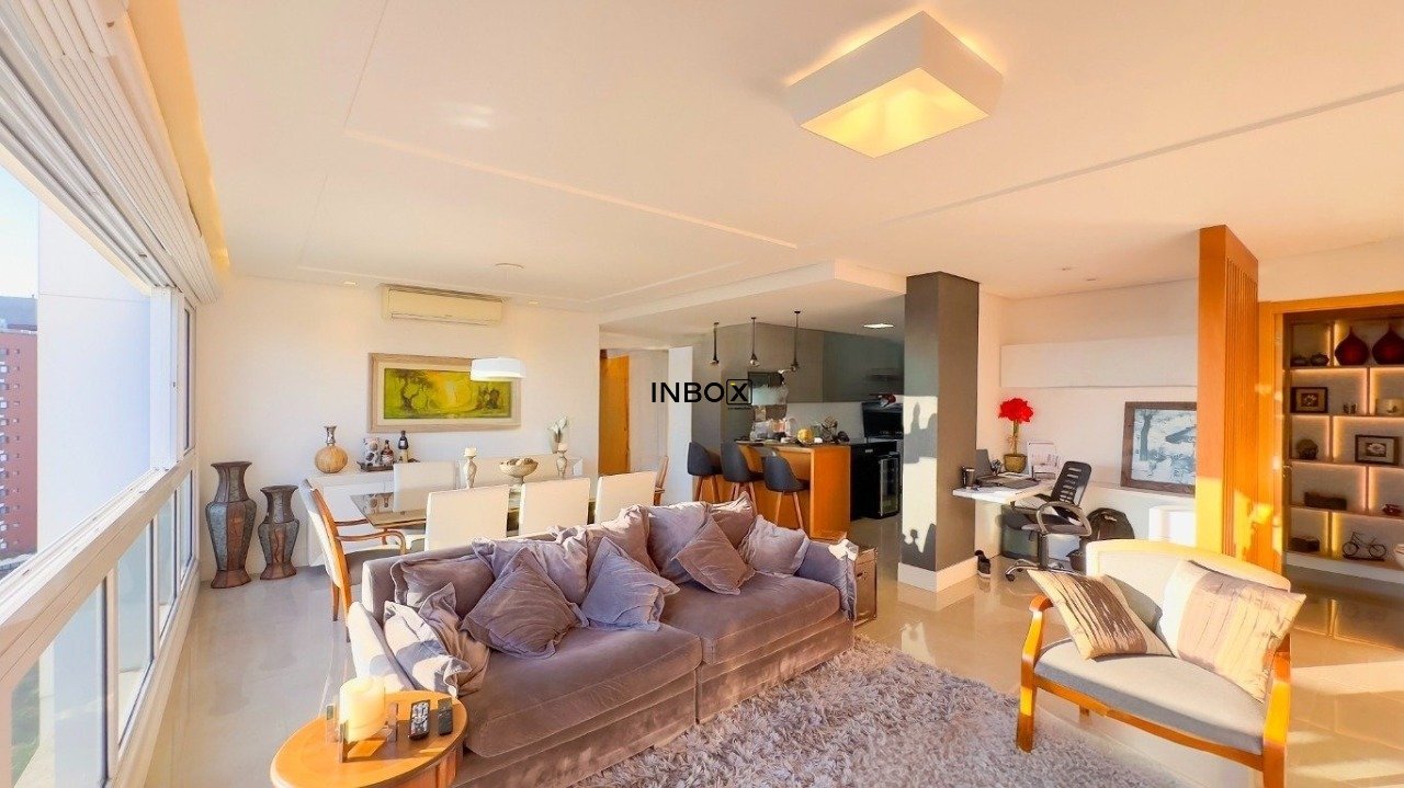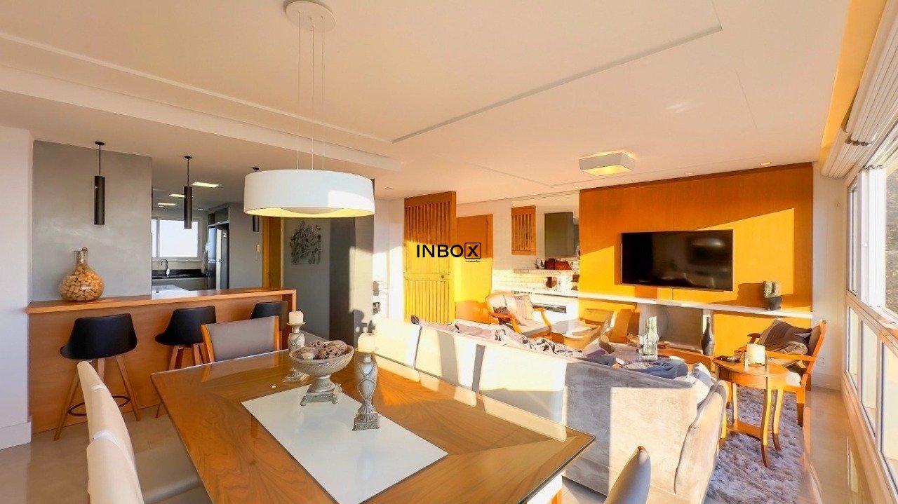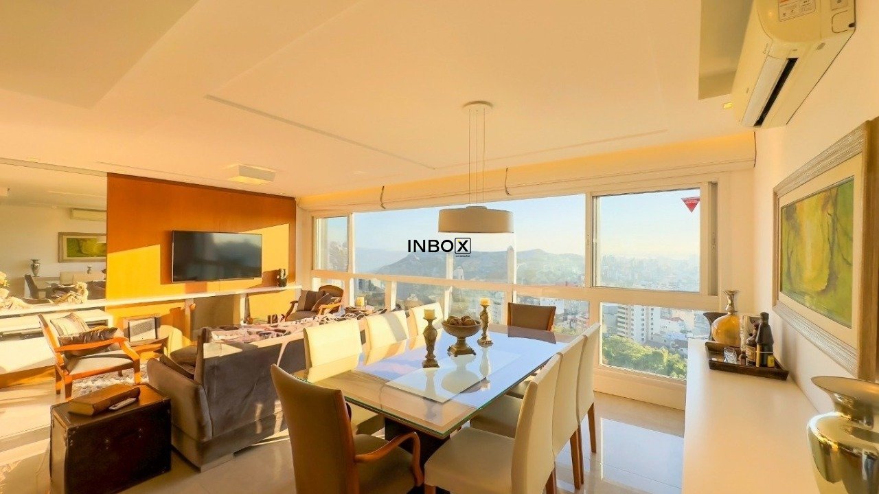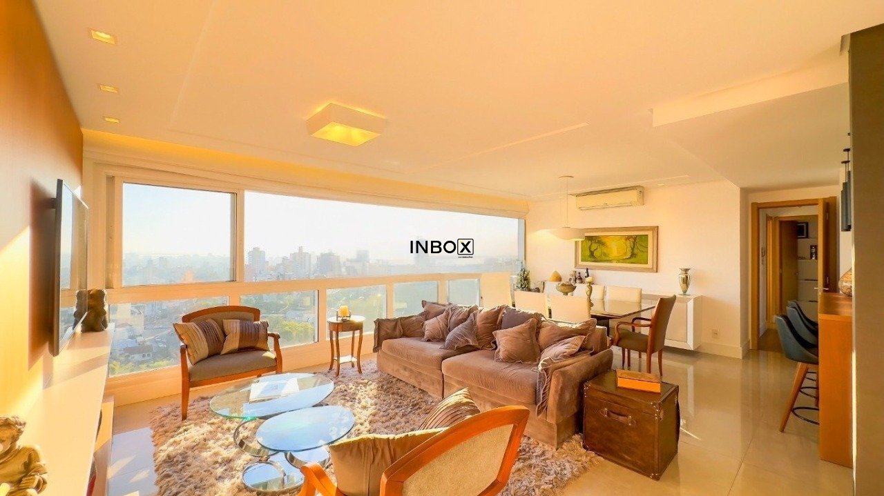 INBOX VENDE apartamento no bairro Petrópolis, com área privativa de 126 m² privativos, 3 suítes, em andar alto, vista definitiva, living com com 2 ambientes bem definidos, esquadrias amplas para vislumbrar a vista para o Guaíba, lareira, churrasqueira, lavabo, área de serviço separada ,cozinha ampla e equipada e 2 vagas de garagem.