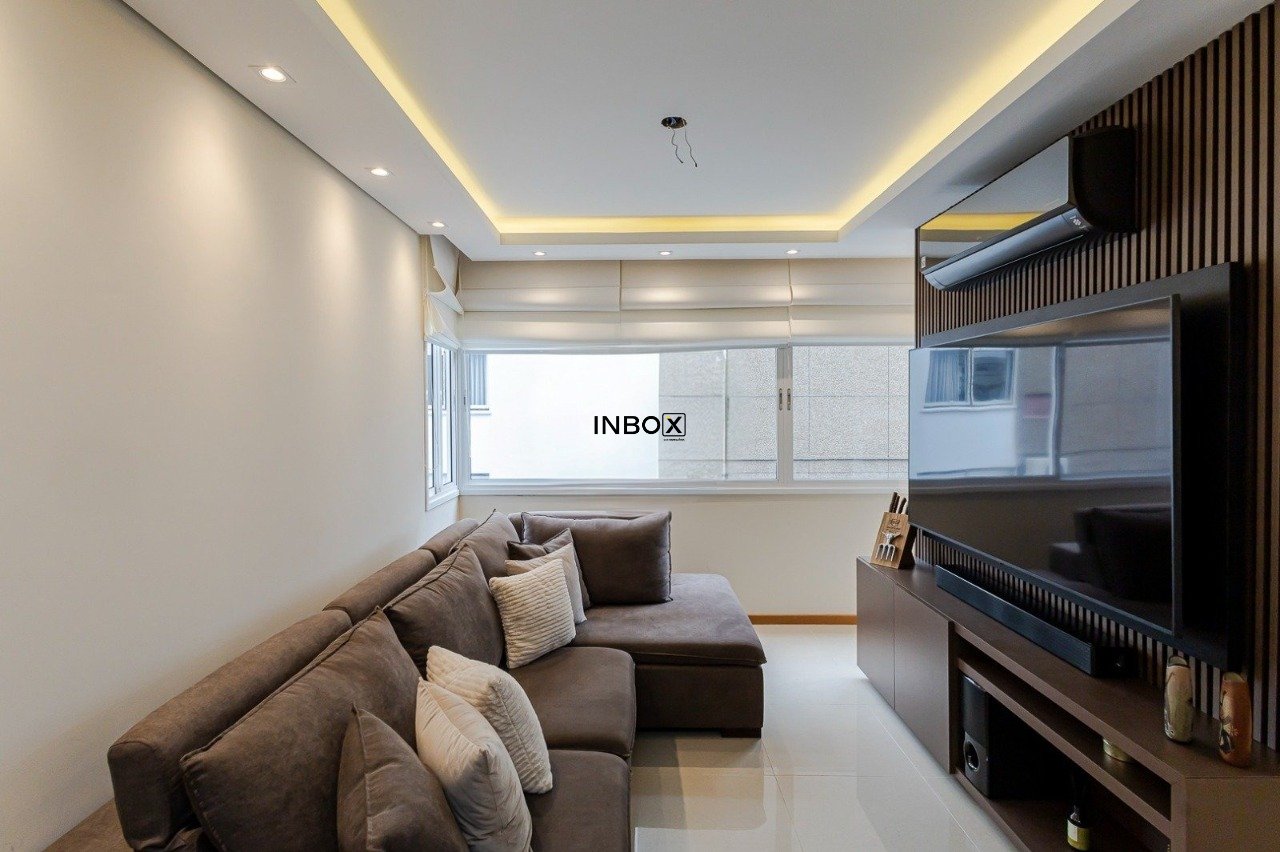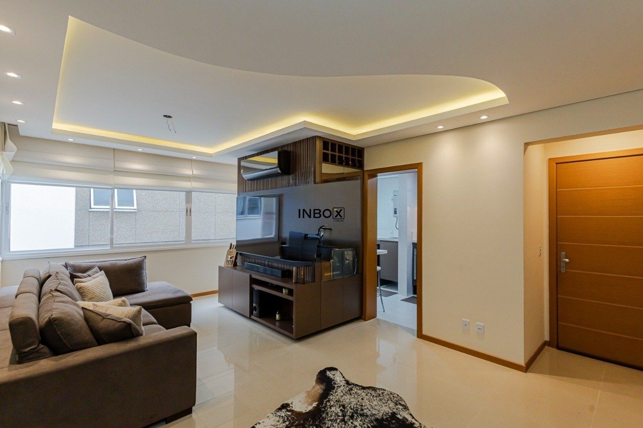 Apartamento com 2 dormitórios, sendo uma suíte, 72 m² privativos, living para dois ambientes, banheiro social, cozinha planejada com acesso à churrasqueira, semimobiliado.