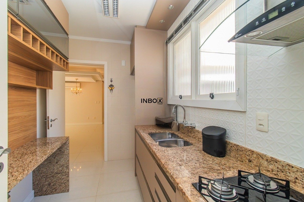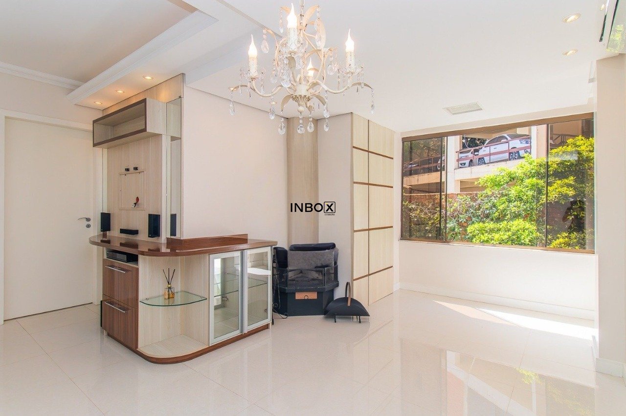 INBOX CIA IMOBILIÁRIA VENDE apartamento semimobiliado com 81m² de área privativa; 2 dormitórios, sendo 1 suíte; living 2 ambientes, lareira; churrasqueira; cozinha planejada e área de serviço separada..1 vaga de garagem coberta.
