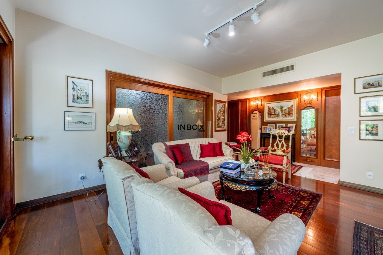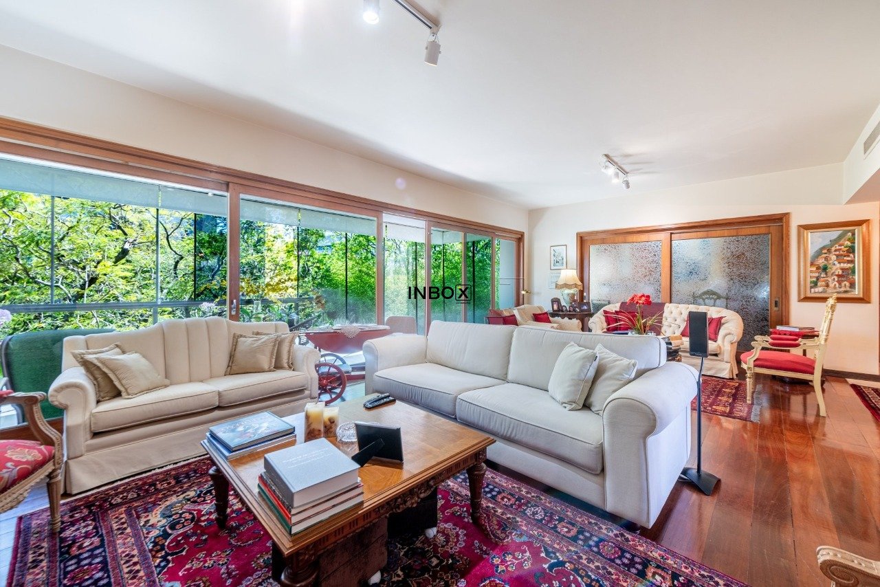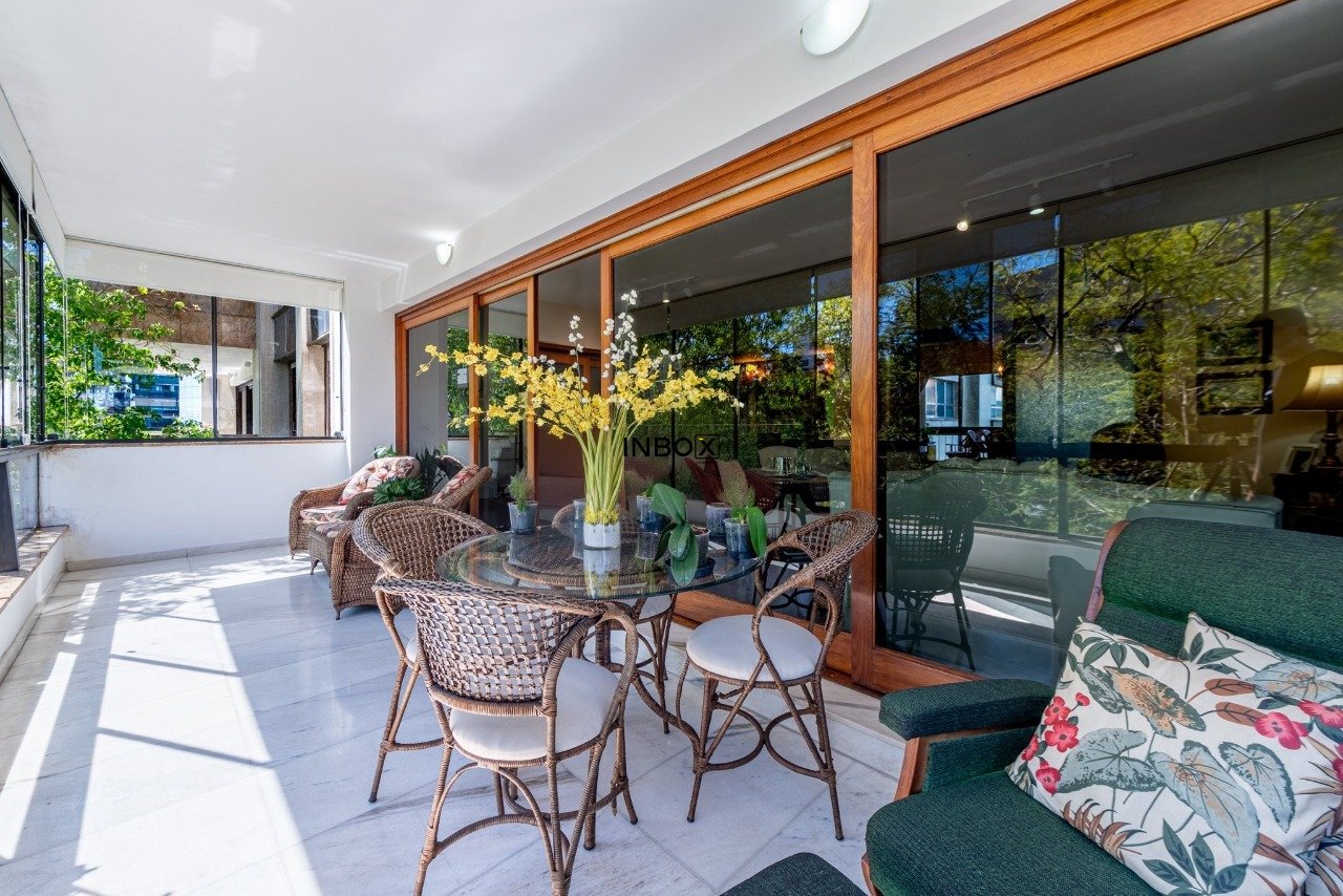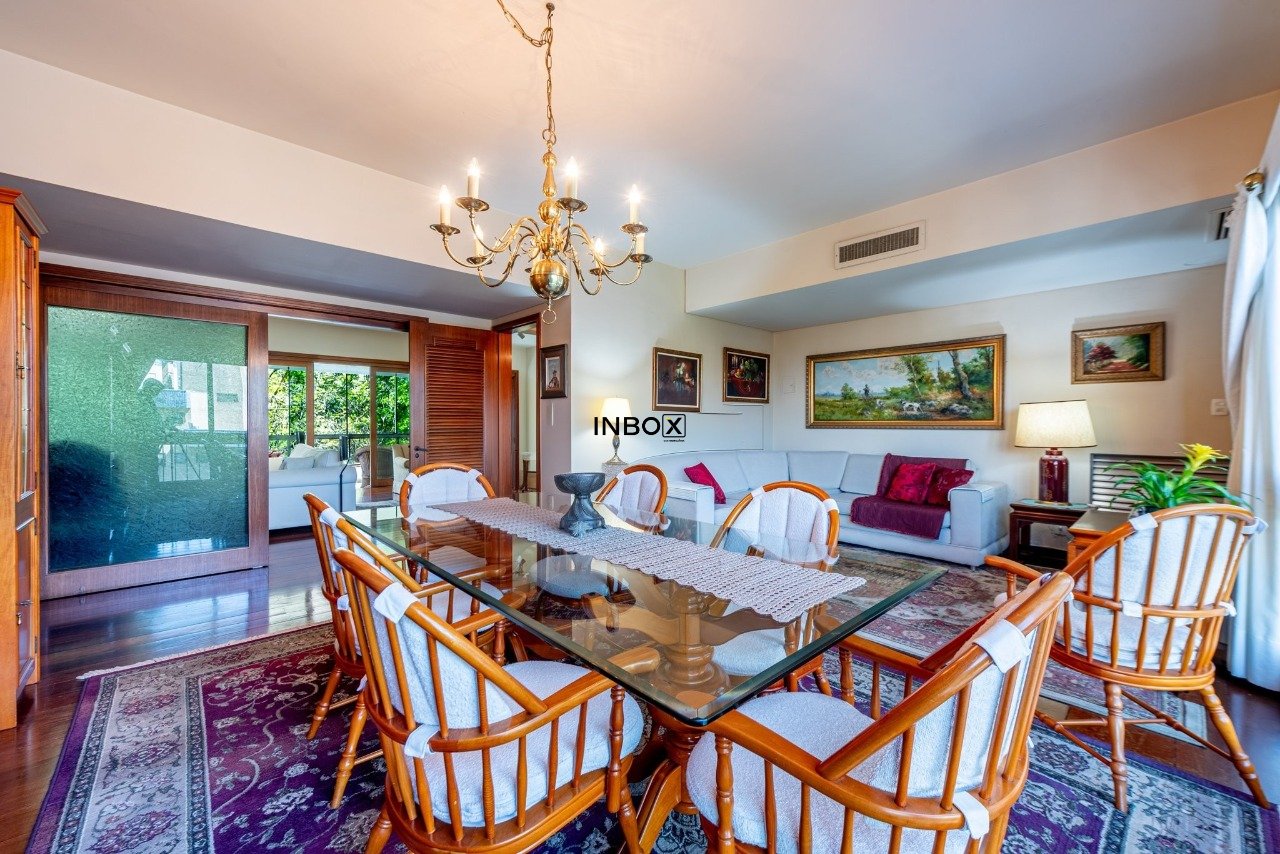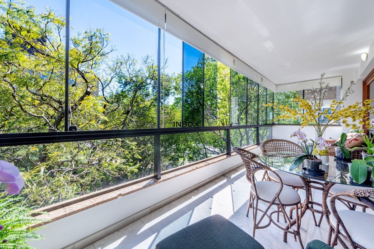 Apto conta com espaços amplos e uma agradável varanda acompanhando toda a área social. Vista para a copa das arvores e a diferenciada posição solar norte proporcionam sol e claridade em todo o apto. Seus generosos 250m de área privativa foram pensados para atender as famílias com conforto, espaço e privacidade.