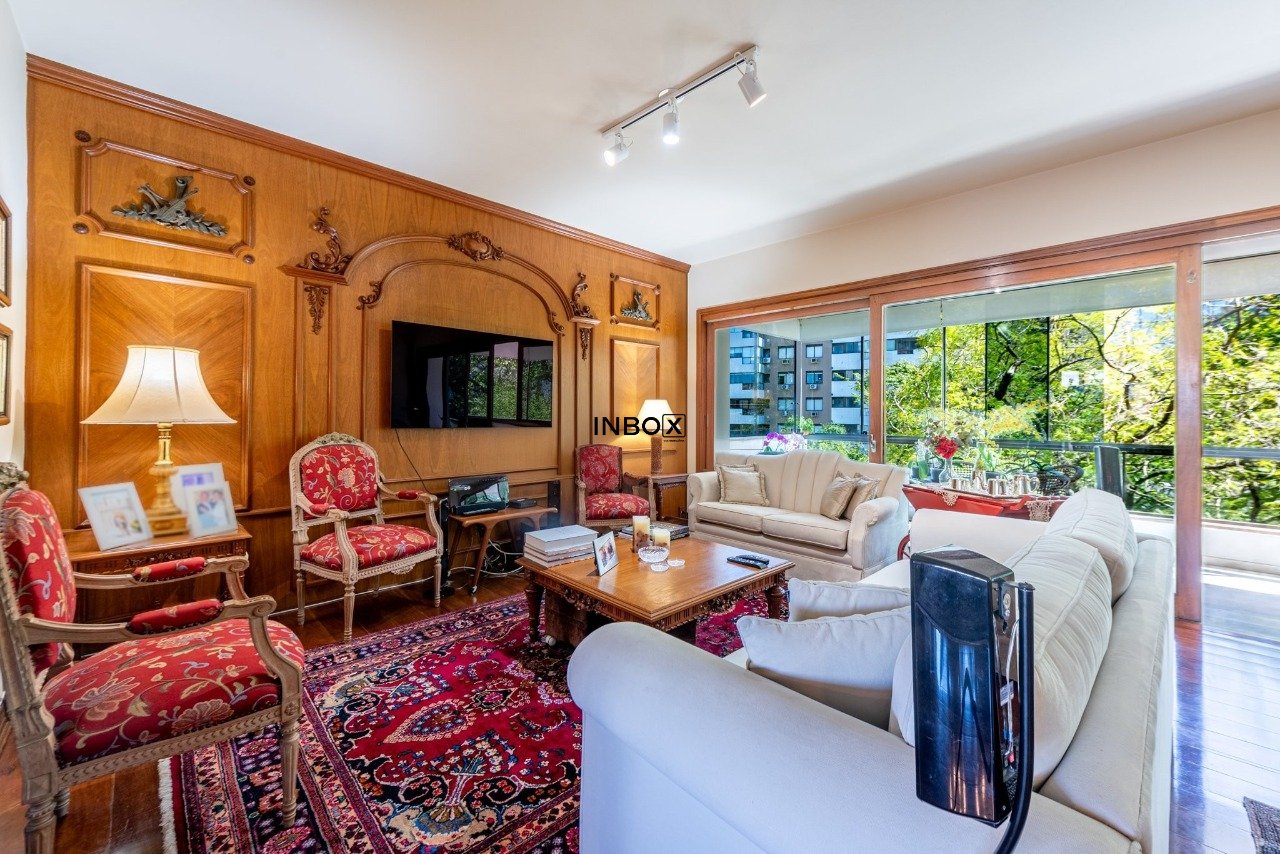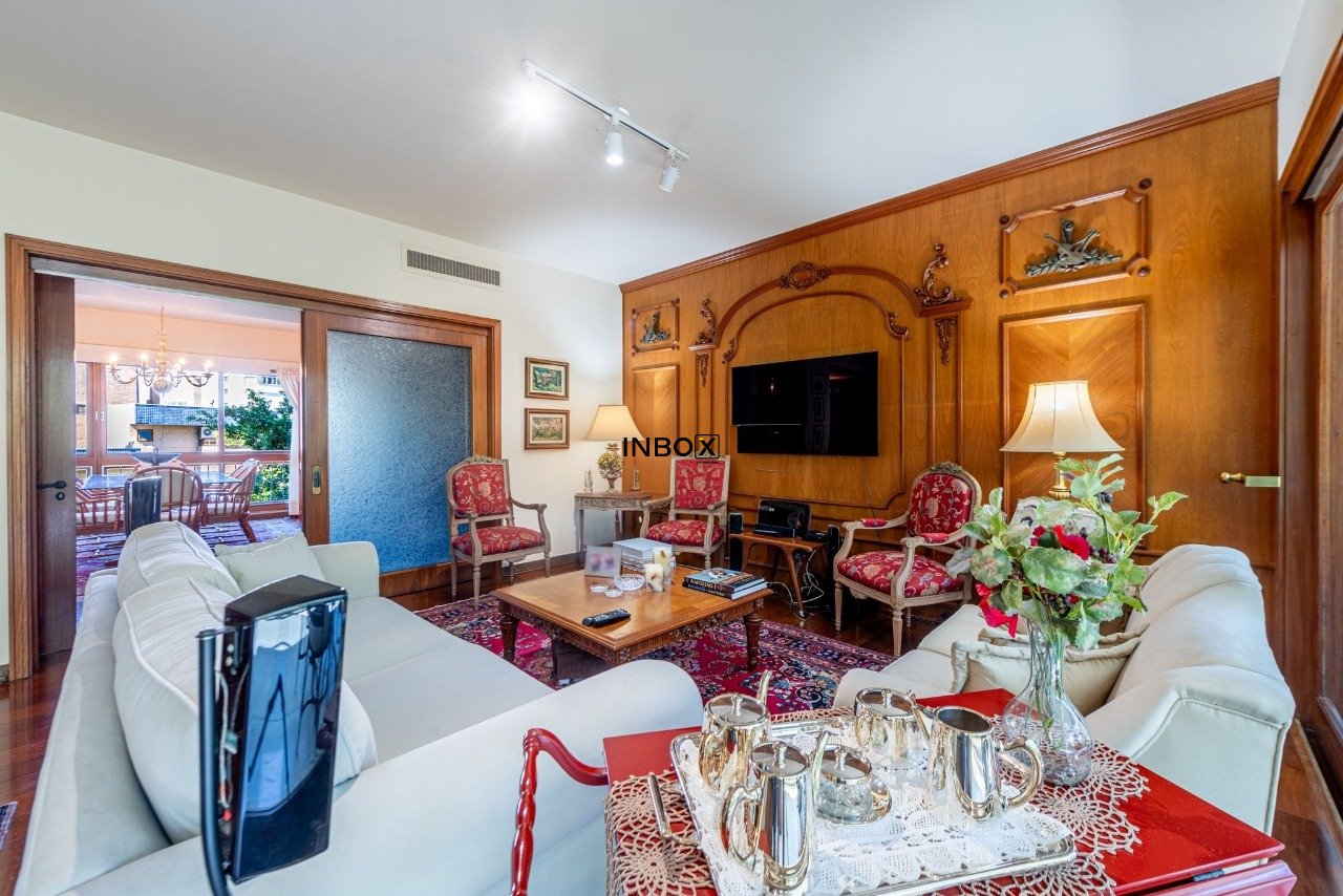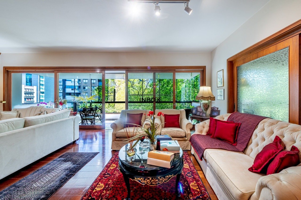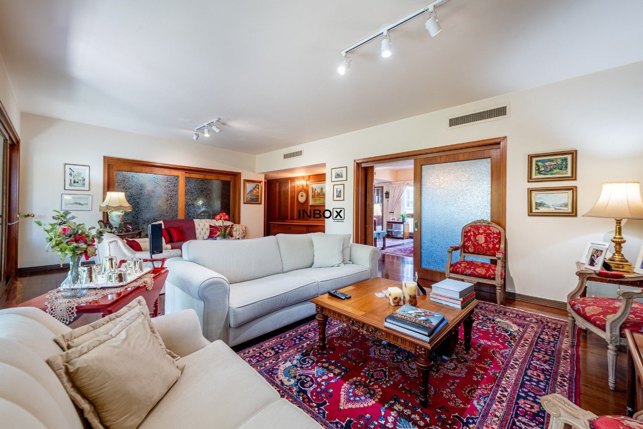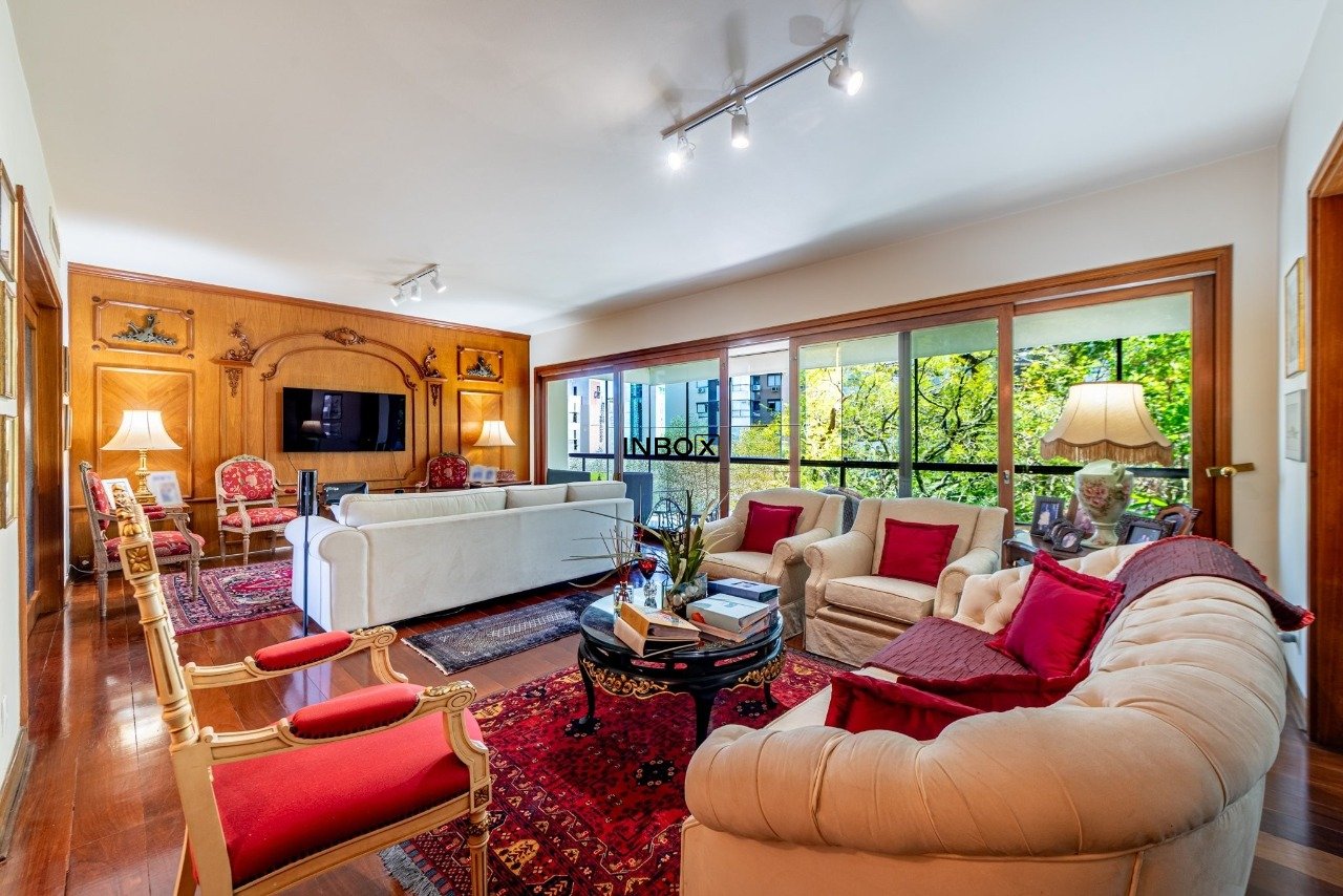Apto conta com espaços amplos e uma agradável varanda acompanhando toda a área social. Vista para a copa das arvores e a diferenciada posição solar norte proporcionam sol e claridade em todo o apto. Seus generosos 250m de área privativa foram pensados para atender as famílias com conforto, espaço e privacidade.
