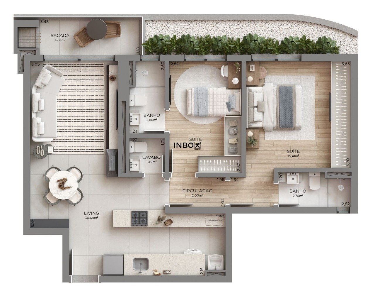 Dois quartos, sendo 2 suítes, lavabo social, cozinha e área de serviços independentes, sala de estar e uma linda sacada com churrasqueira completam a beleza desse apartamento.