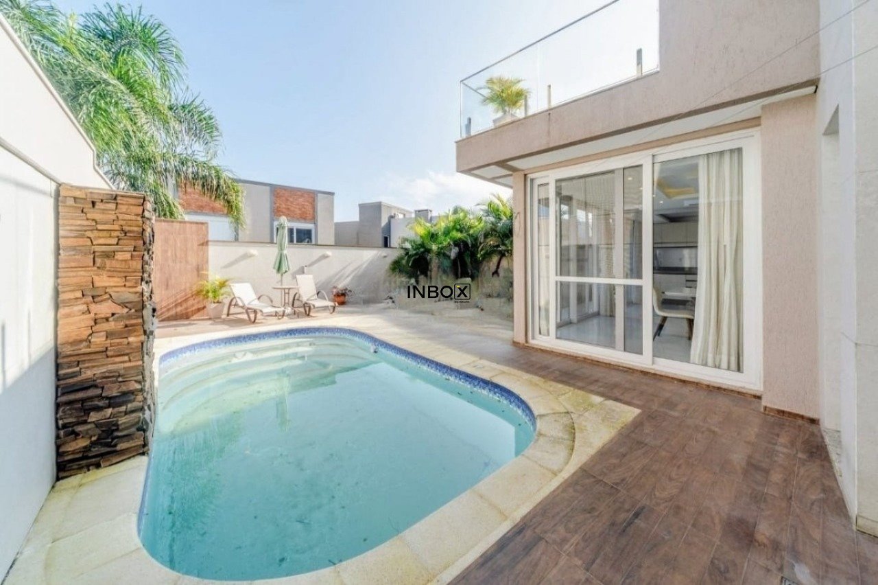 A área externa encanta com jardim bem cuidado, piscina privativa e espaço para churrasco, ideais para desfrutar o melhor do clima de Porto Alegre.