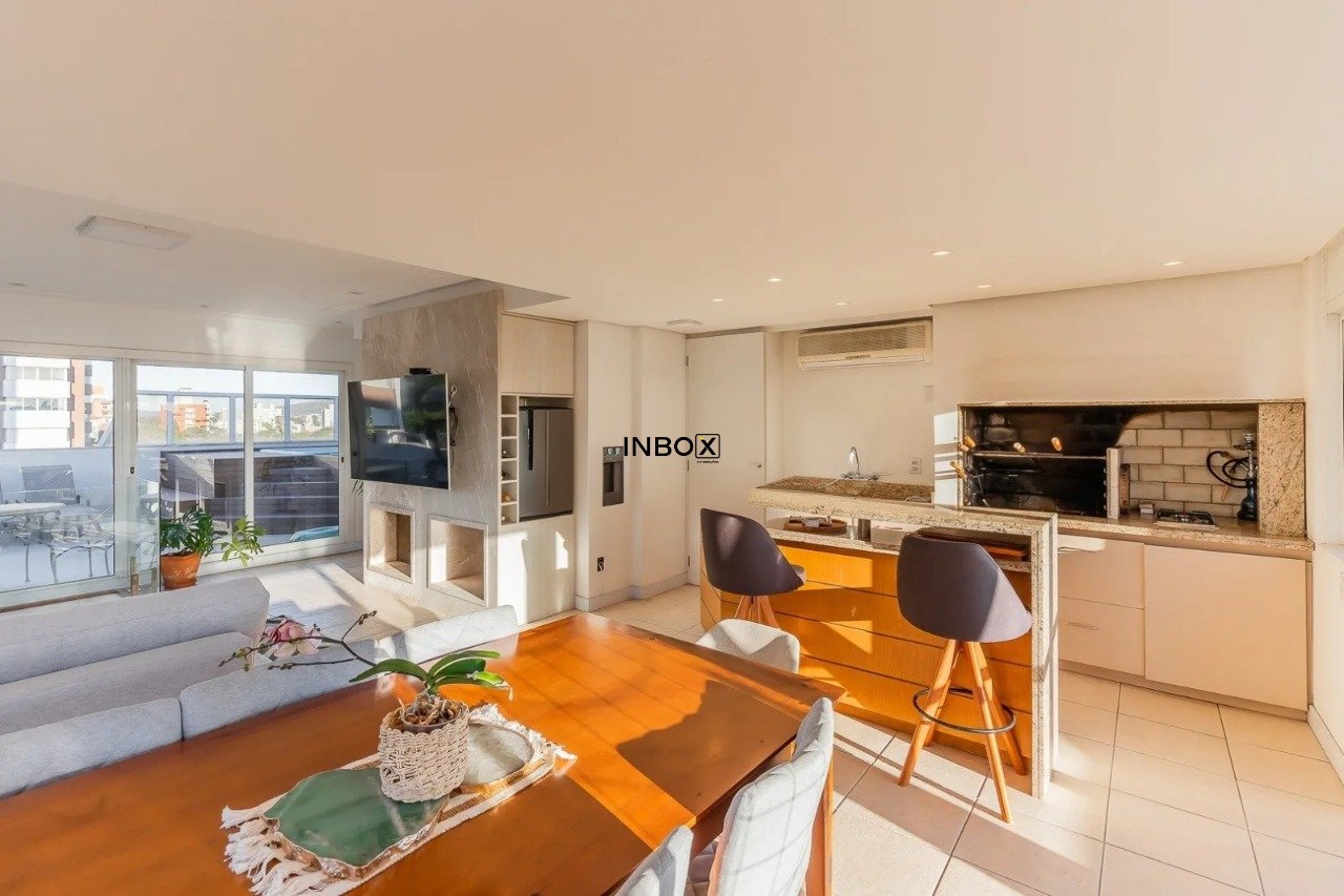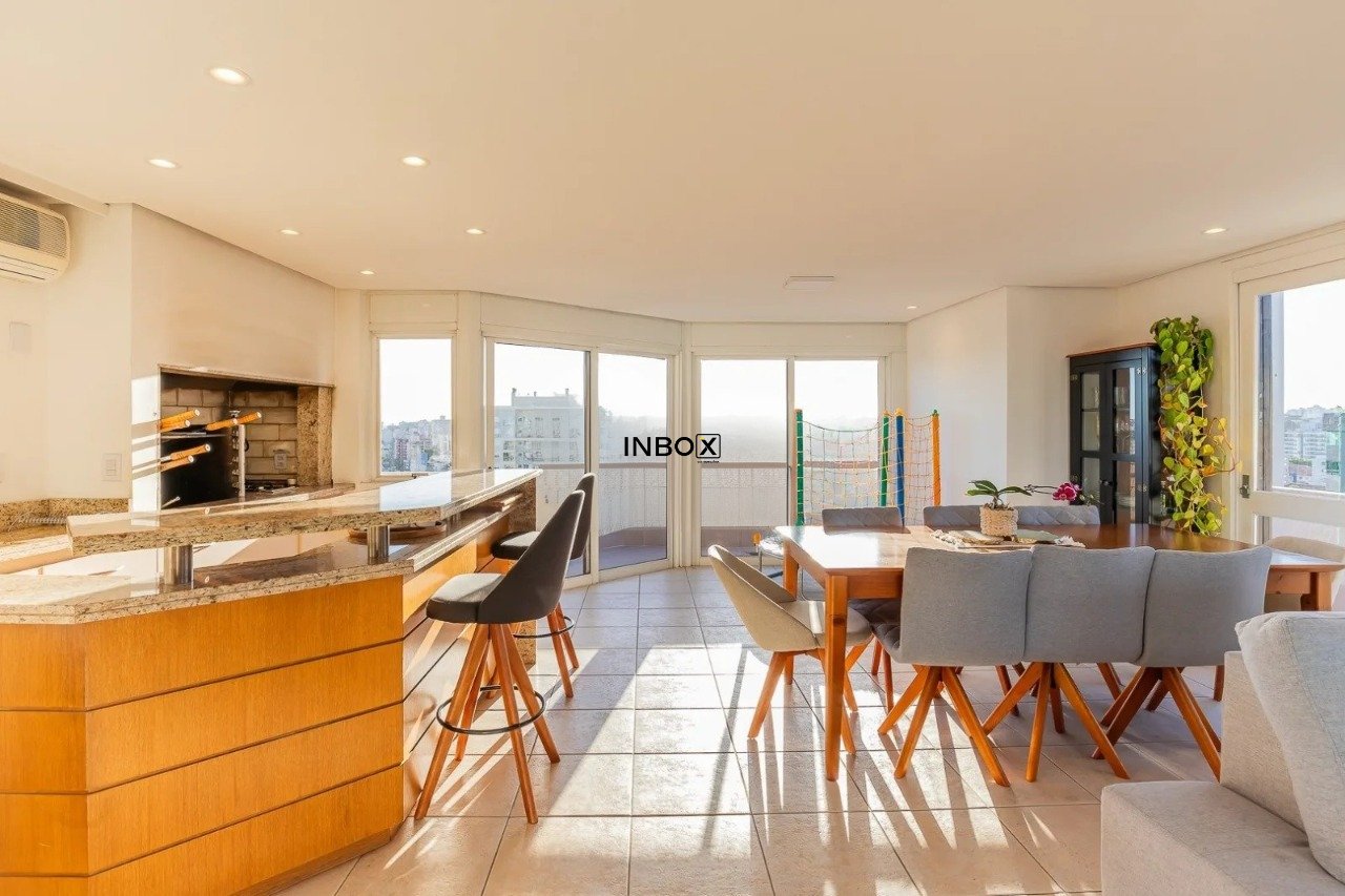 INBOX CIA IMOBILIÁRIA VENDE cobertura semimobiliada com 304m² privativos, 4 dormitórios (sendo 1 suíte) e 2 vagas de garagem. O imóvel oferece ambientes amplos, reformados e com excelente orientação solar ? leste, norte e oeste.