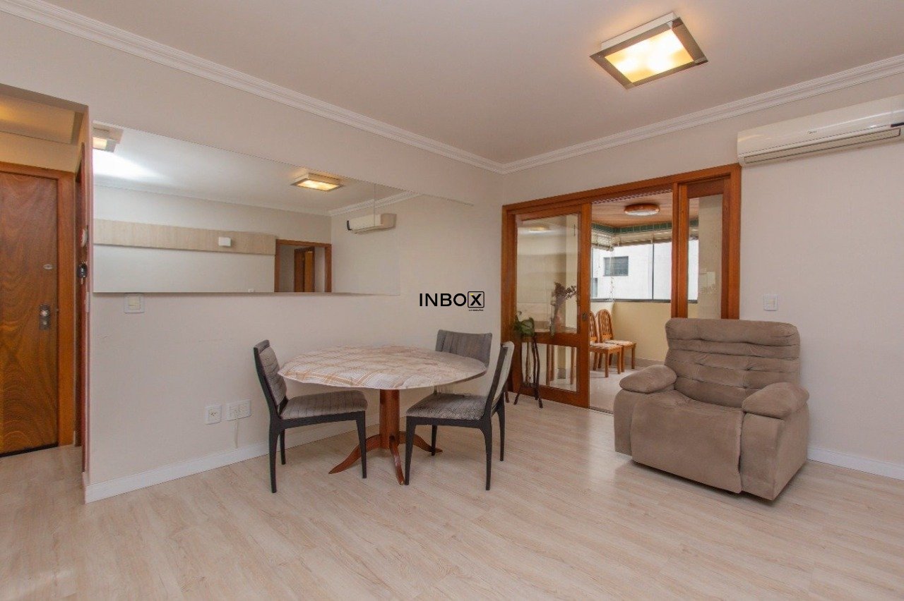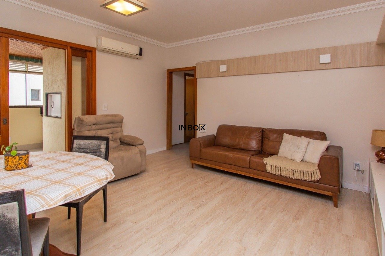 INBOX CIA IMOBILIÁRIA VENDE Apartamento com 97 m², 3 dormitórios, 1 suíte, banheiro social, living com sacada integrada, cozinha planejada e com 2 vagas individuais e cobertas de garagem. O imóvel tem posição frente e orientação solar norte. Os ambientes são amplos, bem distribuídos e ventilados.