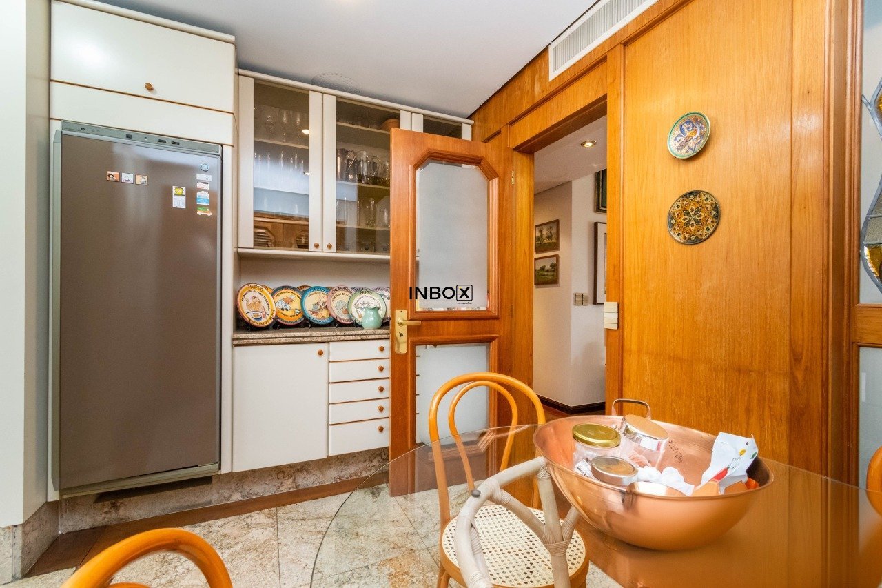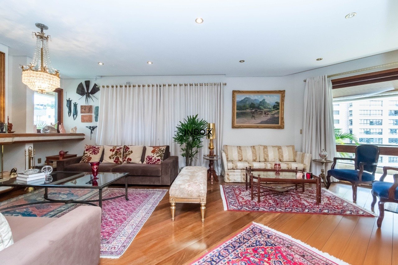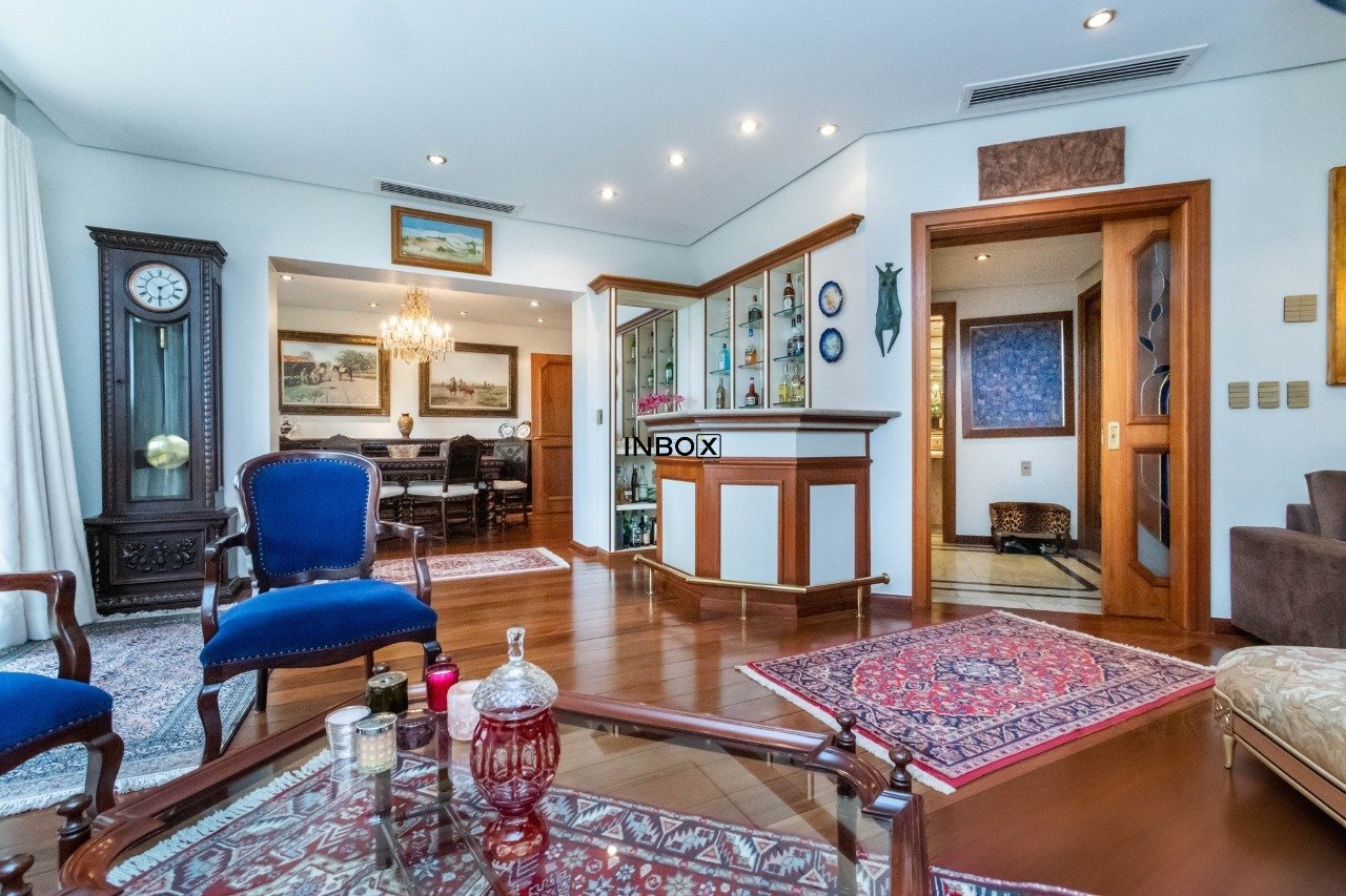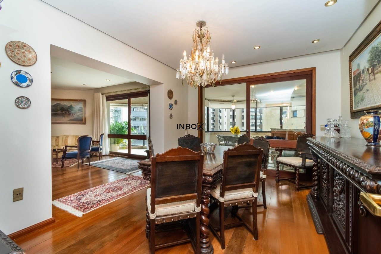 INBOX CIA IMOBILIÁRIA VENDE Apartamento com 305 m², parcialmente mobiliado, 3 dormitórios, 3 suítes, living para 3 ambientes em tabuão, lareira, lavabo, gabinete, sala de jantar, espaço gourmet com churrasqueira e sacada aberta, copa cozinha, dependência e área de serviço. Somente 1 imóvel por andar. Ficam os móveis sob medida e eletrodomésticos. Possui 4 vagas de garagens escrituradas.