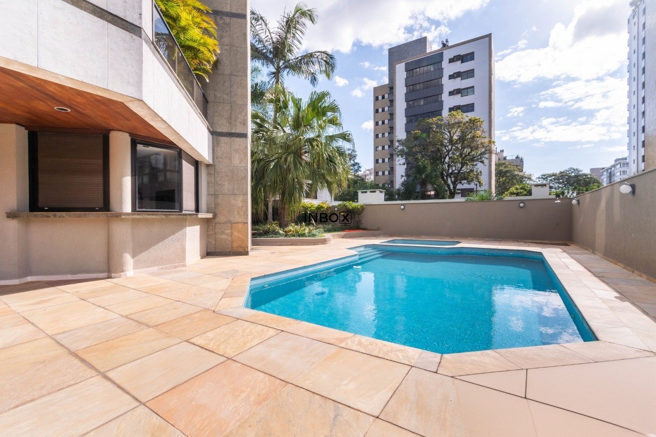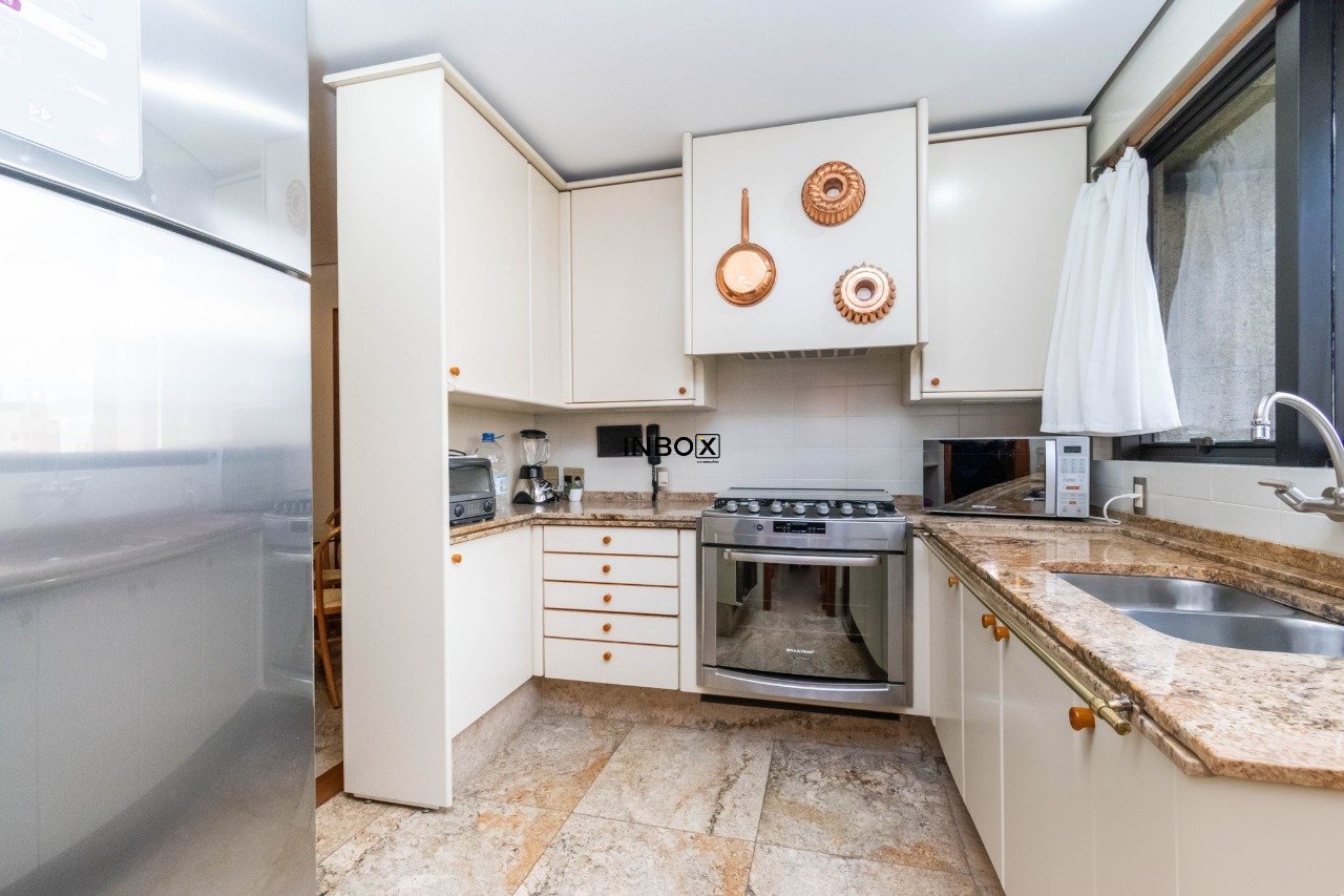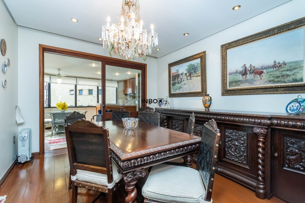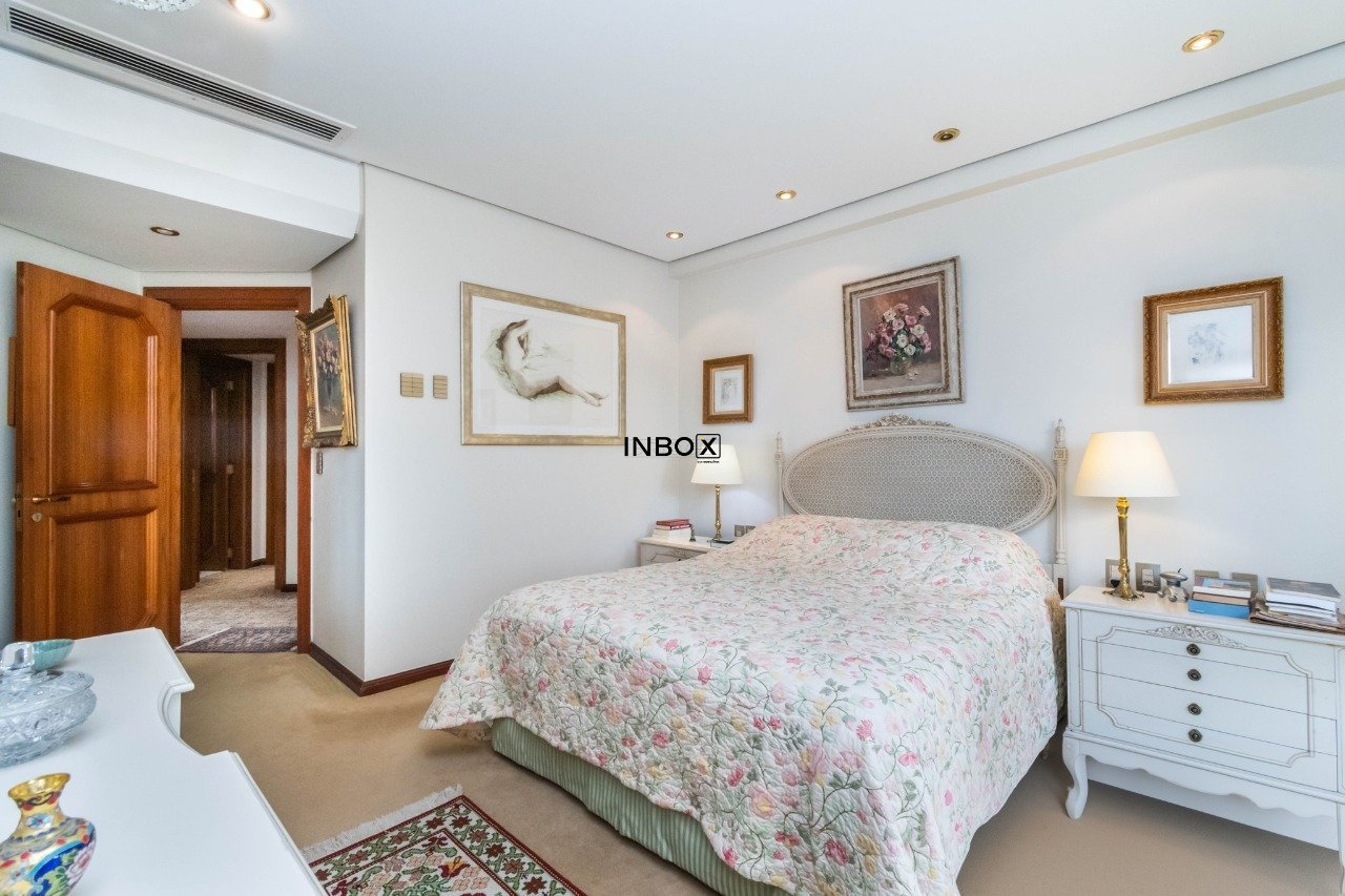 INBOX CIA IMOBILIÁRIA VENDE Apartamento com 305 m², parcialmente mobiliado, 3 dormitórios, 3 suítes, living para 3 ambientes em tabuão, lareira, lavabo, gabinete, sala de jantar, espaço gourmet com churrasqueira e sacada aberta, copa cozinha, dependência e área de serviço. Somente 1 imóvel por andar. Ficam os móveis sob medida e eletrodomésticos. Possui 4 vagas de garagens escrituradas.