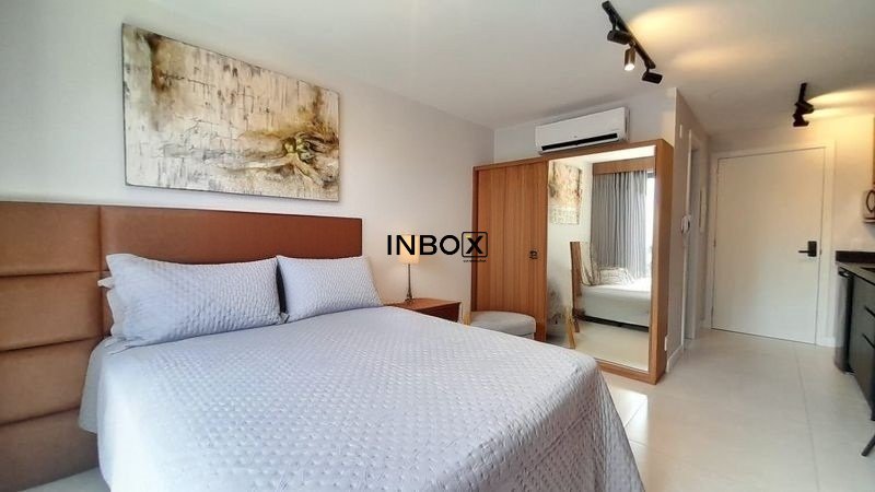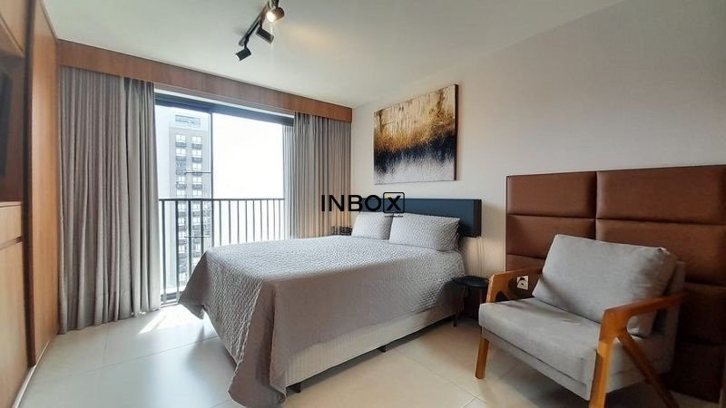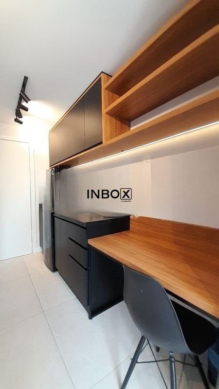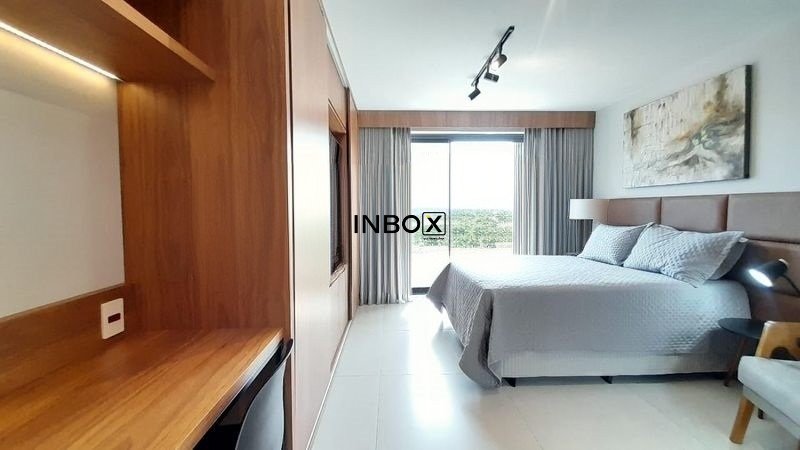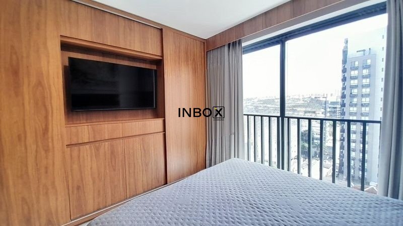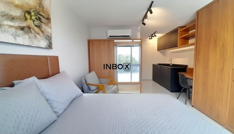 INBOX CIA IMOBILIÁRIA ALUGA Apartamento mobiliado no GO 24, de 25 m² privativos, com piso laminado, amplas aberturas, excelente iluminação natural, mobília sob medida e layout inteligente, entregando conforto e funcionalidade.