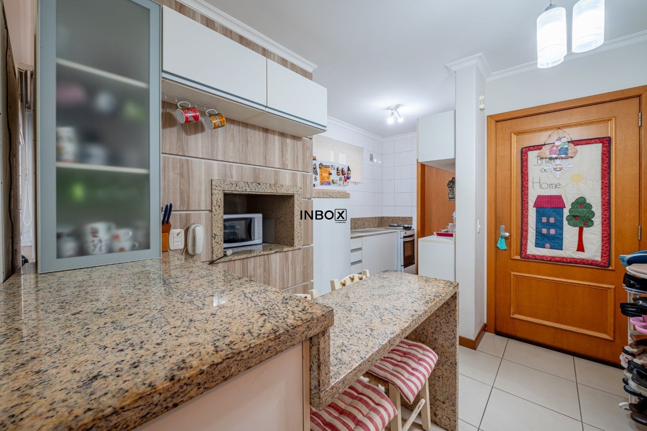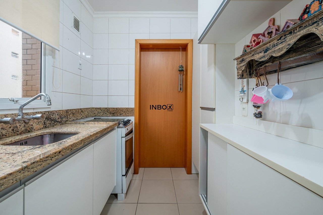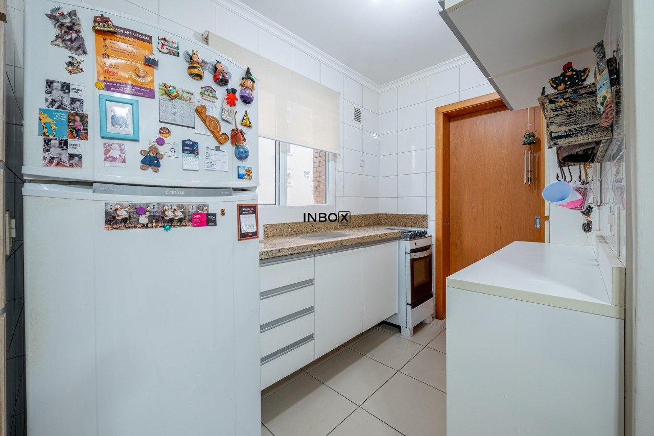 INBOX CIA IMOBILIÁRIA VENDE Apartamento com 81 m², semimobiliado, 2 dormitórios, 1 suíte, banho social, cozinha americana com churrasqueira, área de serviço independente e 2 vagas de garagem lado a lado cobertas.