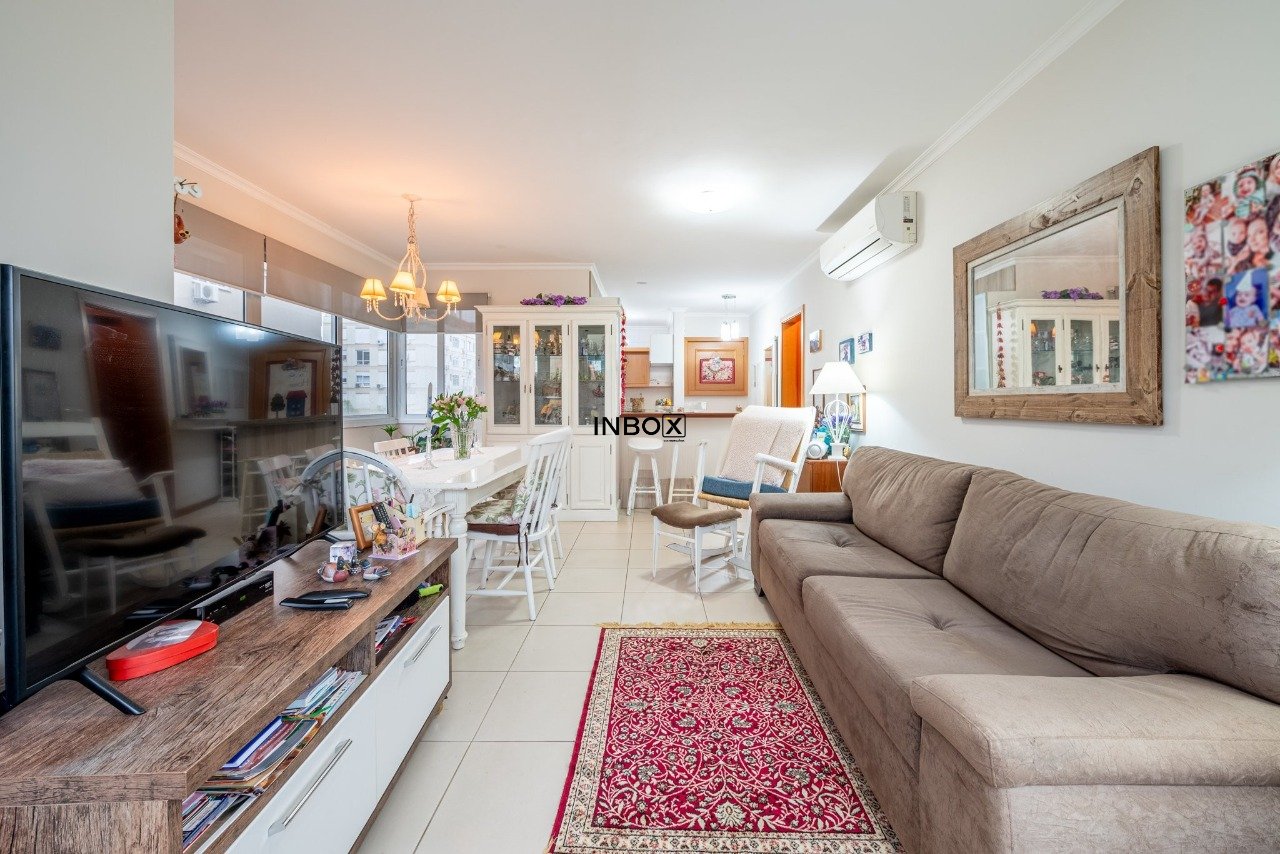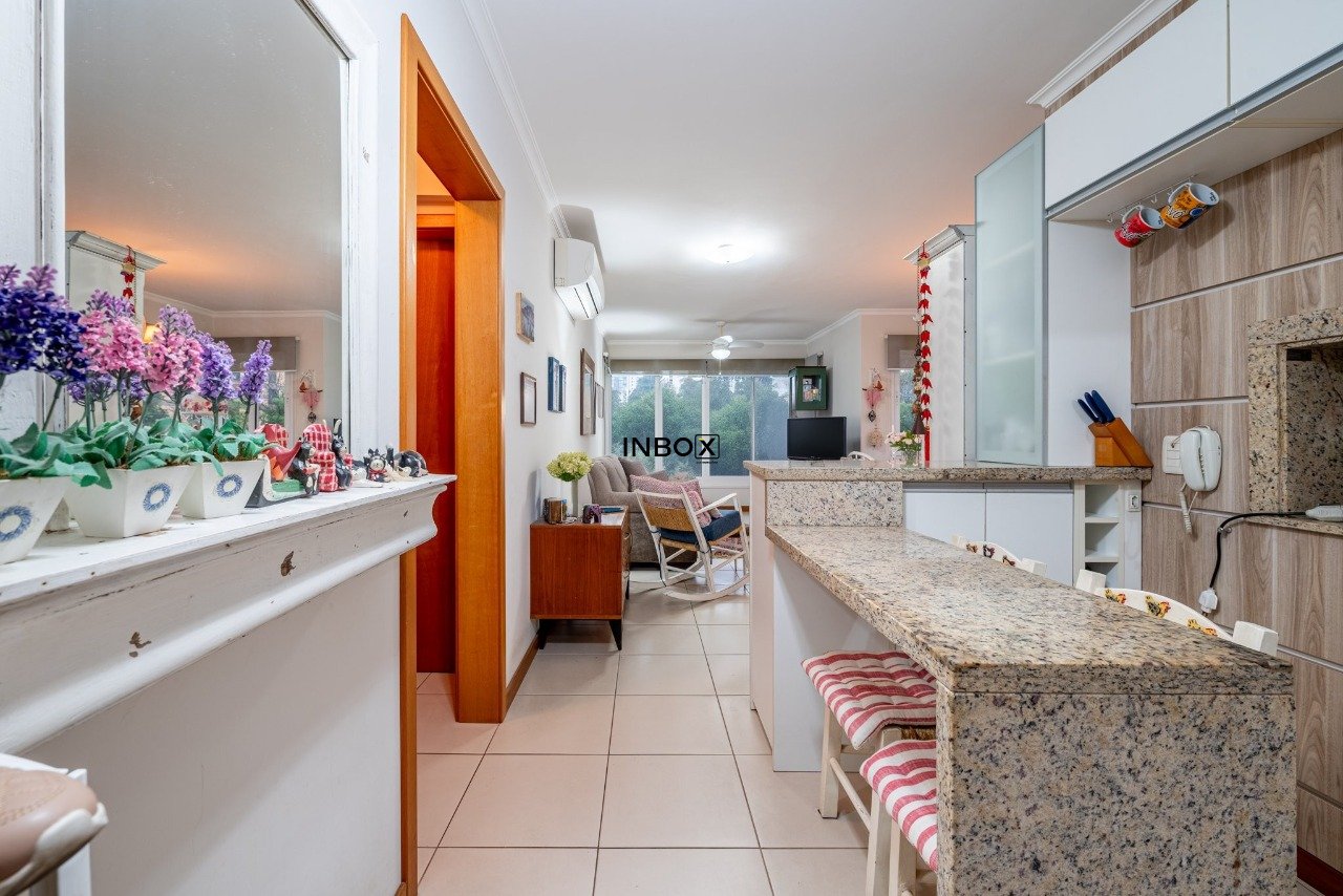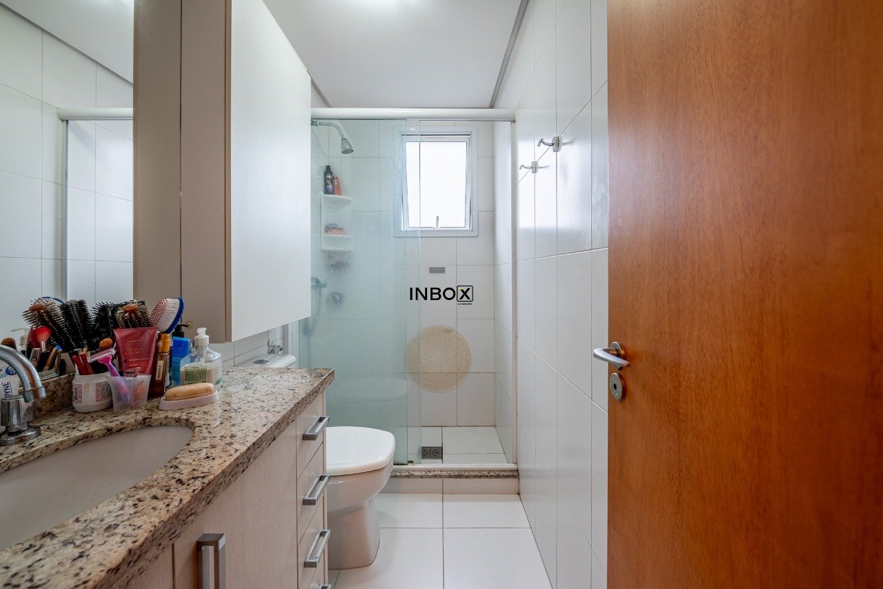 INBOX CIA IMOBILIÁRIA VENDE Apartamento com 81 m², semimobiliado, 2 dormitórios, 1 suíte, banho social, cozinha americana com churrasqueira, área de serviço independente e 2 vagas de garagem lado a lado cobertas.