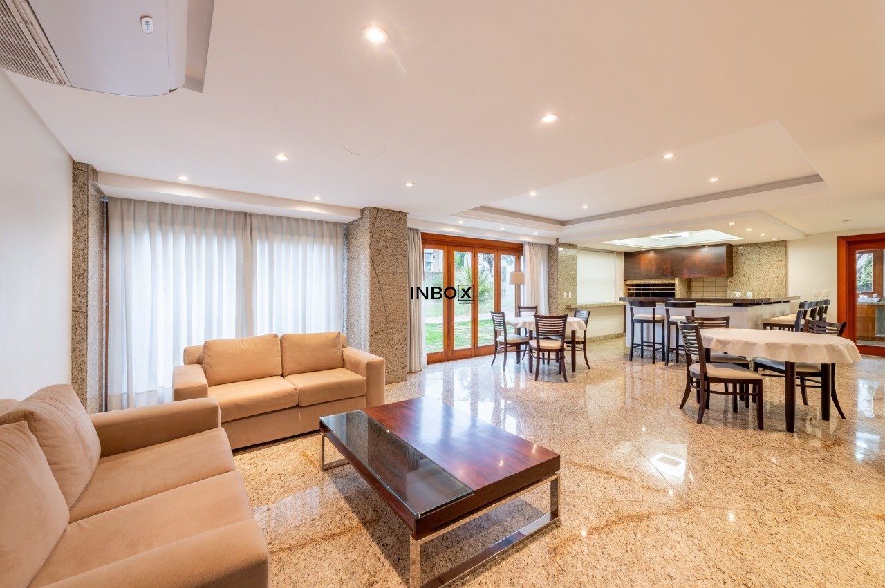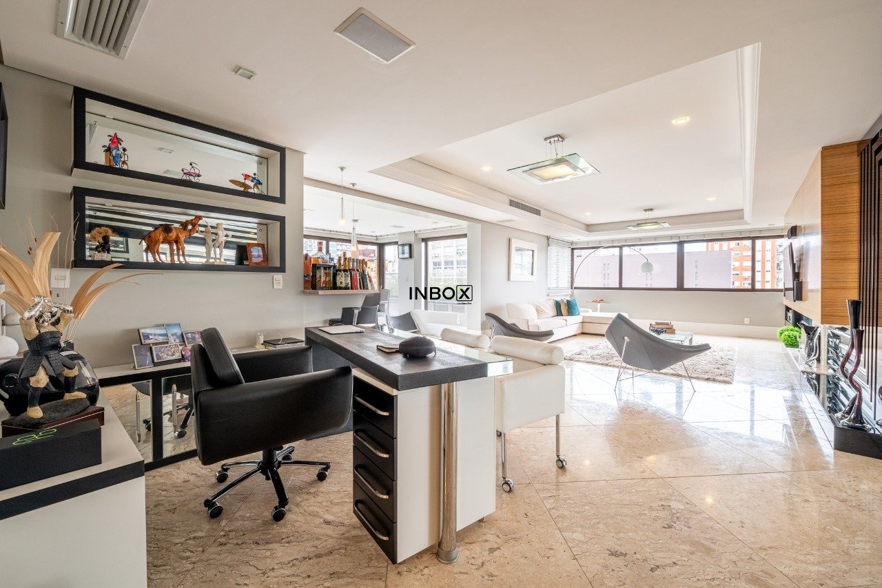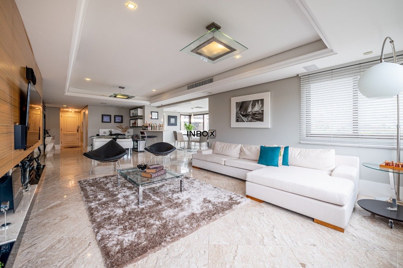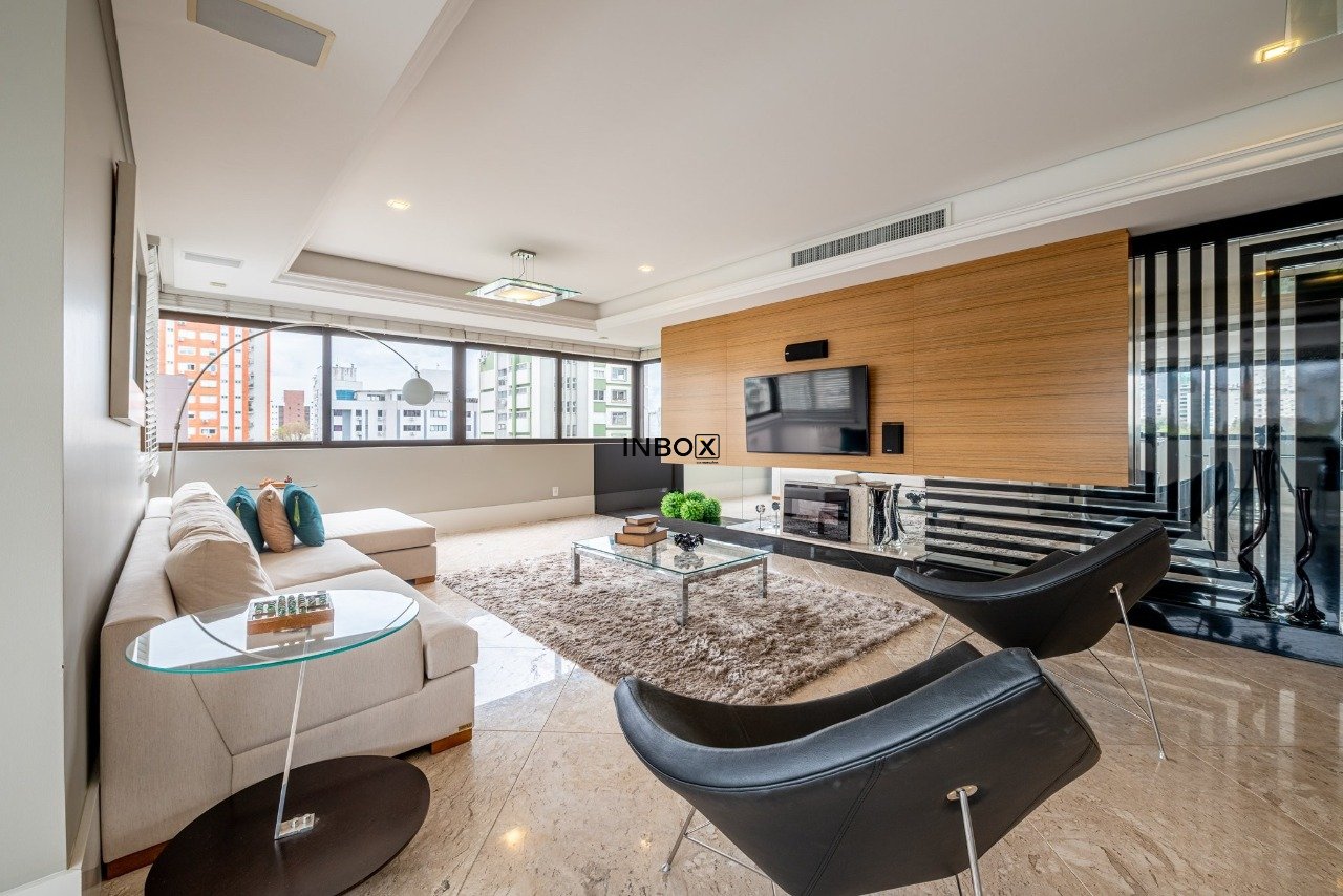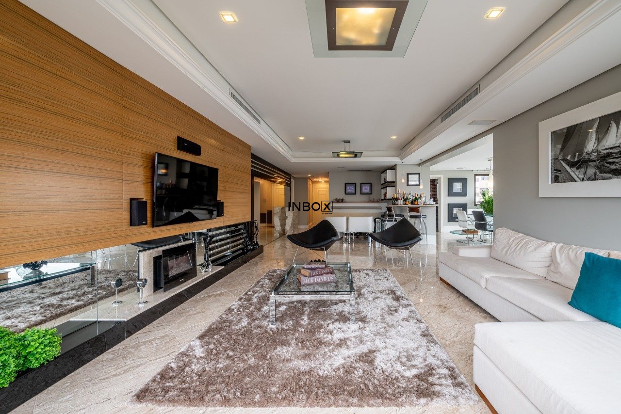 INBOX CIA IMOBILIÁRIA VENDE/ALUGA Apartamento de luxo, totalmente mobiliado, com 201m² de área privativa, 3 dormitórios, 3 suítes, sendo uma master com hidromassagem, amplo living de 3 ambientes com lareira, churrasqueira e lavabo. Cozinha moderna e equipada, área de serviço funcional e dependência. Andar elevado, oferecendo vista panorâmica da cidade. Dispõe de 4 vagas de garagem cobertas.
