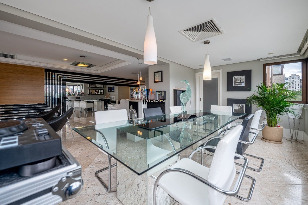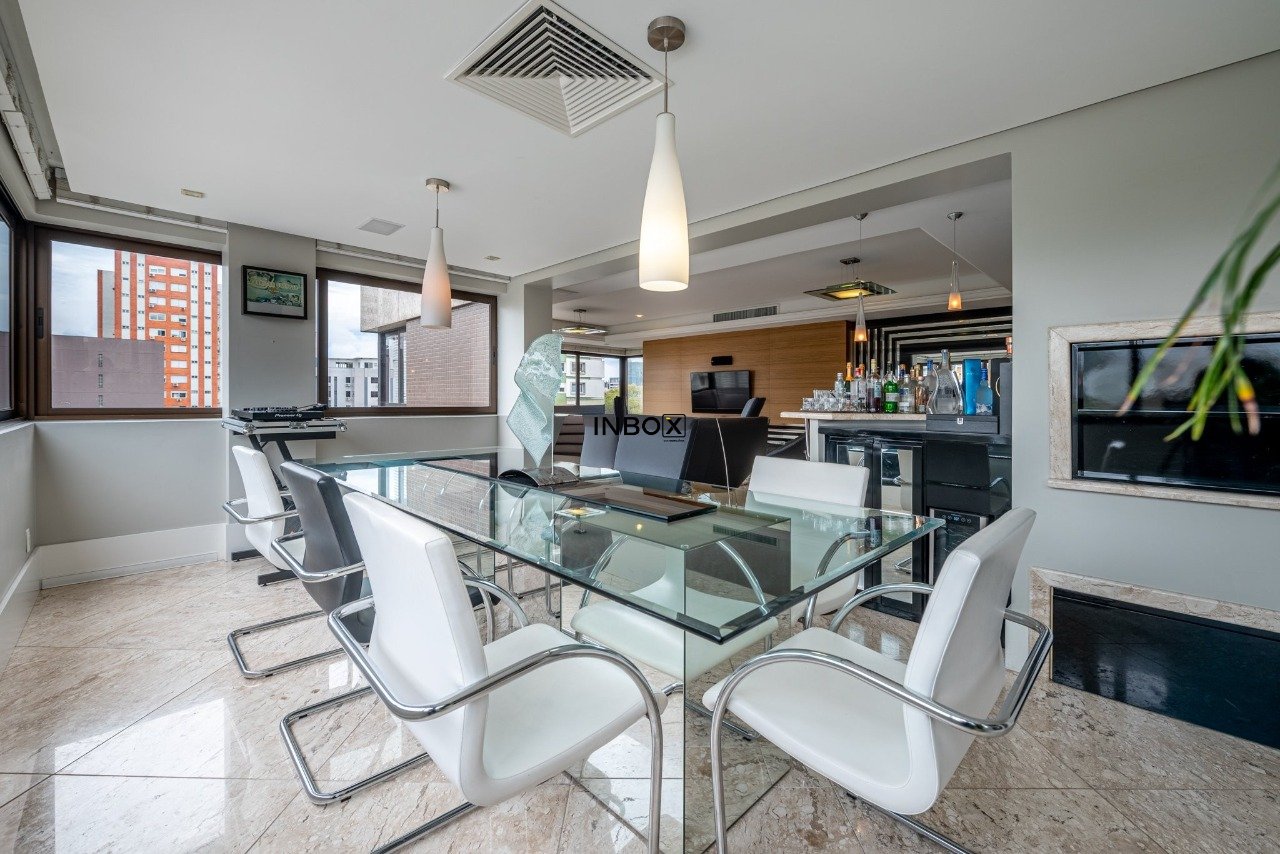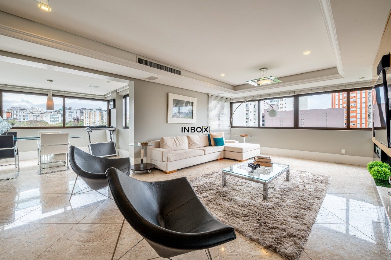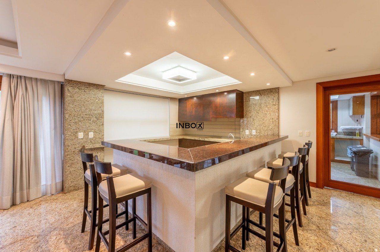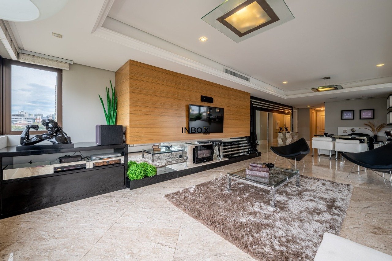 INBOX CIA IMOBILIÁRIA VENDE/ALUGA Apartamento de luxo, totalmente mobiliado, com 201m² de área privativa, 3 dormitórios, 3 suítes, sendo uma master com hidromassagem, amplo living de 3 ambientes com lareira, churrasqueira e lavabo. Cozinha moderna e equipada, área de serviço funcional e dependência. Andar elevado, oferecendo vista panorâmica da cidade. Dispõe de 4 vagas de garagem cobertas.