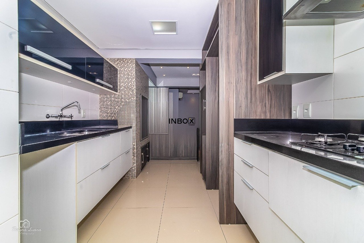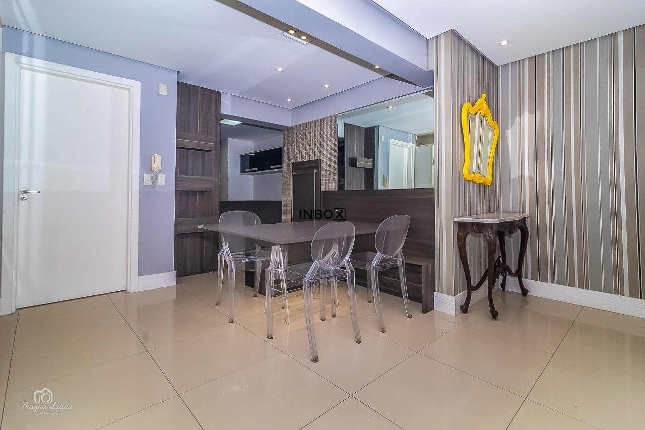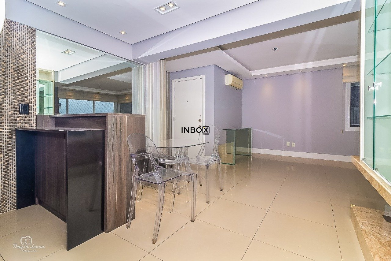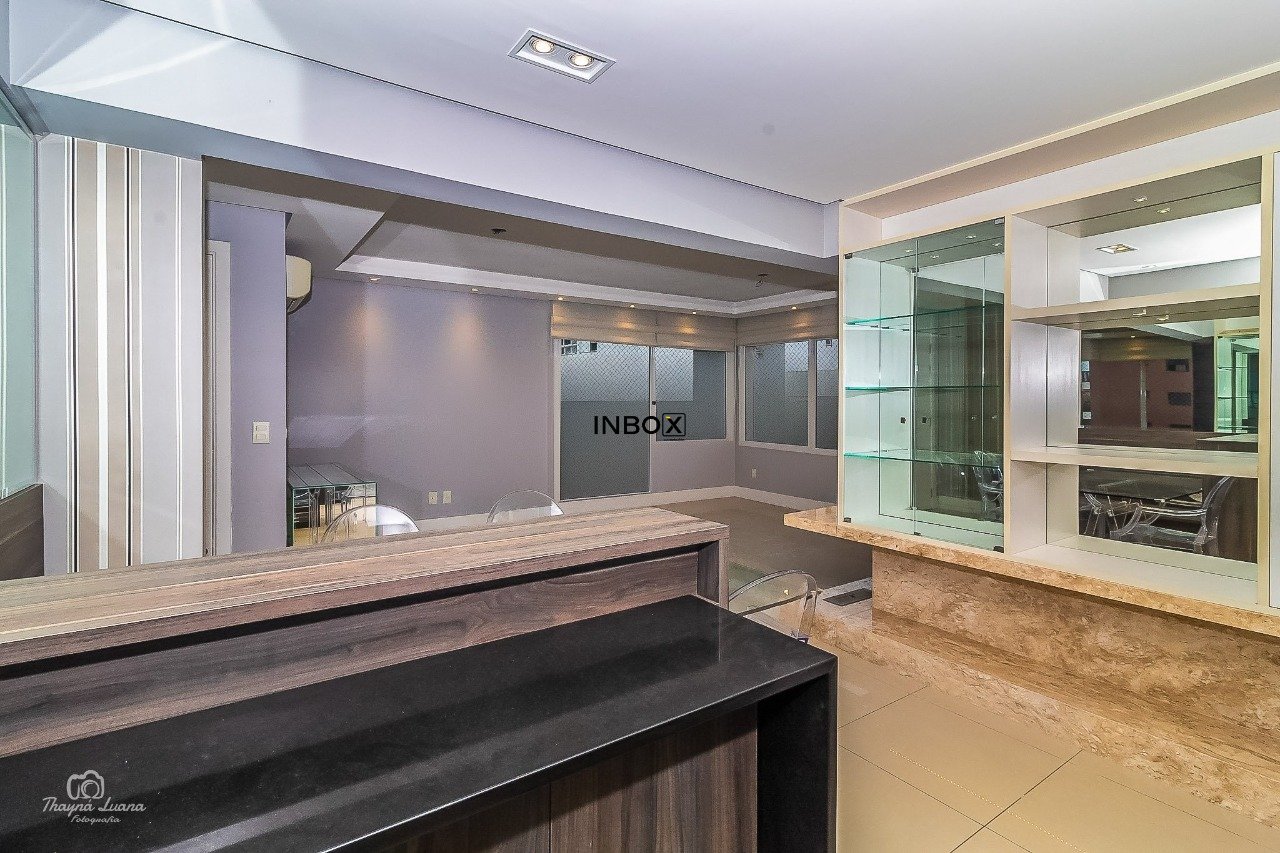 INBOX CIA IMOBILIÁRIA VENDE/ALUGA Apartamento de 87 m² privativos, semimobiliado, com 2 dormitórios, sendo 1 suíte, living amplo para dois ambientes, lareira ecológica a gás, churrasqueira interna, cozinha americana integrada à área de serviço e acabamentos de alto padrão. Móveis sob medida, splits e duas vagas cobertas (vaga dupla com depósito). A posição frente oeste oferece uma vista privilegiada com pôr do sol.