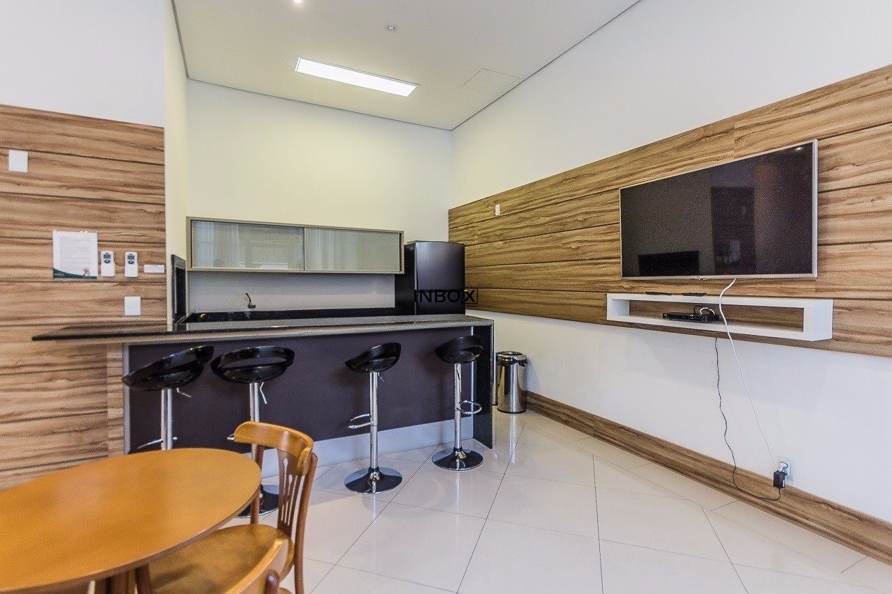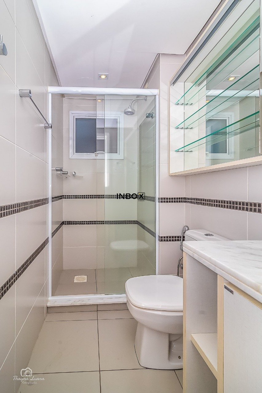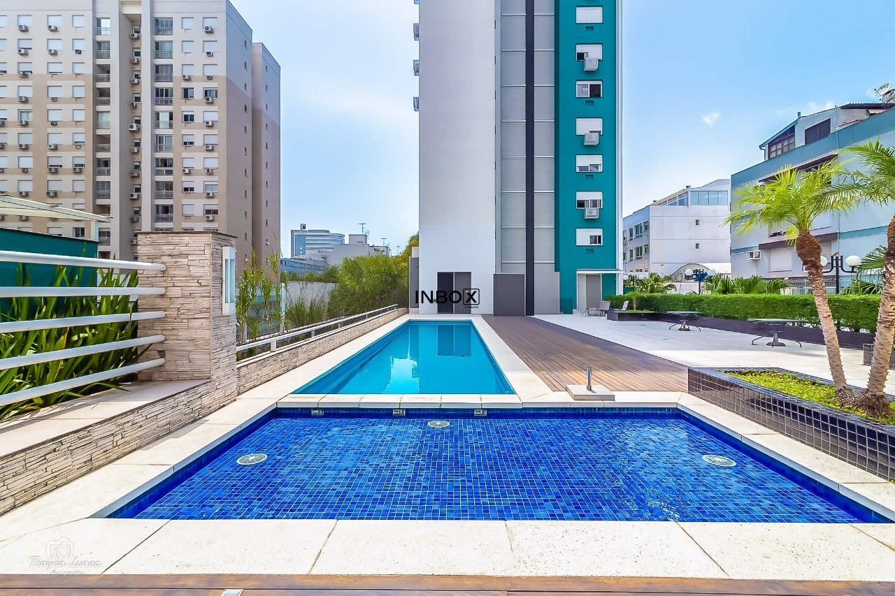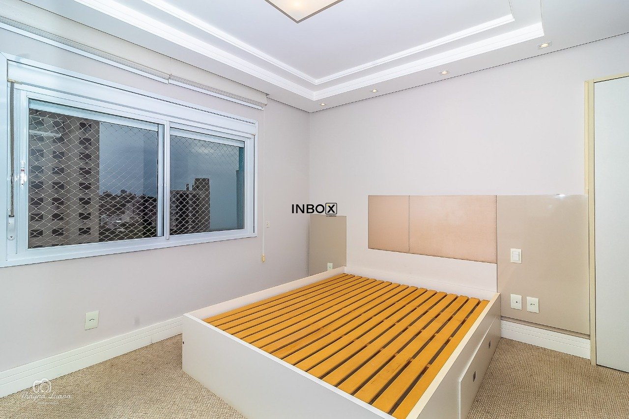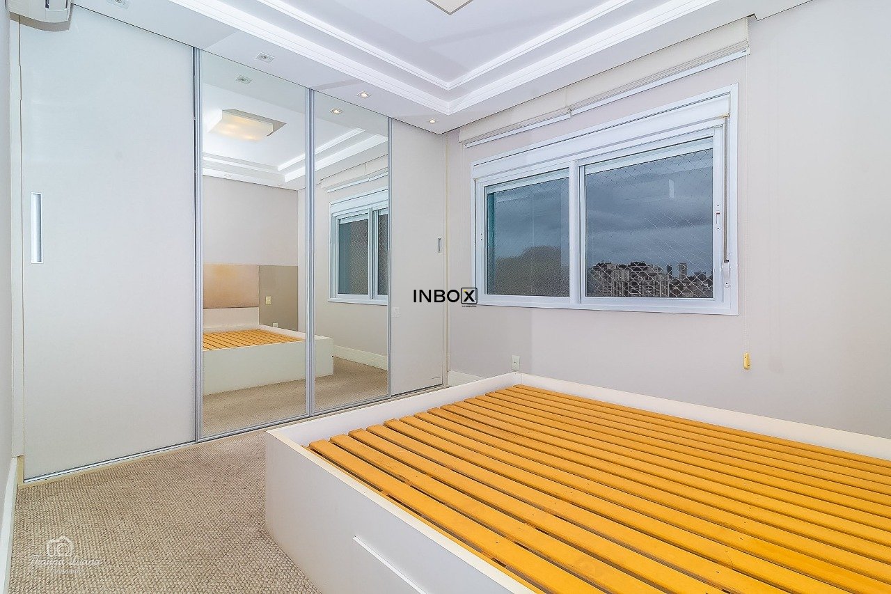 INBOX CIA IMOBILIÁRIA VENDE/ALUGA Apartamento de 87 m² privativos, semimobiliado, com 2 dormitórios, sendo 1 suíte, living amplo para dois ambientes, lareira ecológica a gás, churrasqueira interna, cozinha americana integrada à área de serviço e acabamentos de alto padrão. Móveis sob medida, splits e duas vagas cobertas (vaga dupla com depósito). A posição frente oeste oferece uma vista privilegiada com pôr do sol.