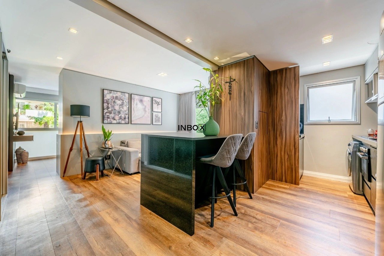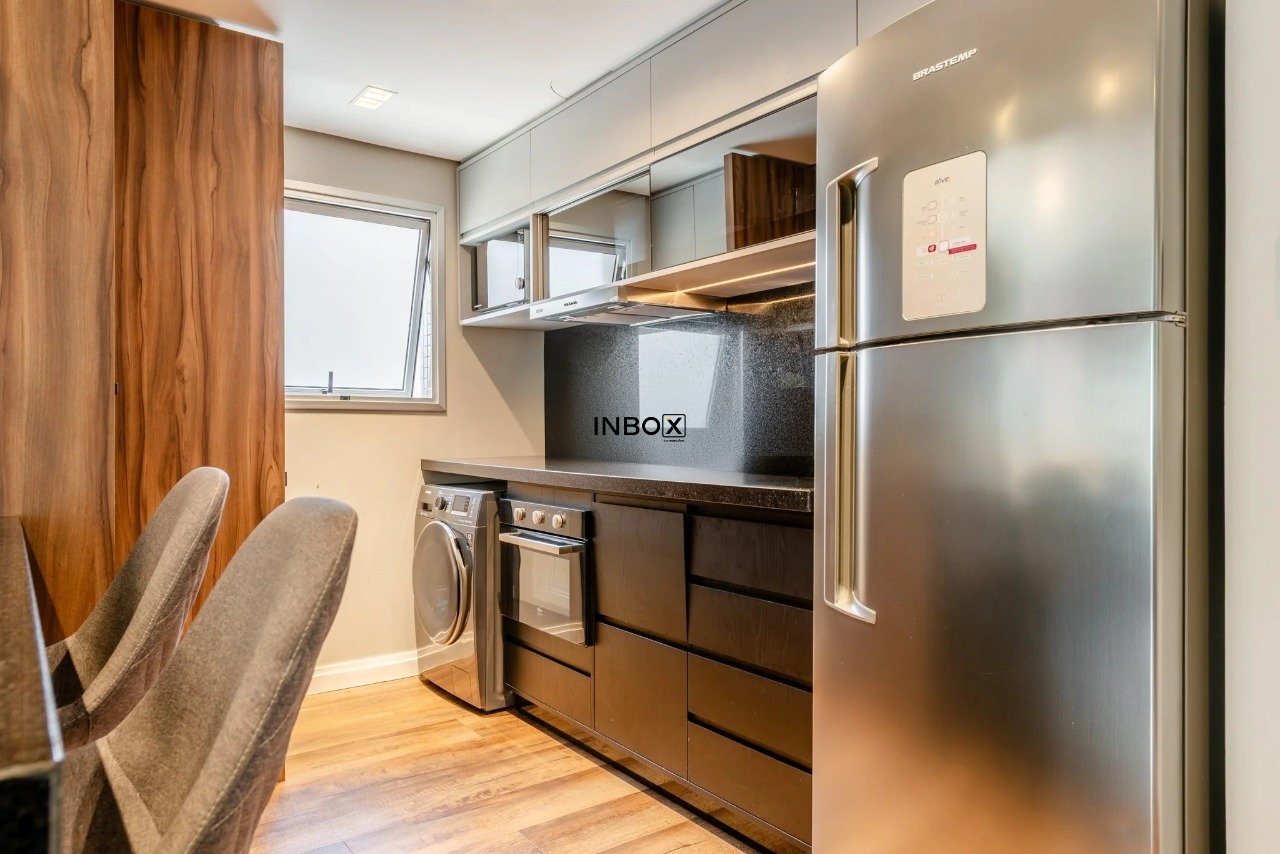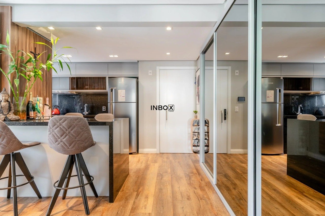 INBOX CIA IMOBILIÁRIA VENDE Apartamento com 62 m² de área privativa, 1 dormitório, 1 suíte, living amplo, cozinha americana integrada com churrasqueira, lavabo e sacada. Possui vaga dupla de garagem e depósito.