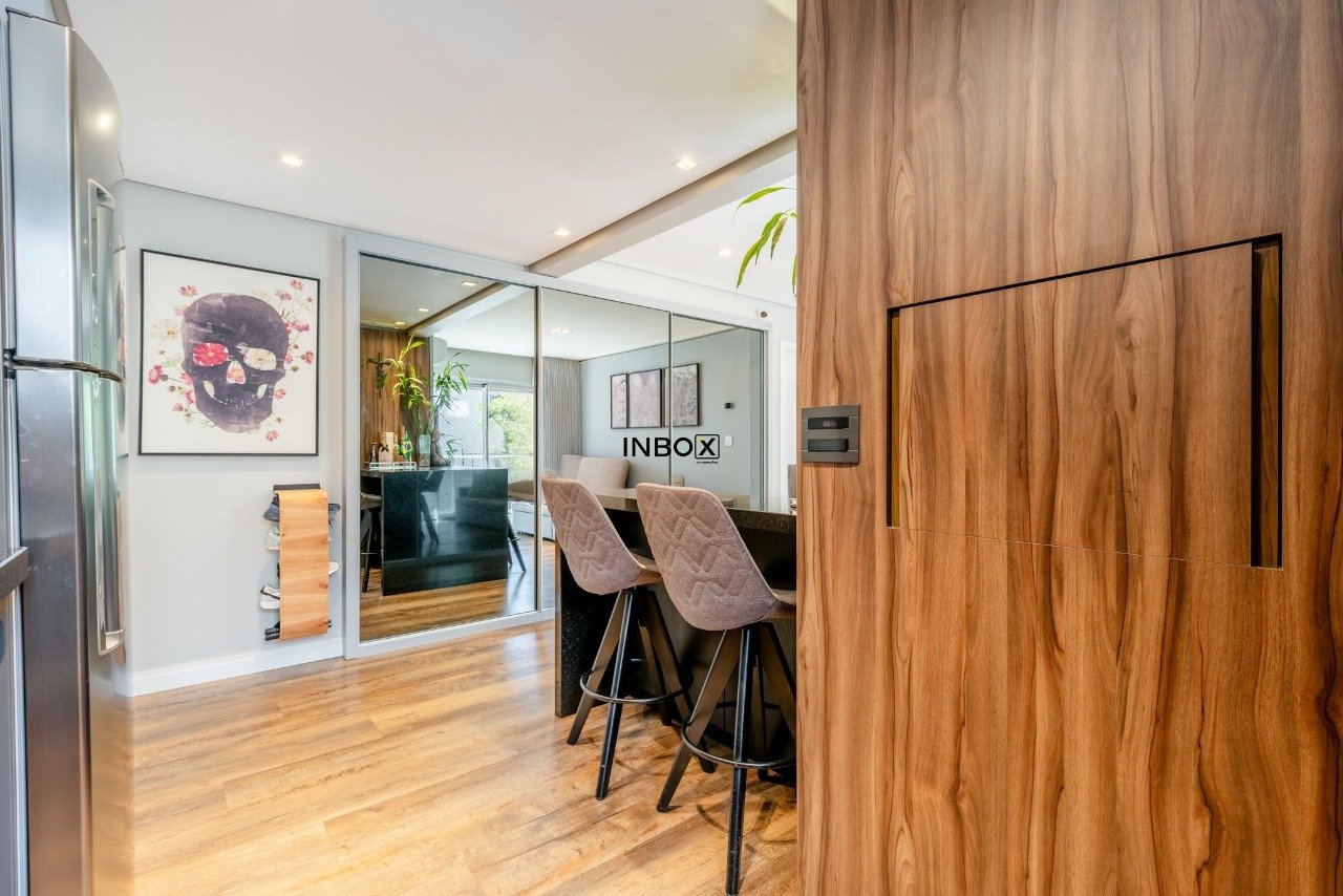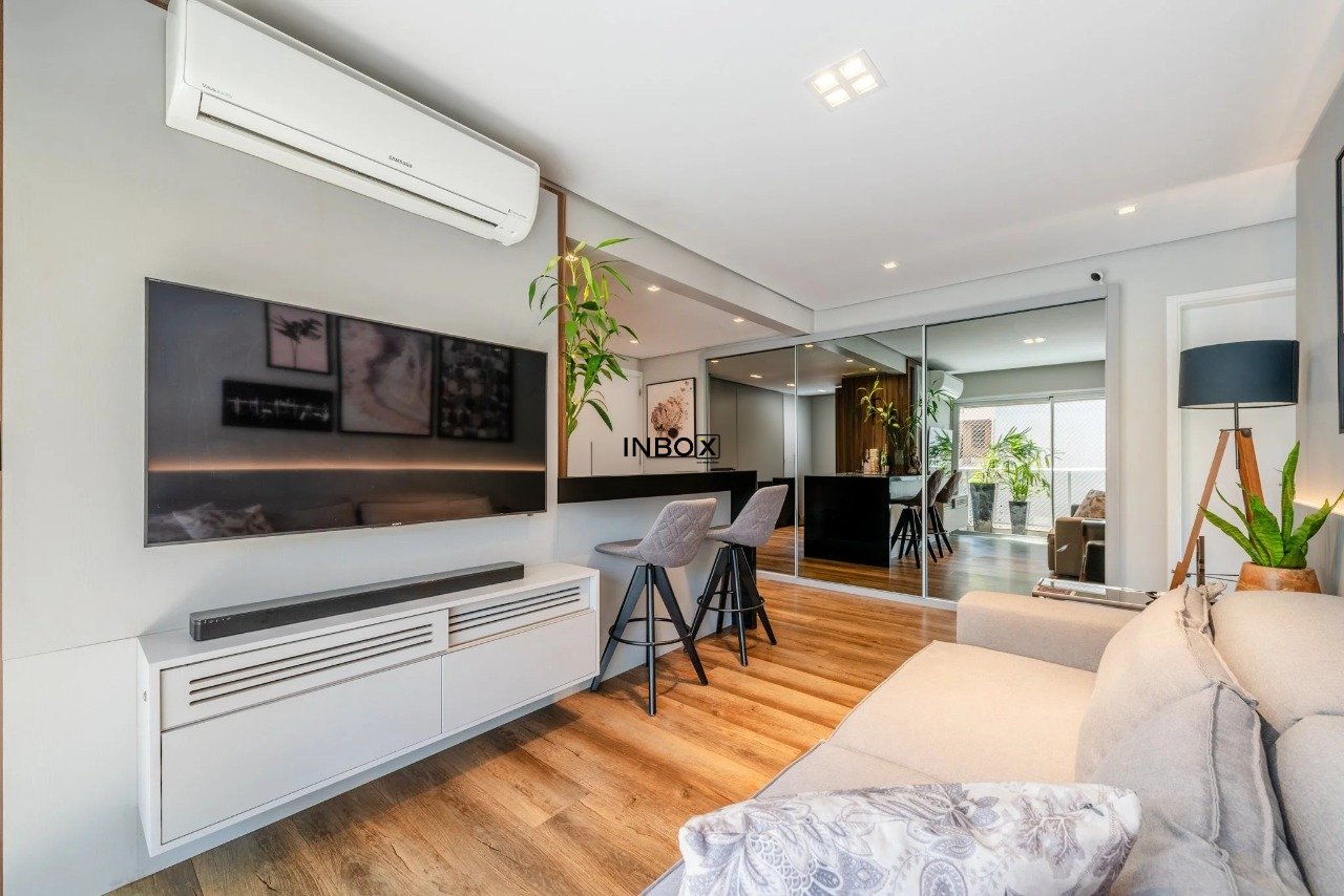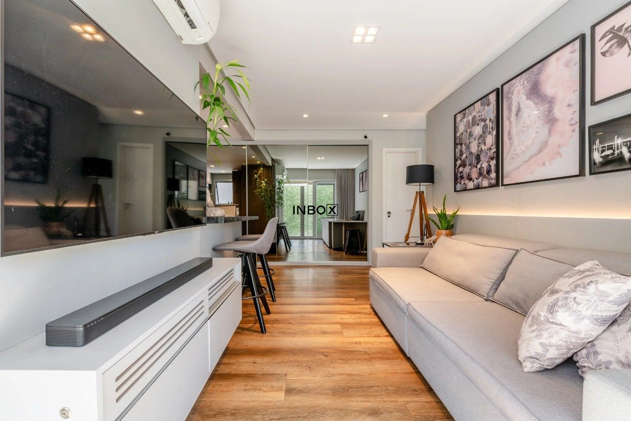 INBOX CIA IMOBILIÁRIA VENDE Apartamento com 62 m² de área privativa, 1 dormitório, 1 suíte, living amplo, cozinha americana integrada com churrasqueira, lavabo e sacada. Possui vaga dupla de garagem e depósito.