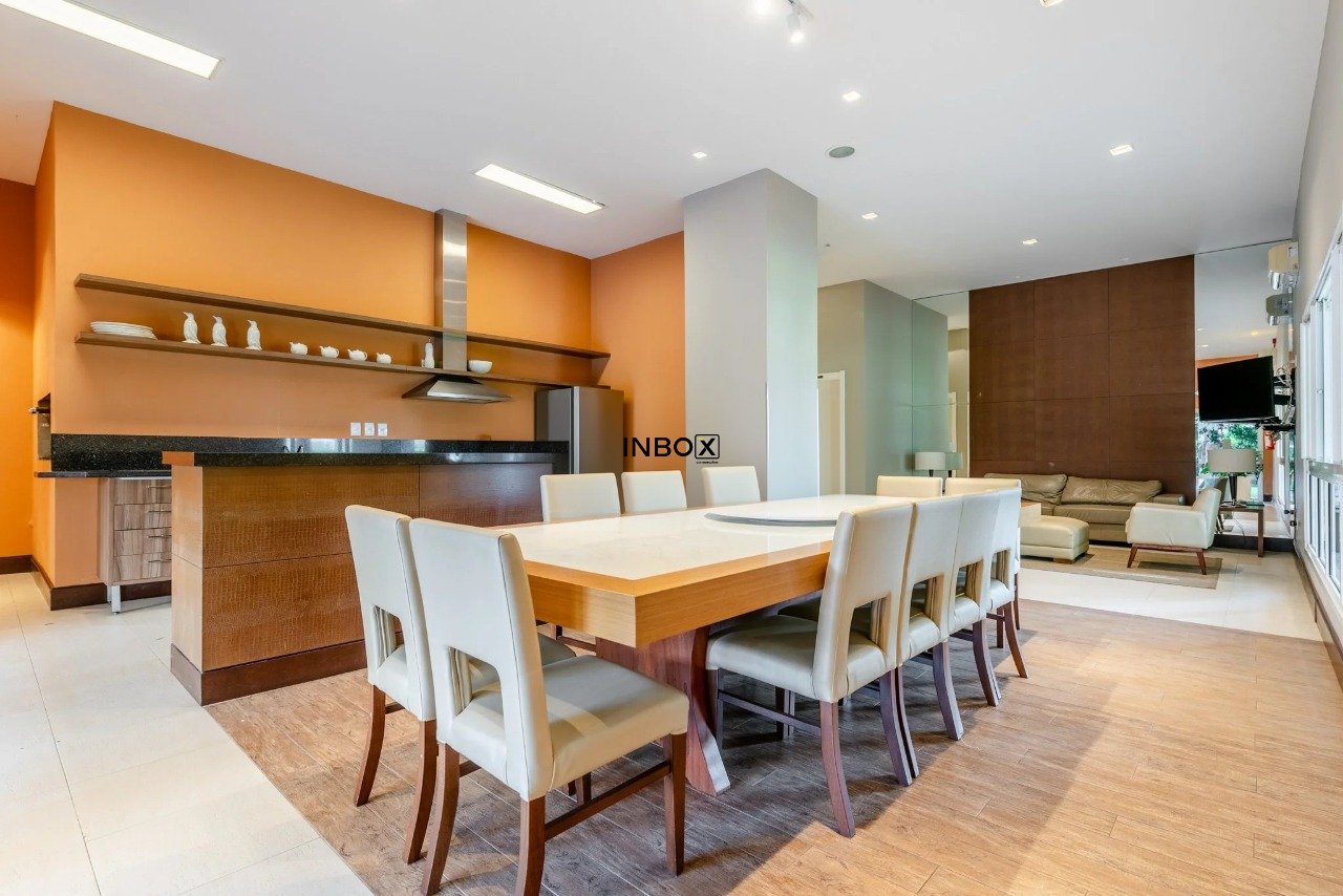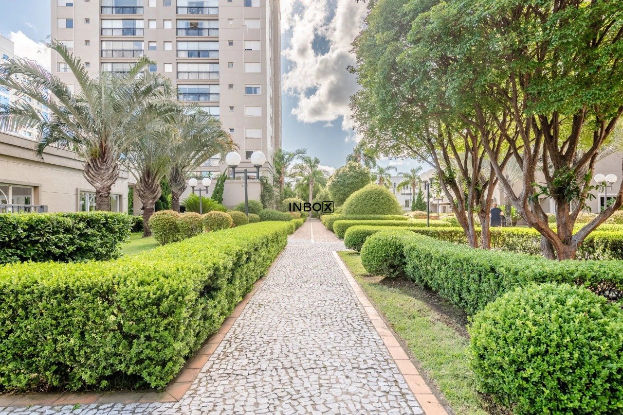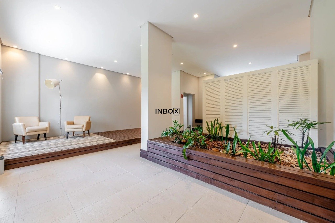 INBOX CIA IMOBILIÁRIA ALUGA Apartamento com 121 m² de área privativa, mobiliado, de 3 dormitórios, incluindo suíte com closet, living amplo com lavabo, sacada integrada com churrasqueira, cozinha planejada e equipada, área de serviço separada e 2 vagas cobertas individuais.