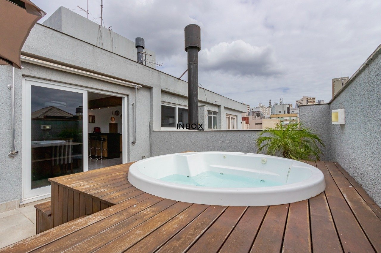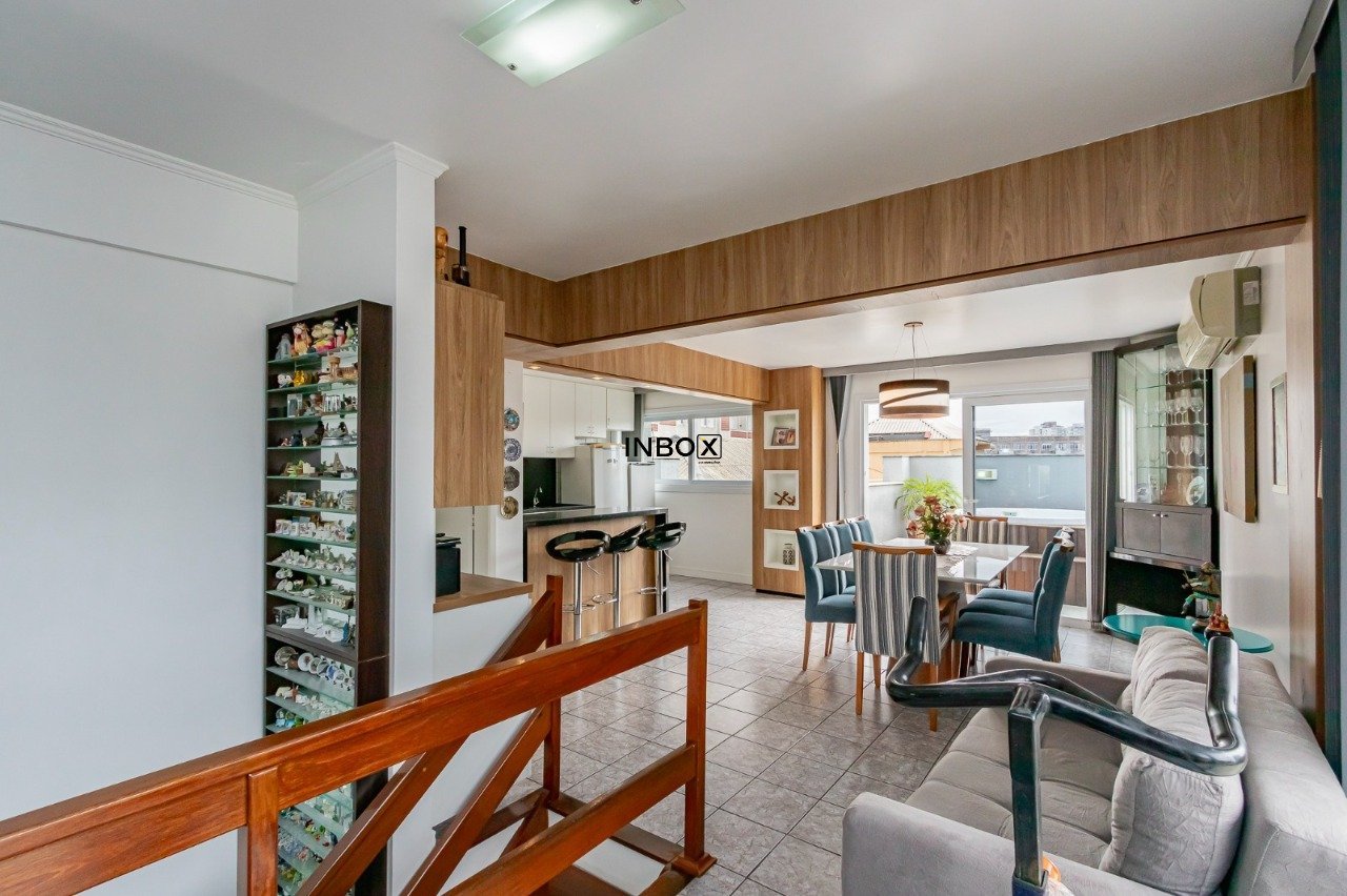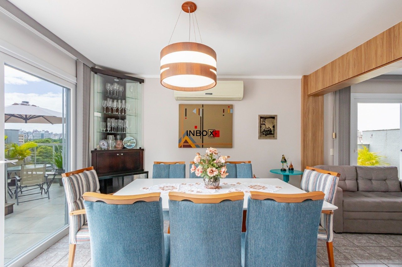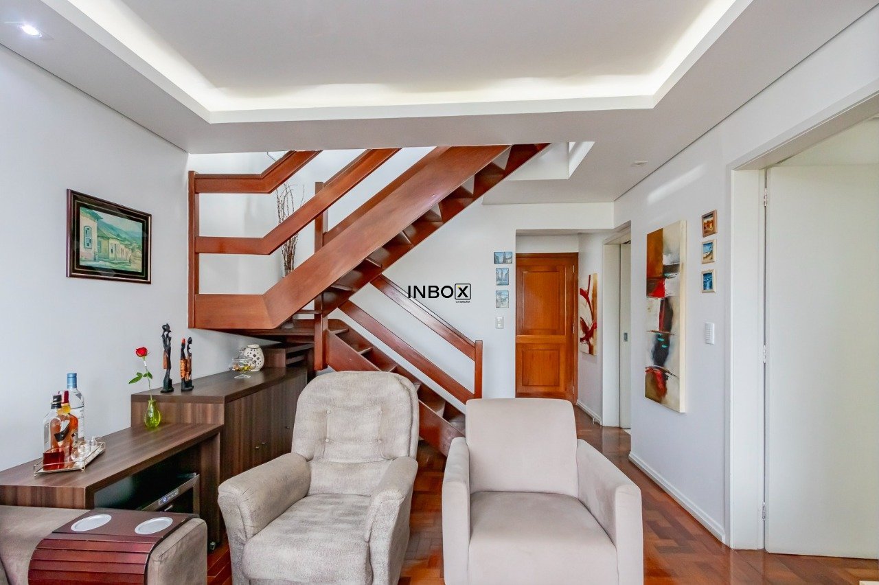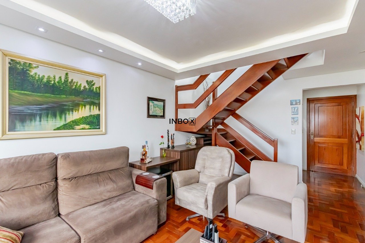 INBOX CIA IMOBILIARIA VENDE Cobertura semimobiliada com 191m² de área privativa, distribuída em dois pavimentos, oferecendo ambientes amplos, excelente iluminação natural e ventilação cruzada. O imóvel conta com 3 dormitórios, sendo 1 suíte master, além de 1 vaga de garagem, ideal para quem busca conforto e espaço em um imóvel diferenciado.