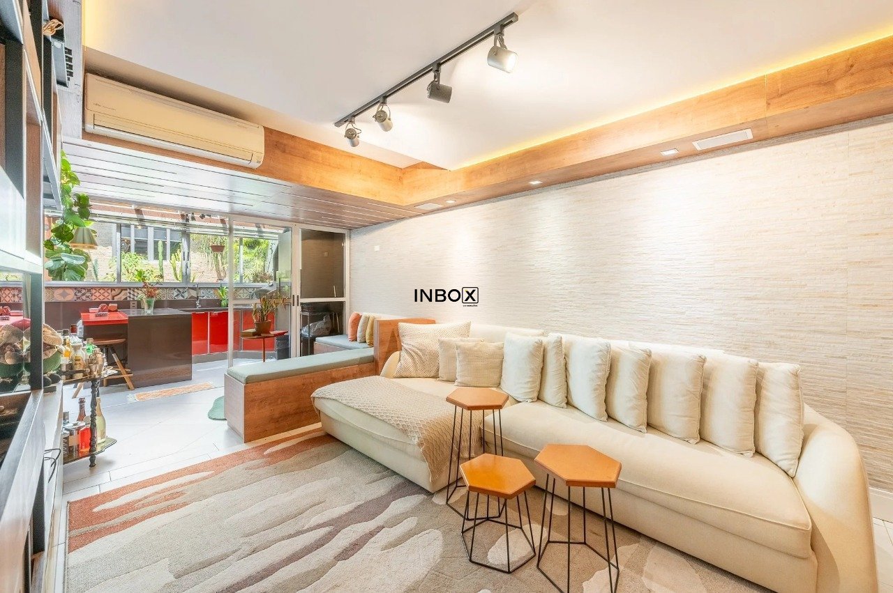 INBOX CIA IMOBILIÁRIA VENDE Apartamento garden de 110m² de área privativa, semimobiliado, composto por 2 dormitórios planejados, sendo 1 suíte, living com churrasqueira, cozinha gourmet, forno de pizza, sistema de som no teto e quintal.