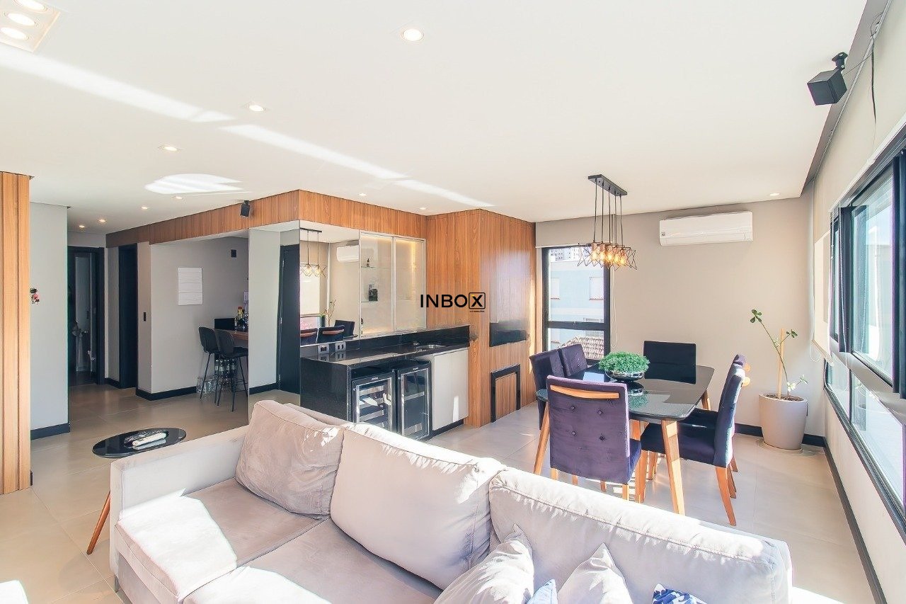 INBOX CIA IMOBILIÁRIA VENDE Apartamento com 107m² privativos, composto por 2 dormitórios, 2 suítes, living para dois ambientes integrando sala de estar e jantar, lavabo, churrasqueira, cozinha planejada e área de serviço independente. Excelente iluminação natural. Possui 2 vagas de garagem cobertas.