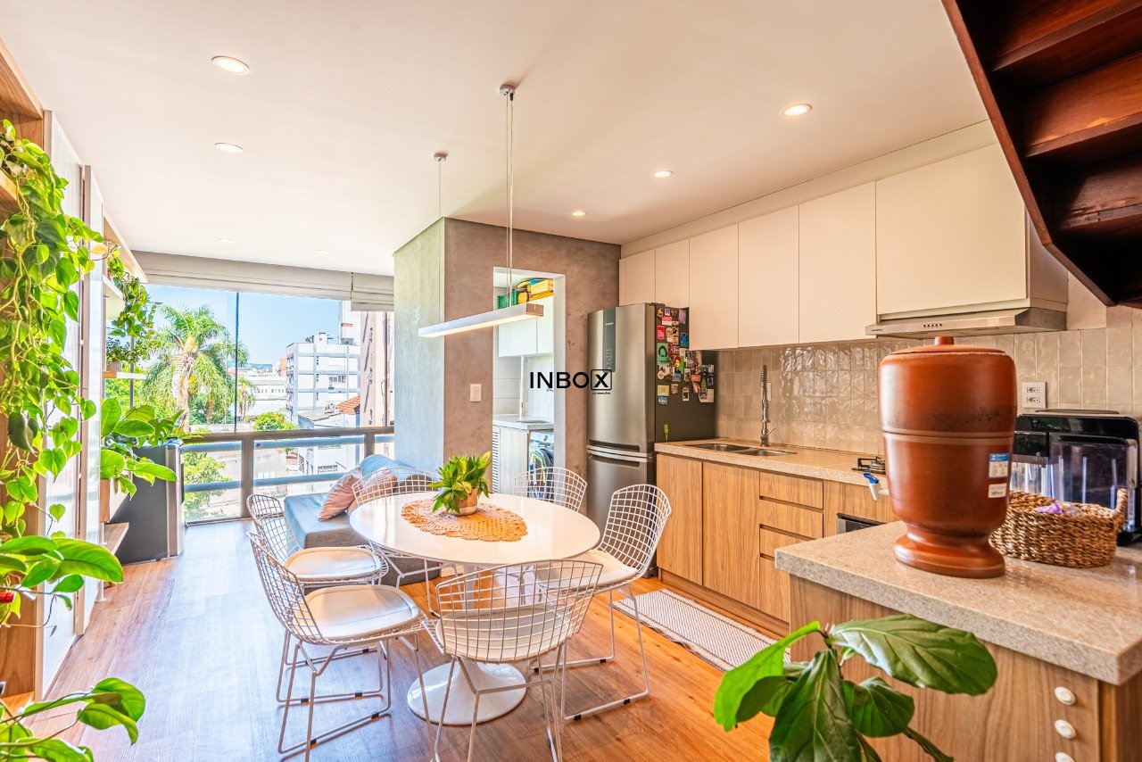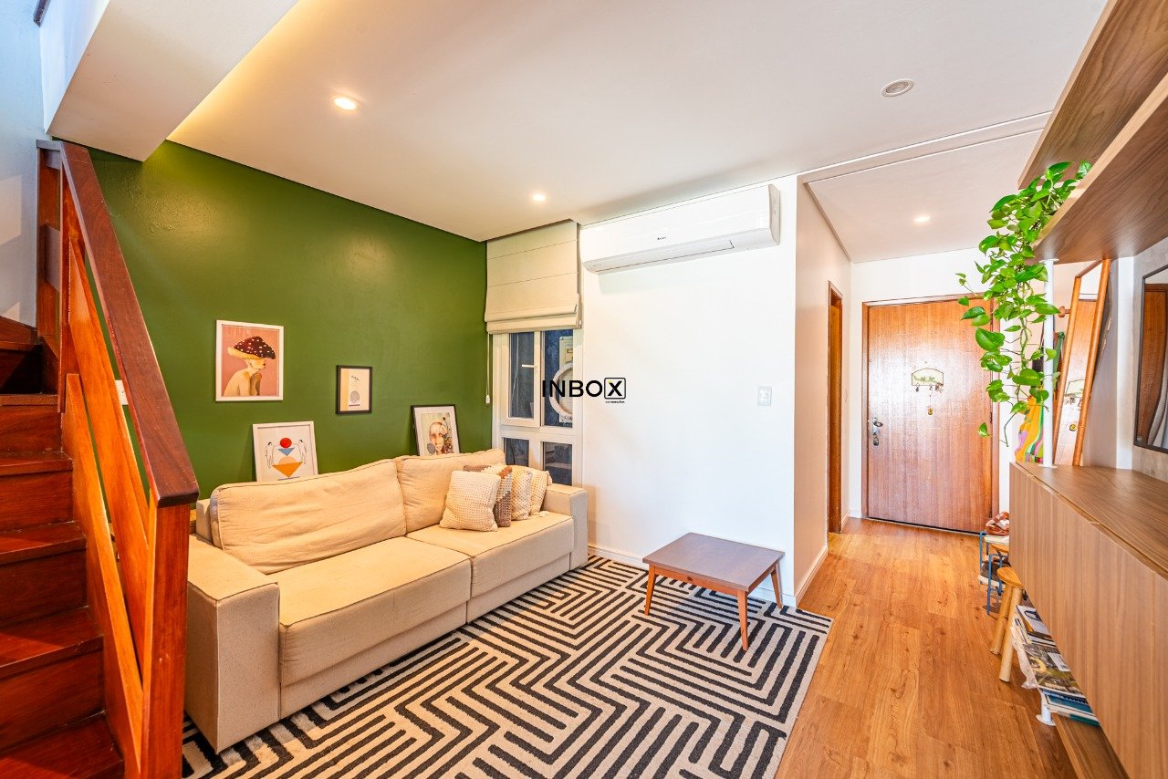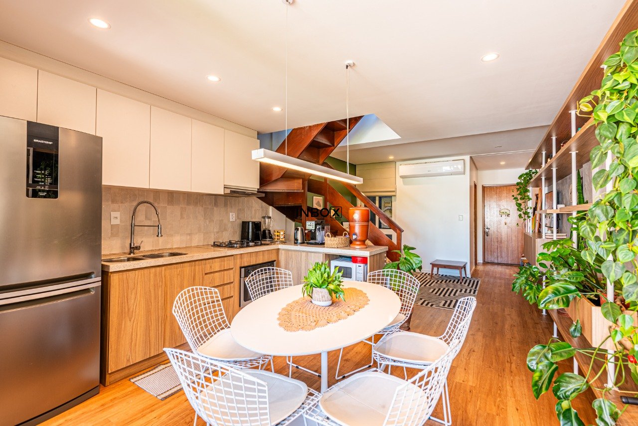 INBOX CIA IMOBILIÁRIA VENDE Cobertura reformada com 97m² privativos, 1 dormitório, 1 suíte, living amplo, cozinha integrada, área de serviço, banheiro social e mezanino.