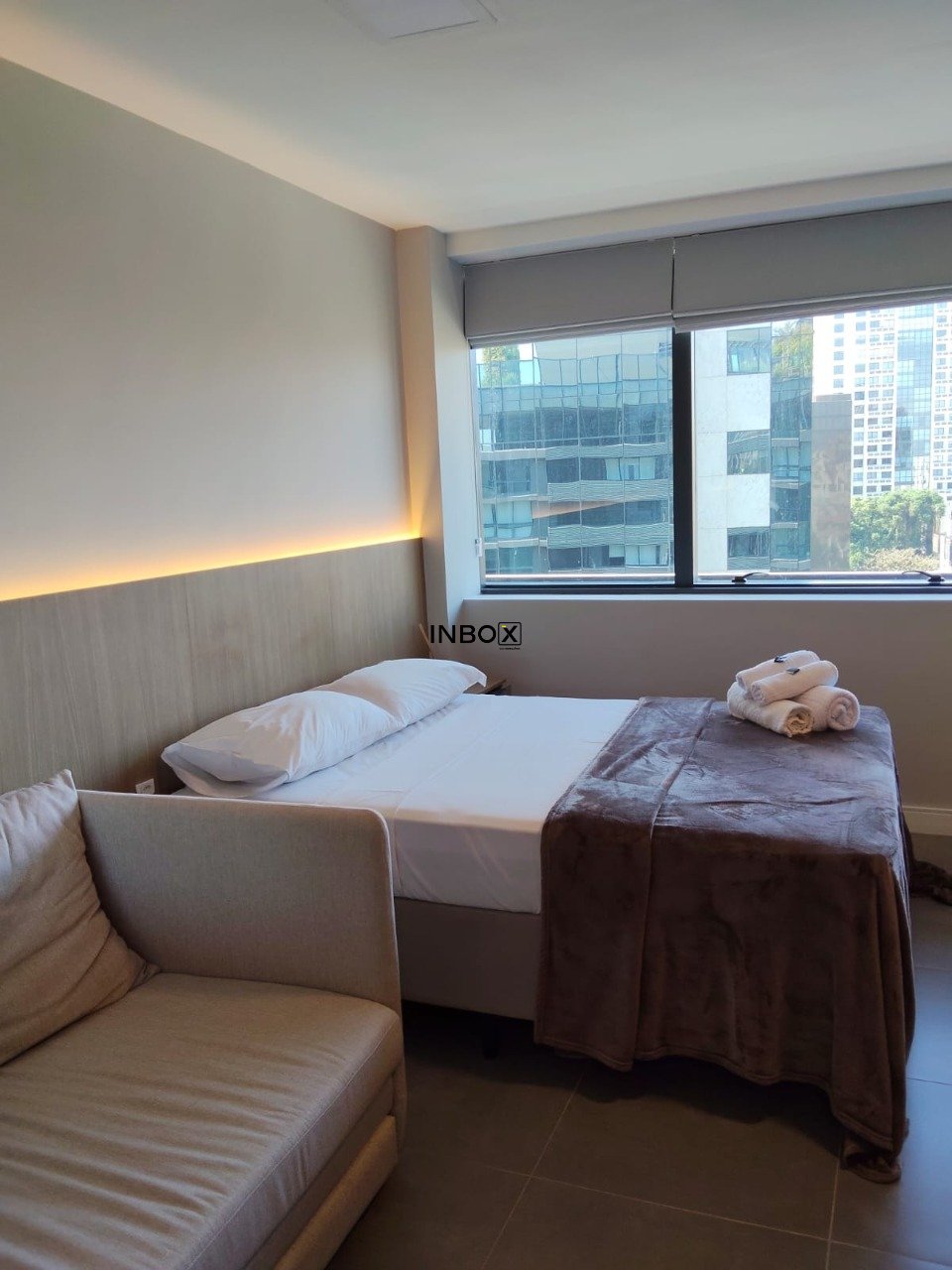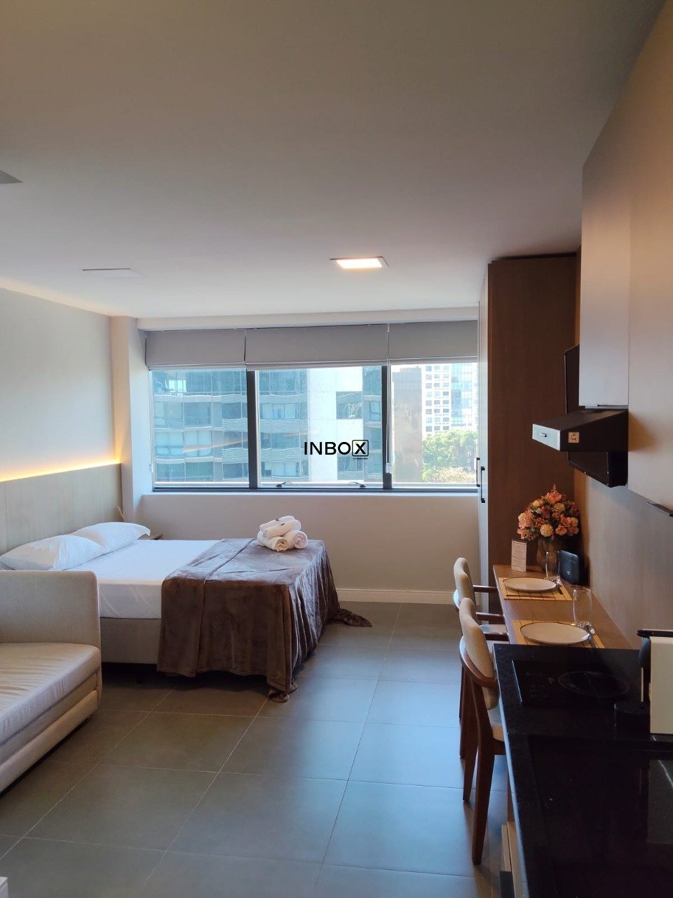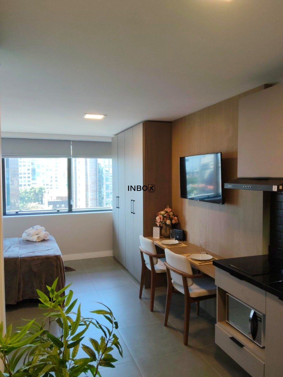 INBOX CIA IMOBILIÁRIA ALUGA Studio de luxo finamente mobiliado e equipado, andar alto com vista livre, privilegiada posição solar em prédio conceito, empreendimento recém entregue em exclusiva localização !
