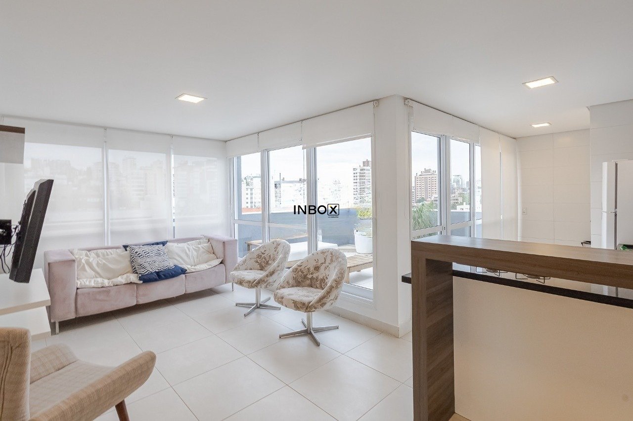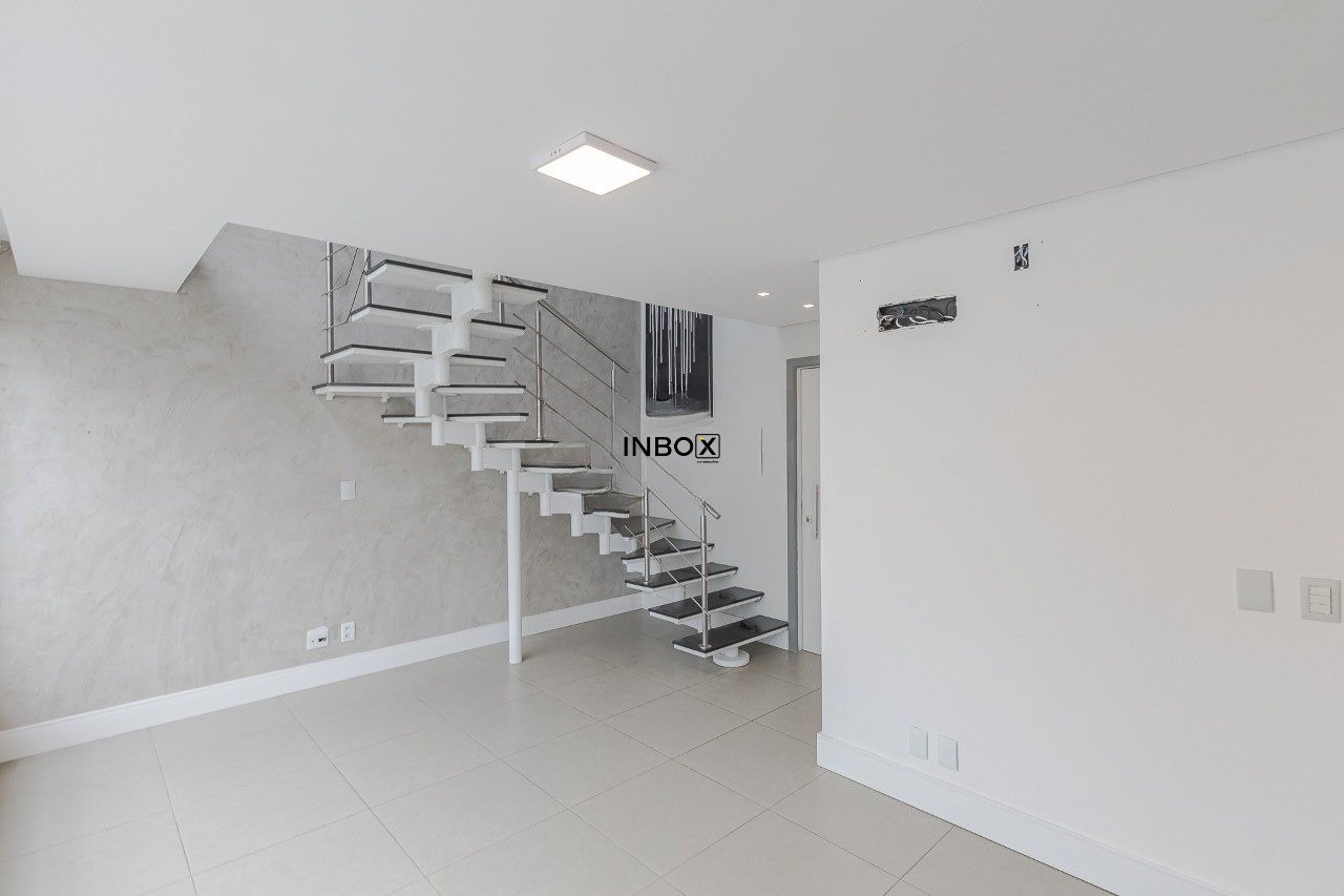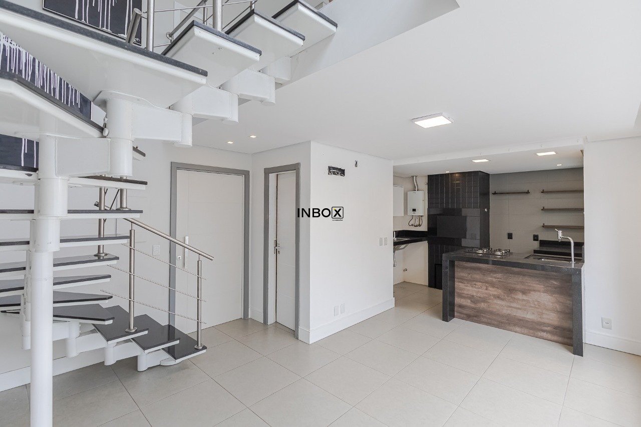 INBOX CIA IMOBILIÁRIA VENDE Apartamento duplex, semimobiliado, 1 dormitório, suíte, living integrado à cozinha americana planejada com churrasqueira e lavabo. Possui 1 vaga de garagem.