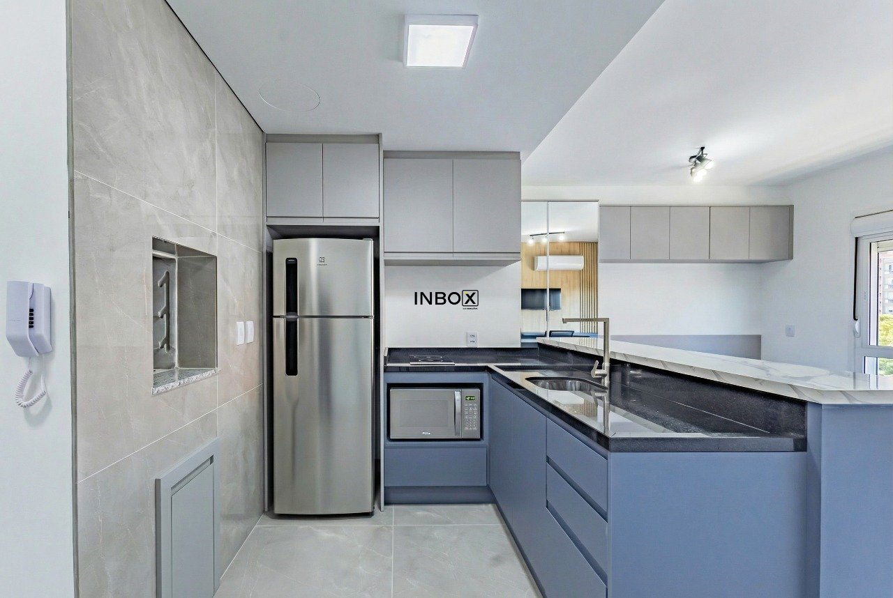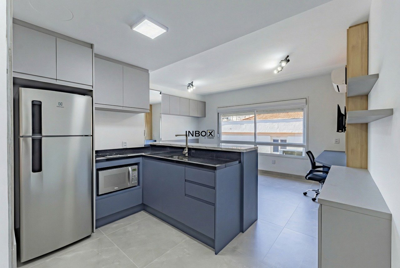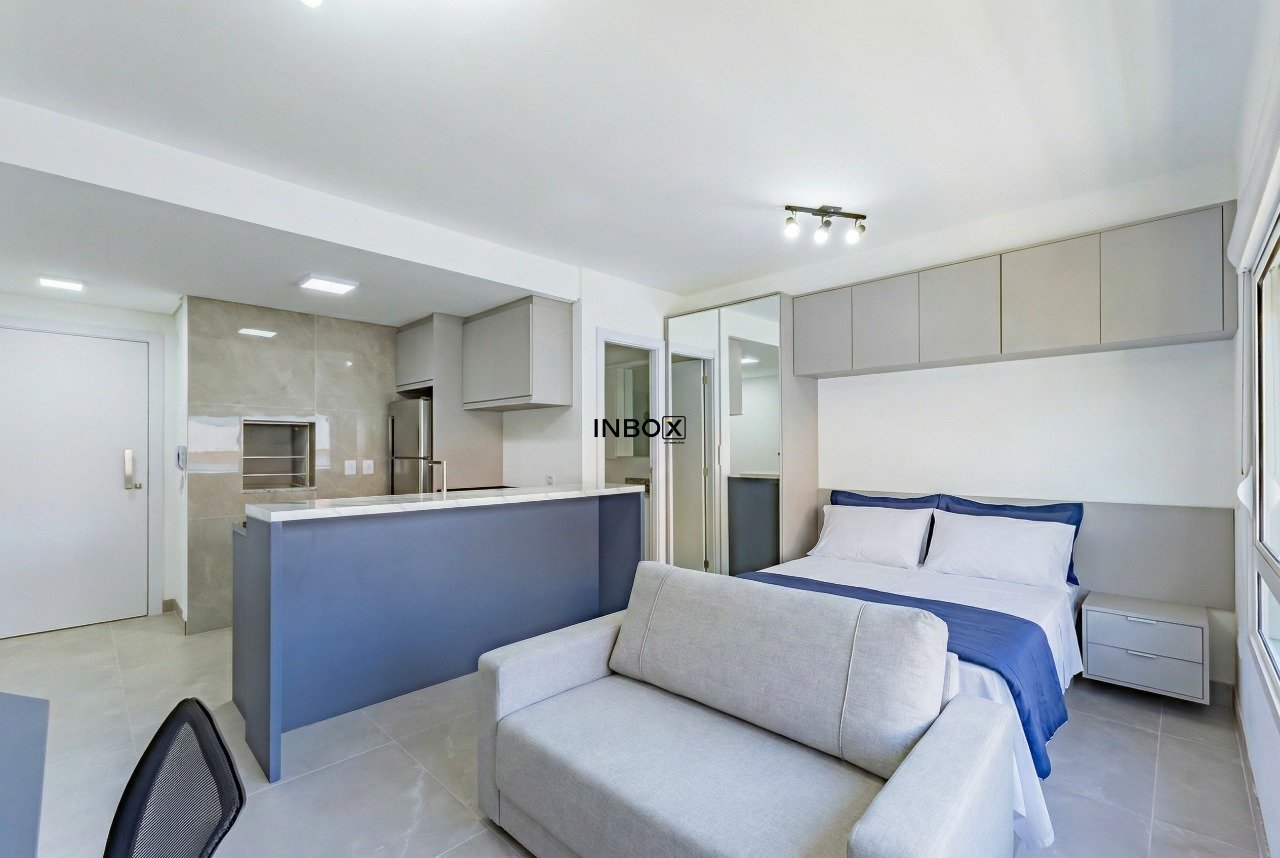 INBOX CIA IMOBILIÁRIA ALUGA no bairro Moinhos de Vento, amplo Studio, com 30m², mobiliado, churrasqueira, piso porcelanato, split e eletroeletrônicos.