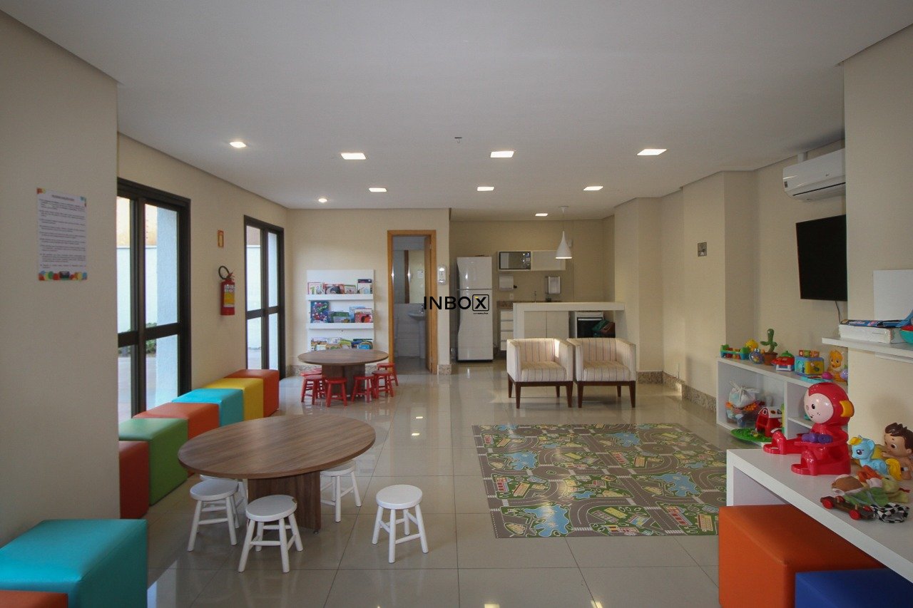 Infraestrutura do condomínio: Segurança 24h, academia, sala de jogos, sala kids, 2 salões gourmet para alugar, mercado, piscina 25 metros aquecida e quadra de futebol e basquete.