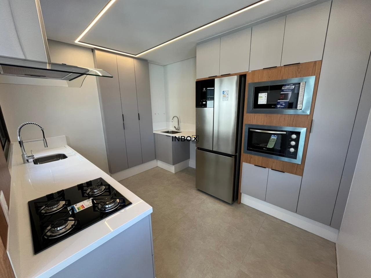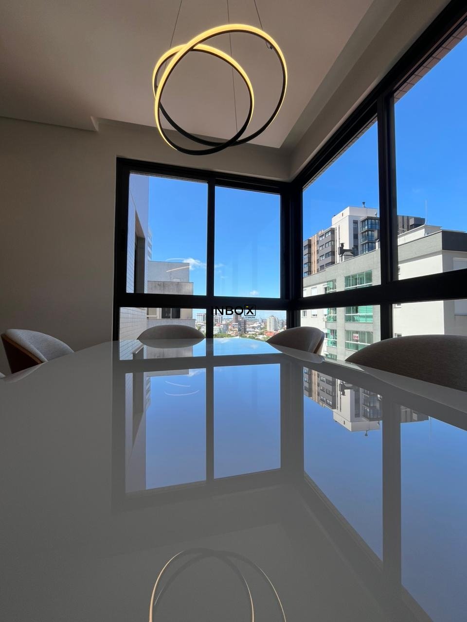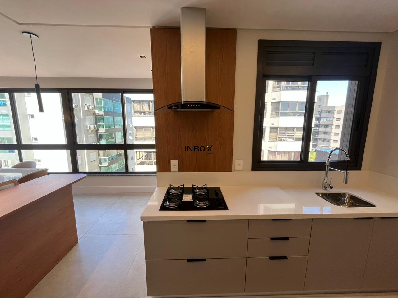 Porcelanato na área social e laminado em madeira na área íntima, tubulação para coifa na cozinha, isolamento acústico no contra-piso.
