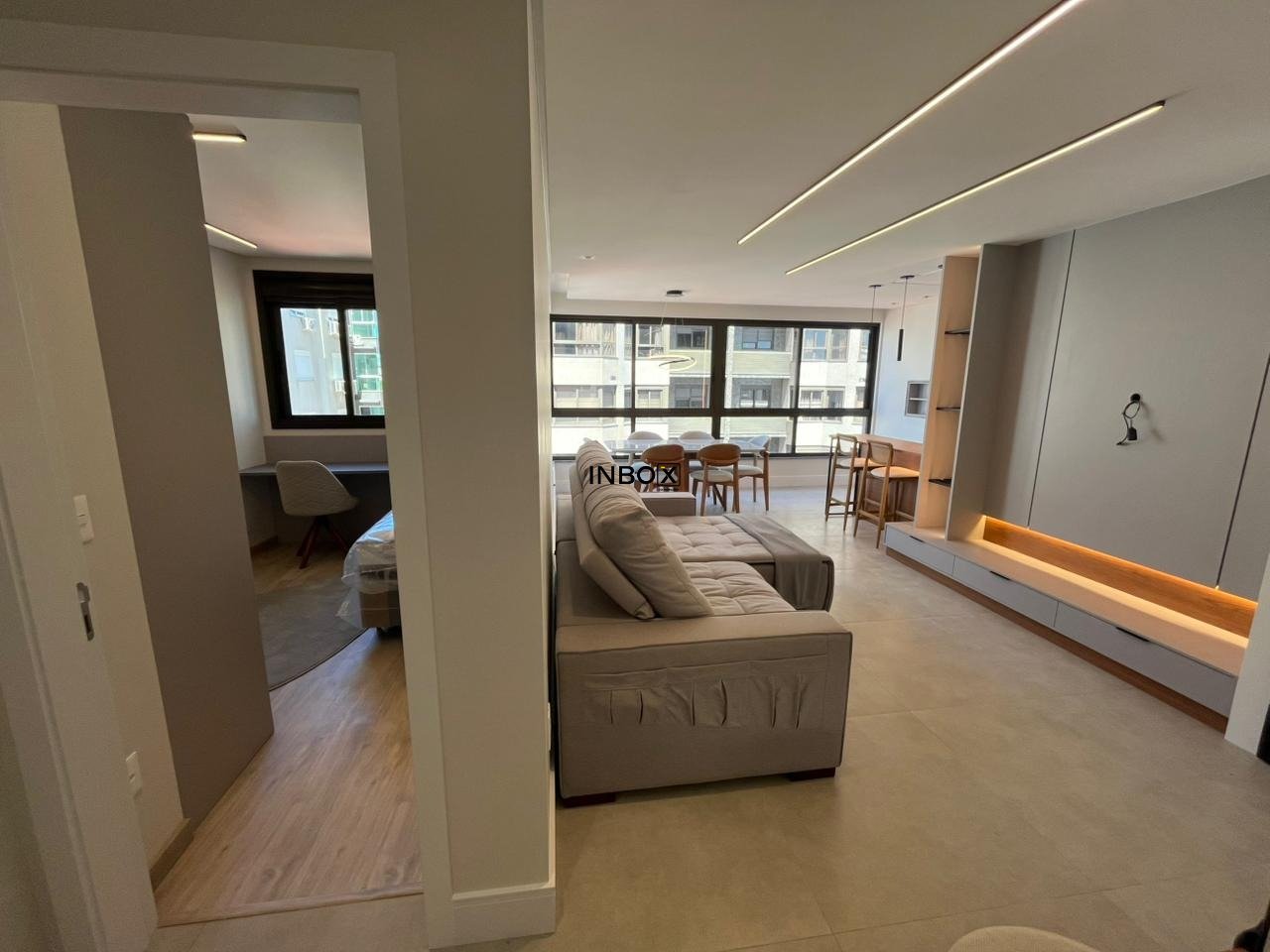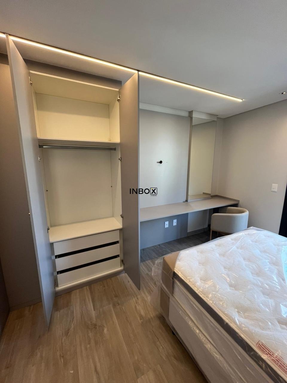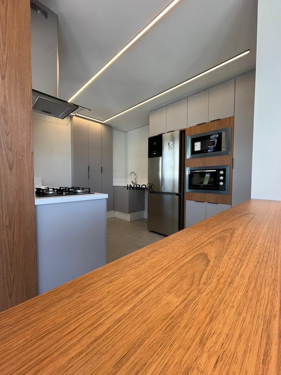 Porcelanato na área social e laminado em madeira na área íntima, tubulação para coifa na cozinha, isolamento acústico no contra-piso.