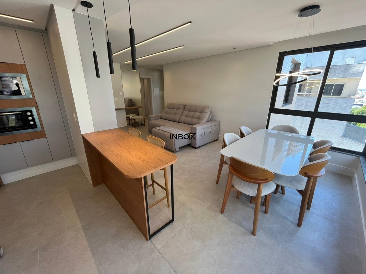 Composto por: 02 dormitórios sendo um deles suíte com sacada aberta, sala de estar/jantar integrados, cozinha, área de serviço, churrasqueira e