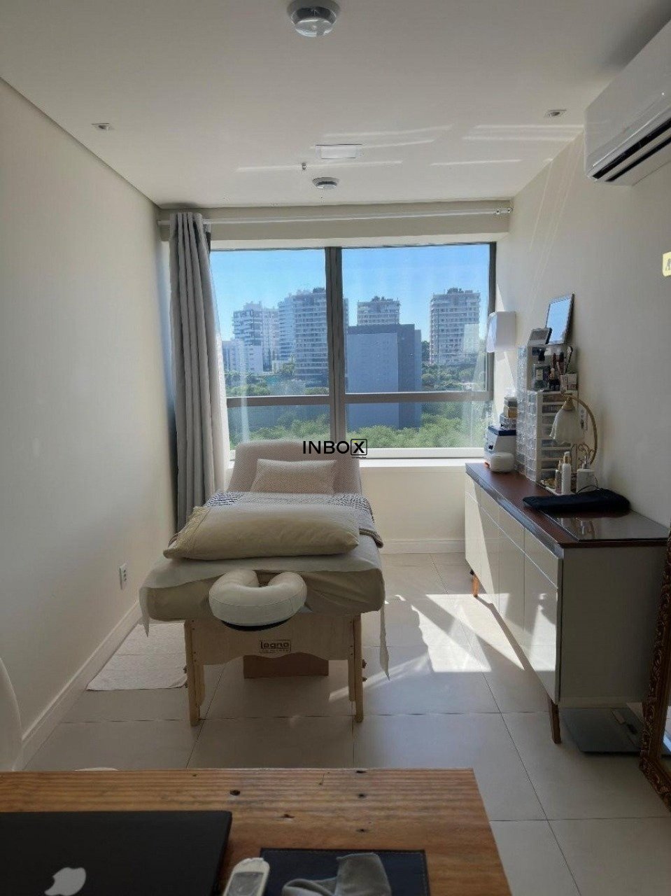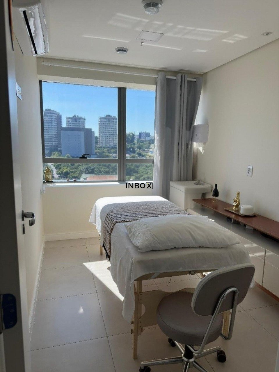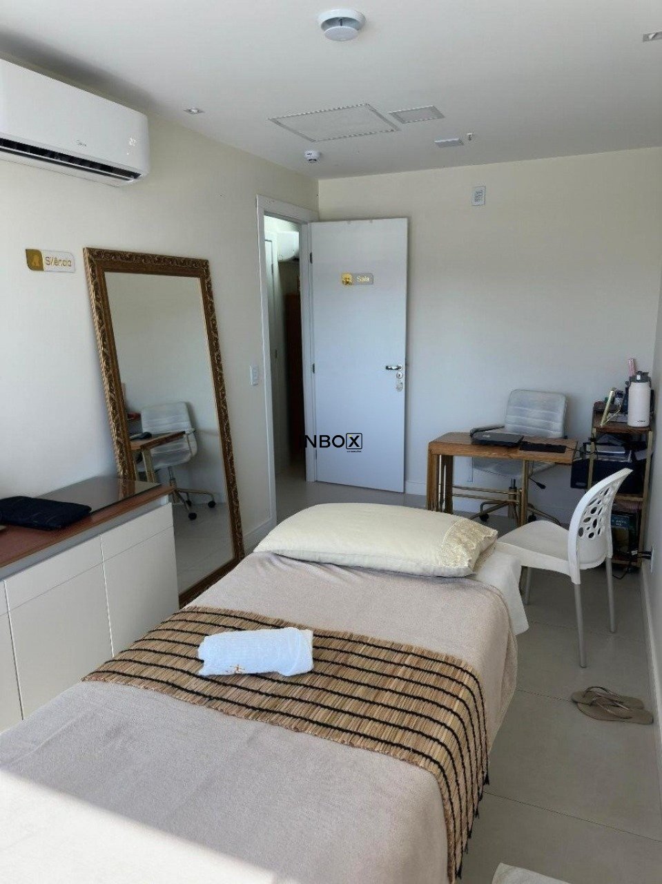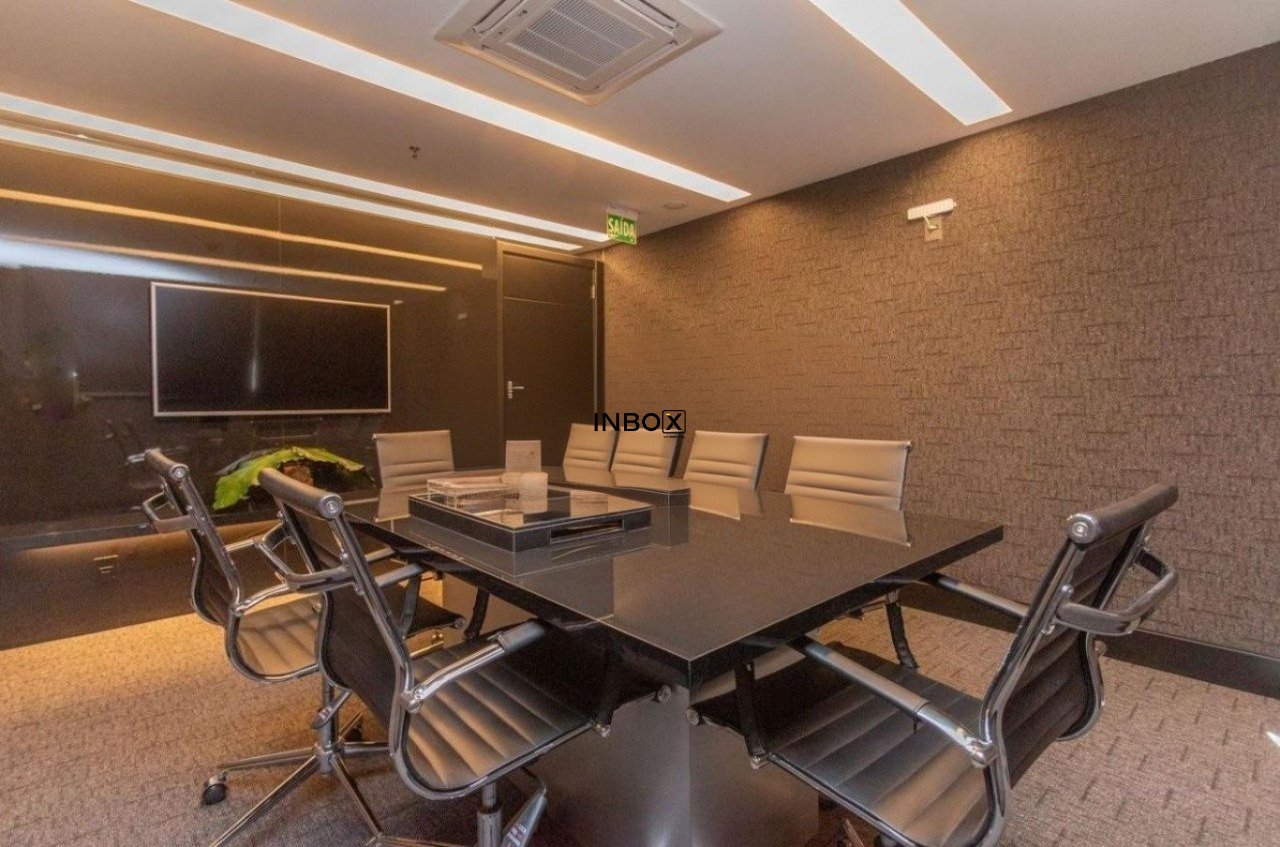 O espaço apresenta acabamento de alto padrão, com piso em porcelanato, divisórias já instaladas e teto em gesso com tratamento acústico, oferecendo conforto e privacidade. Possui três aparelhos de ar-condicionado com sistema VRF, que proporcionam climatização eficiente e econômica em todos os ambientes.
