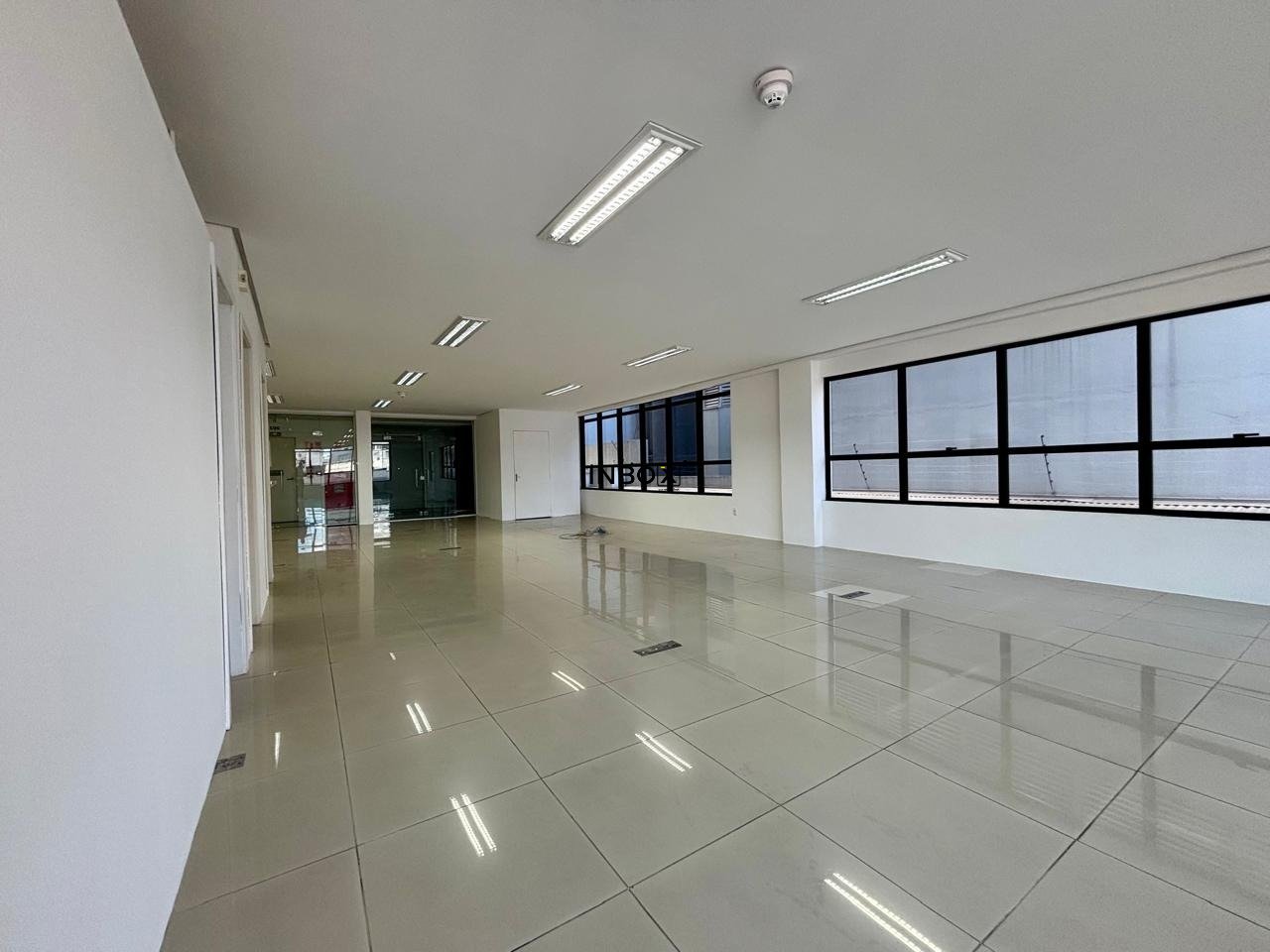 O layout da sala é aberto, proporcionando flexibilidade para diferentes tipos de atividades comerciais. O espaço é bem iluminado, com janelas que trazem luz natural ao ambiente, criando um local agradável para clientes e colaboradores.