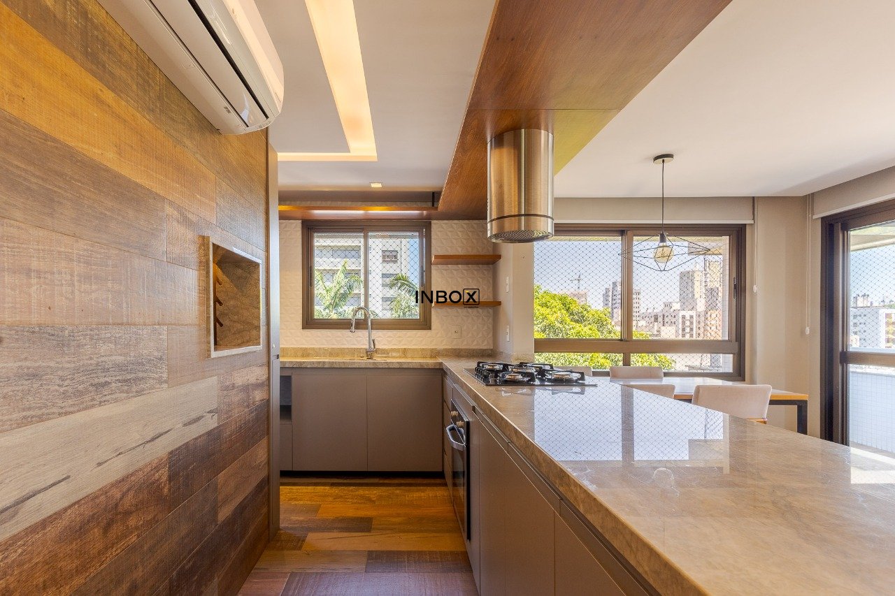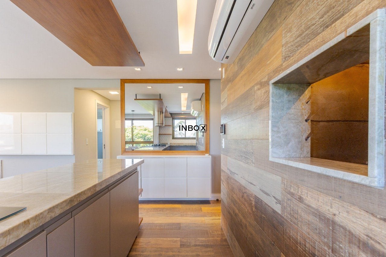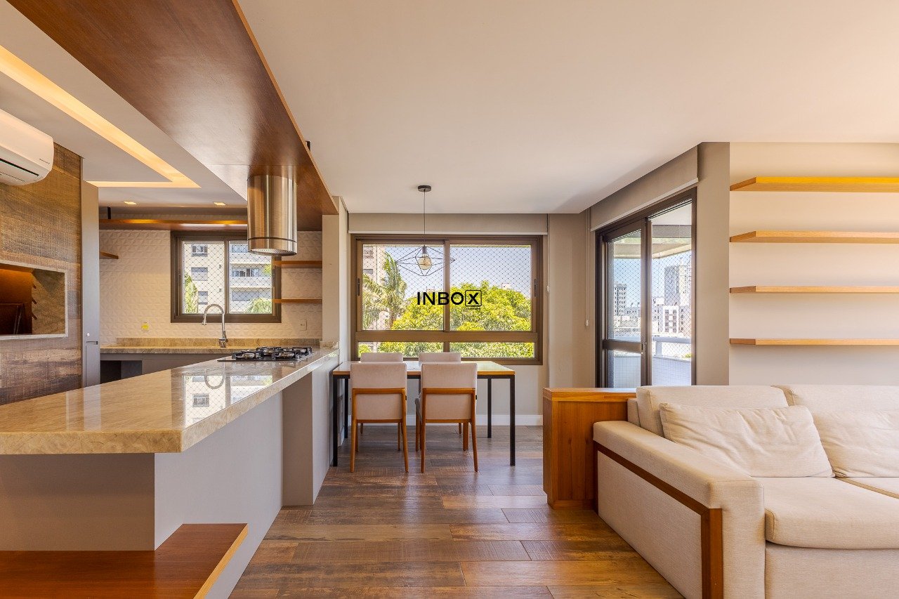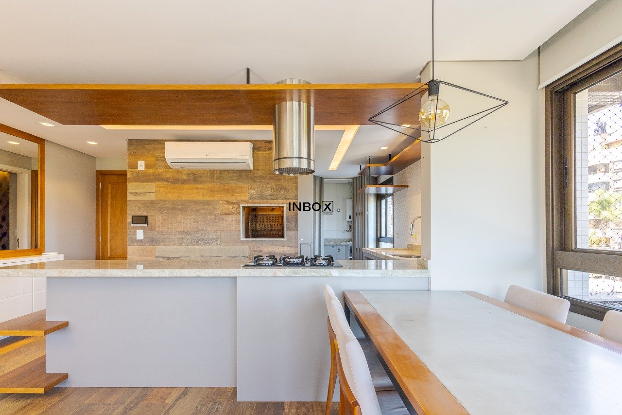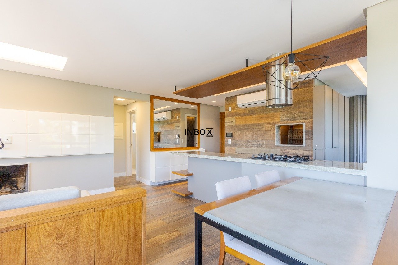O living é amplo, comporta dois ambientes bem definidos, conta com lareira e sacada, proporcionando ótima amplitude e luminosidade natural. A cozinha americana é integrada ao estar e dispõe de churrasqueira, criando um espaço ideal para receber. O imóvel ainda oferece lavabo e duas suítes com excelente distribuição interna.