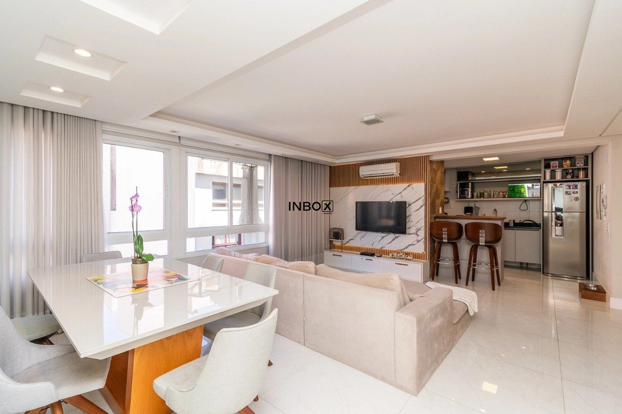 INBOX CIA IMOBILIARIA VENDE Apartamento semi mobiliado com 90m² de área privativa, originalmente com 3 dormitórios e atualmente configurado com 2 dormitórios. A planta foi inteligentemente adaptada para ampliar o living, criando uma área social mais espaçosa, integrada e confortável, ideal para receber amigos e aproveitar momentos em família. O ambiente conta com excelente iluminação natural, cozinha americana com churrasqueira, além de móveis planejados e decoração assinada por arquiteto, proporcionando praticidade e sofisticação. A planta permite reversão simples para a configuração original de três dormitórios.