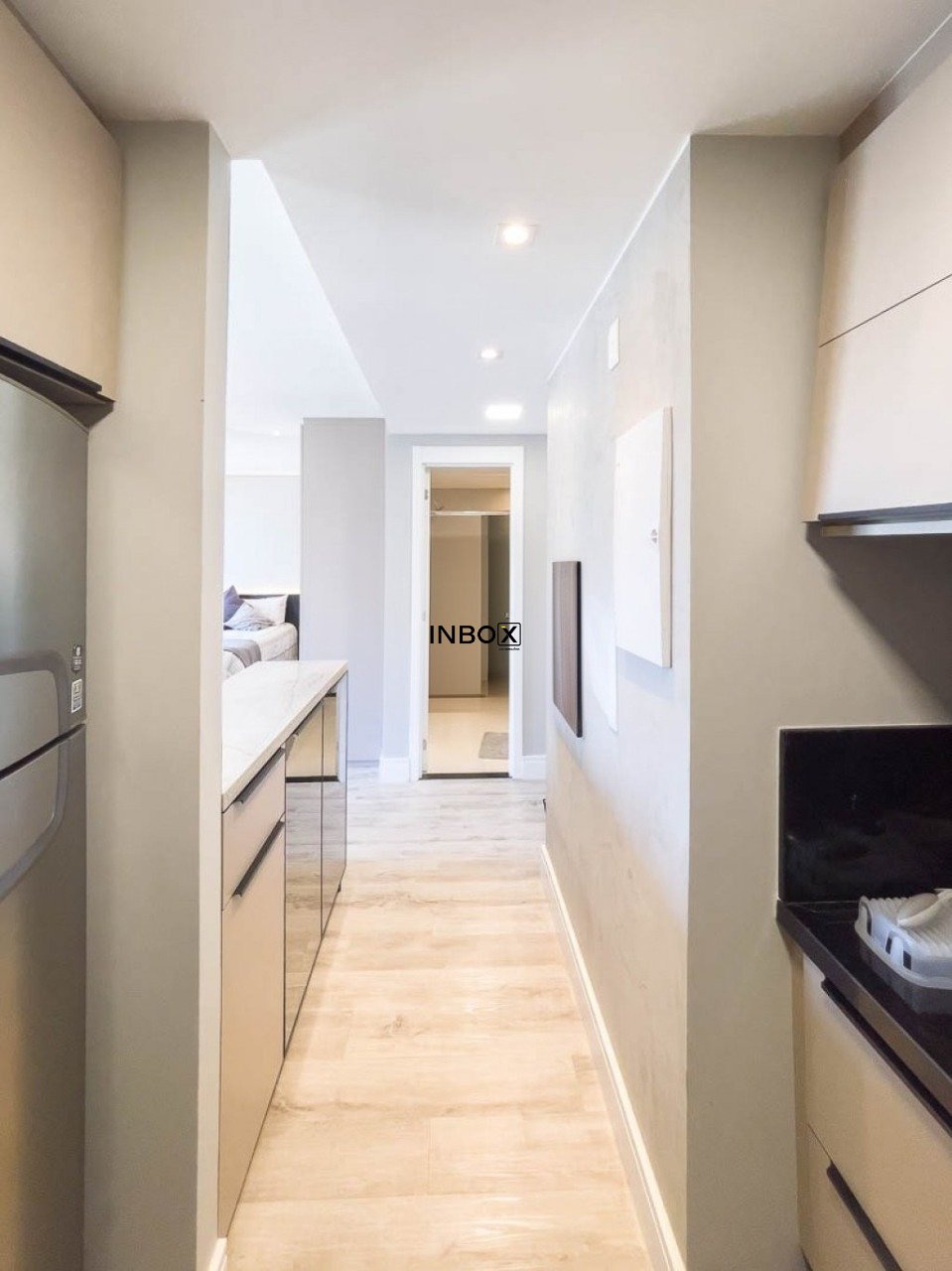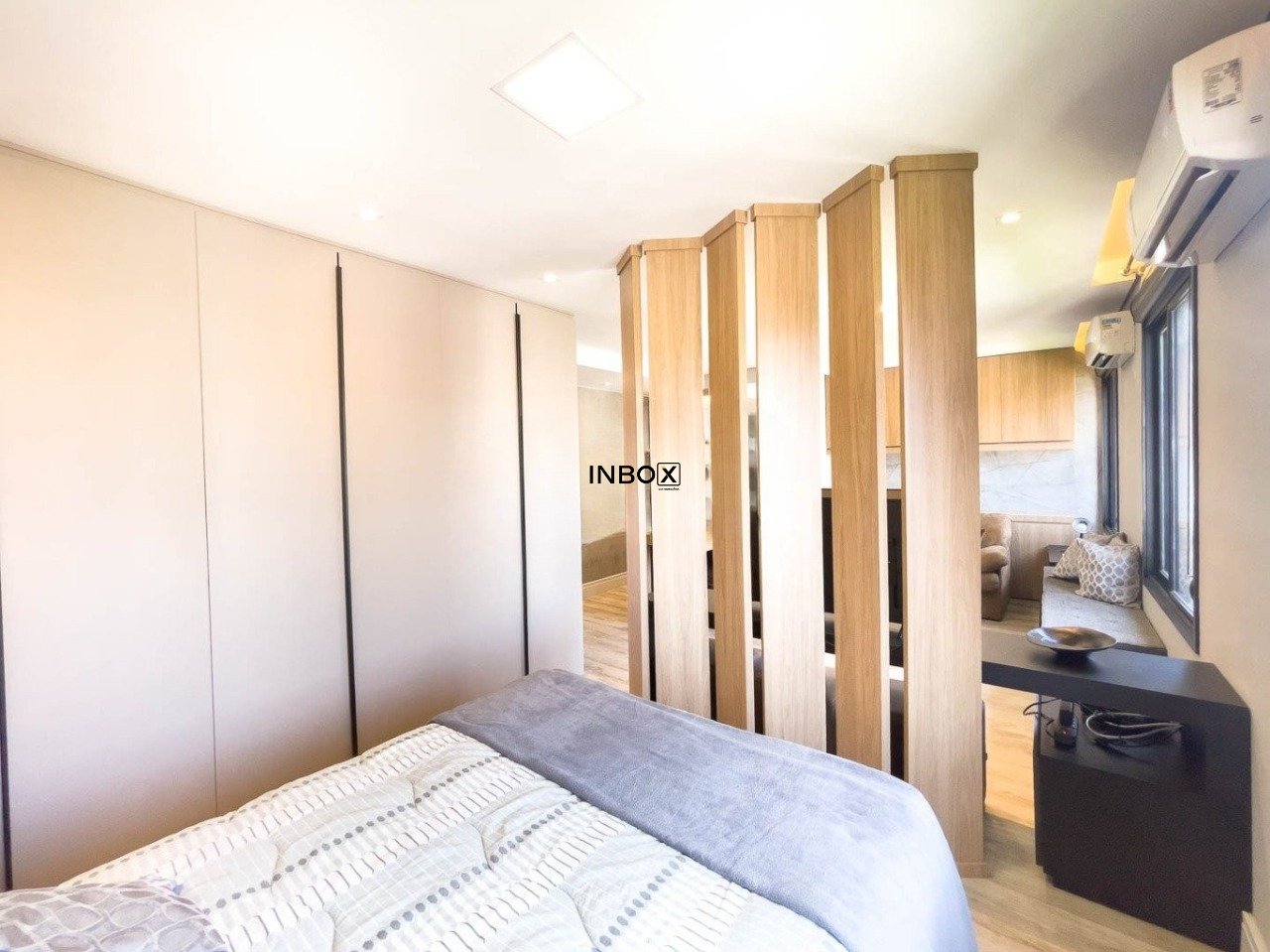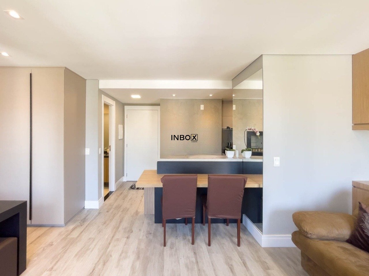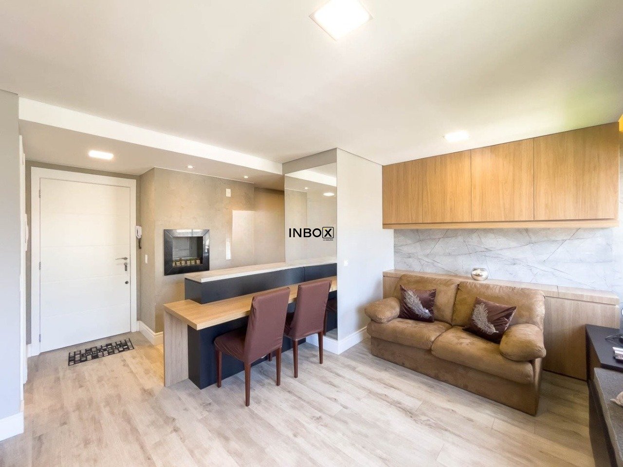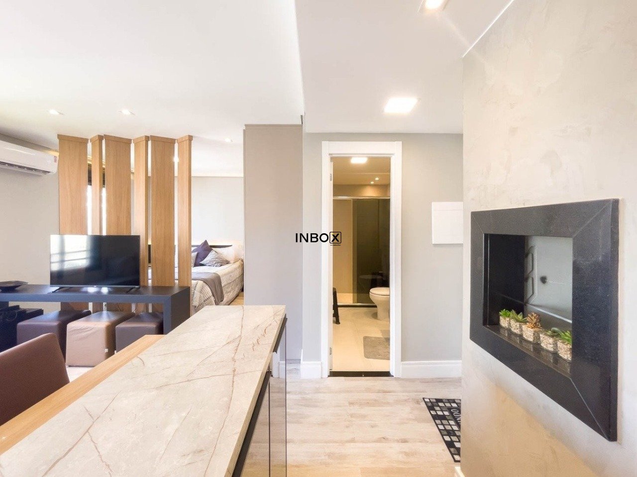 INBOX CIA IMOBILIARIA ALUGA Este apartamento conta com 44m² de área privativa e se destaca pelo excelente aproveitamento dos espaços e pelo cuidado nos detalhes. O living é acolhedor e funcional, mobiliado com sofá, armário e split, criando um ambiente confortável tanto para relaxar quanto para receber visitas. A cozinha apresenta um design moderno e prático, equipada com pia, armários, fogão por indução e churrasqueira, ideal para quem valoriza praticidade no dia a dia sem abrir mão de bons momentos à mesa.