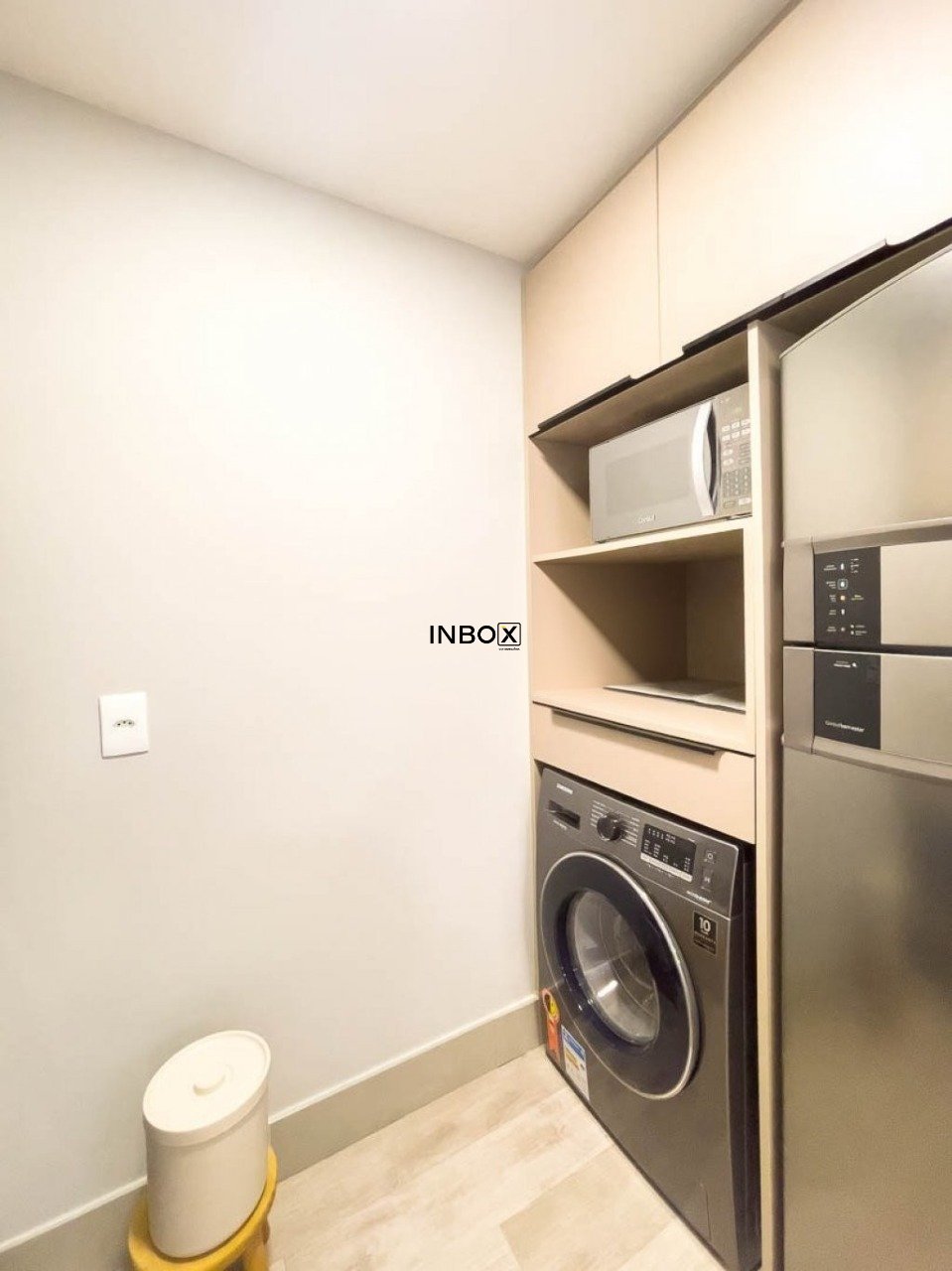 O dormitório oferece conforto e organização, com cama e armário, proporcionando um espaço agradável para descanso. O banheiro social possui box de vidro e armário, garantindo mais funcionalidade e elegância ao ambiente. A área de serviço conta com máquina de lavar, trazendo ainda mais comodidade para a rotina.