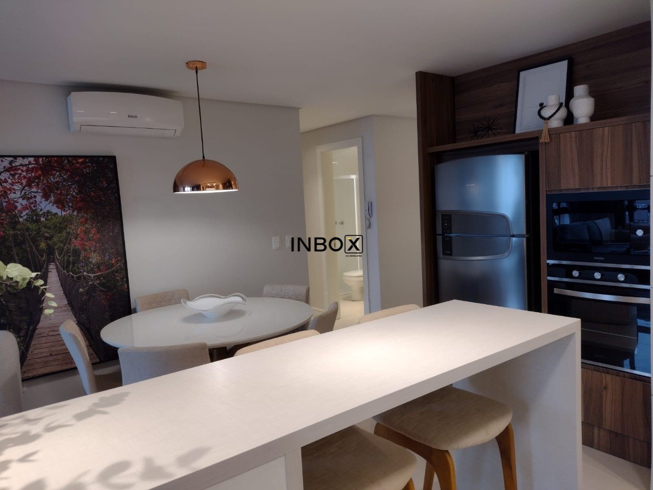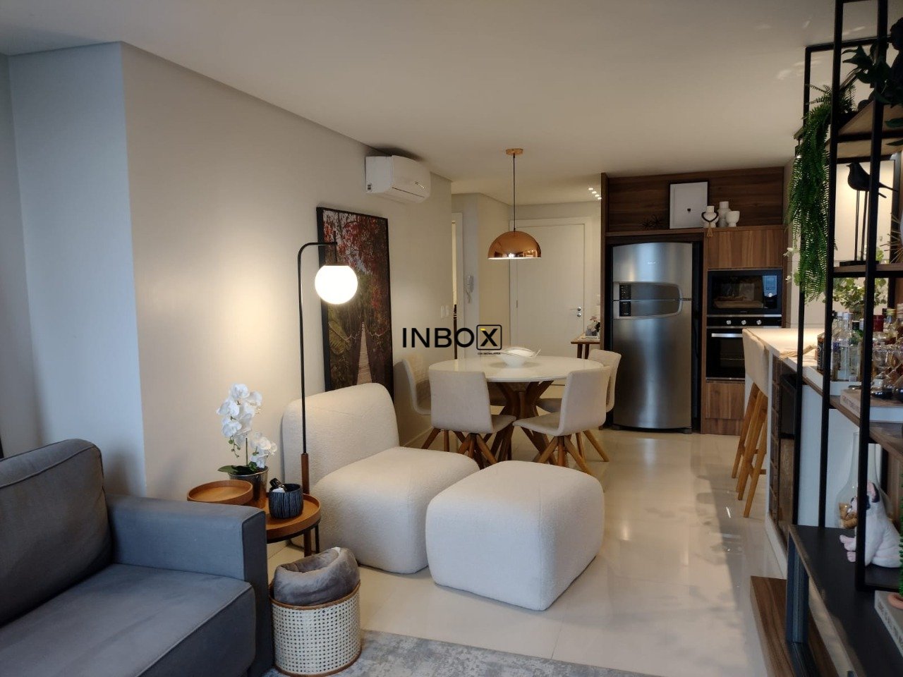 Apartamento com área de serviço completa, sala de jantar e sala de estar integradas, sacada fechada, Apartamento rebaixado em gesso, iluminação planejada e em harmonia com o ambiente, laminado nas áreas íntimas e porcelanato nas áreas sociais e úmidas, churrasqueira, ar-condicionado, Excelente iluminação natural.