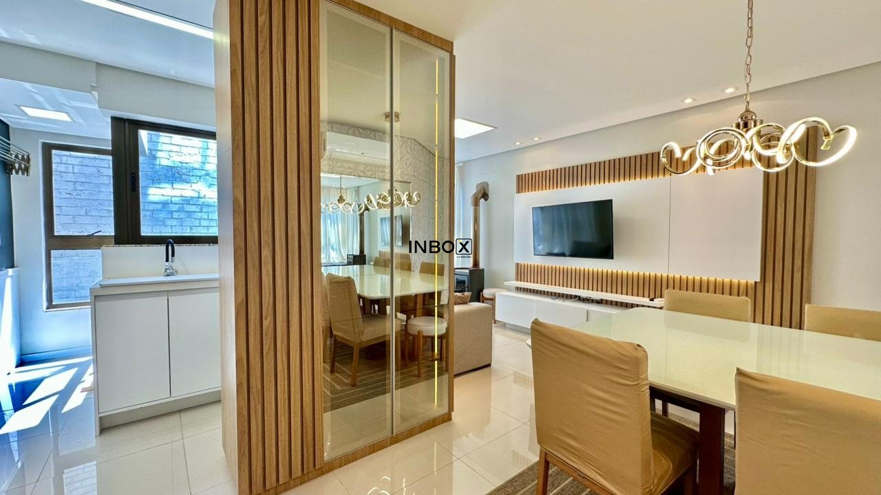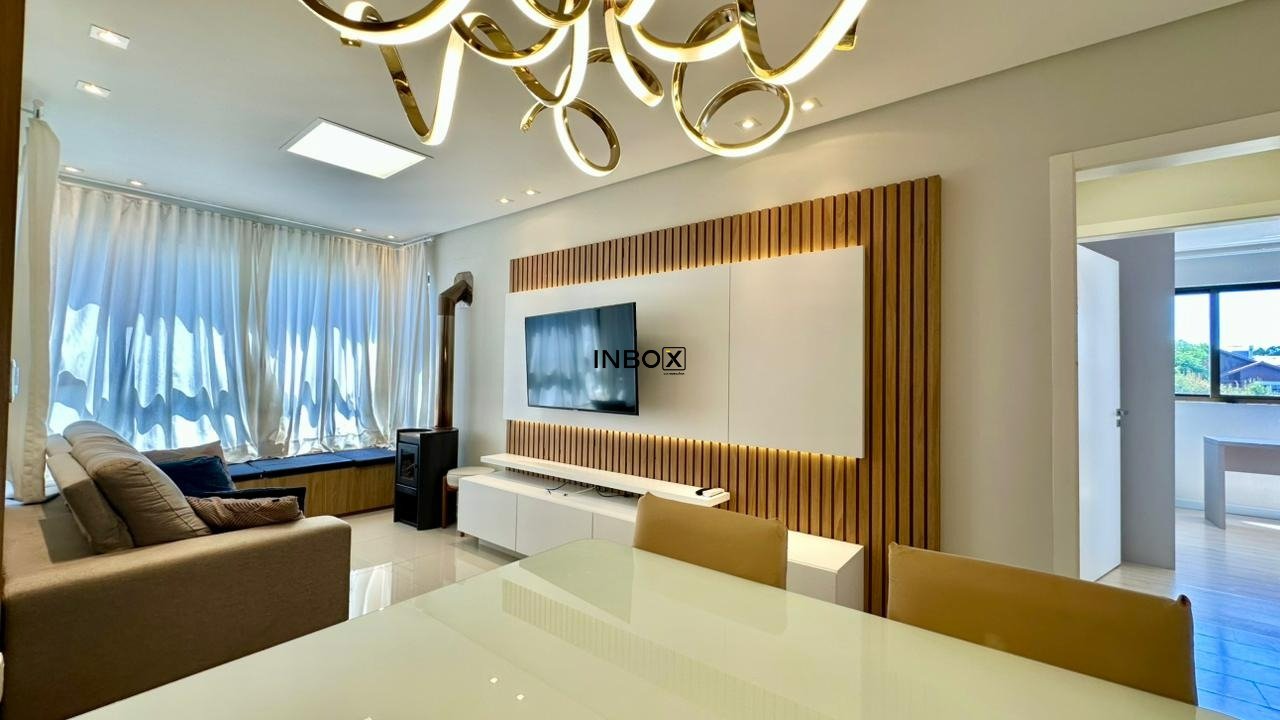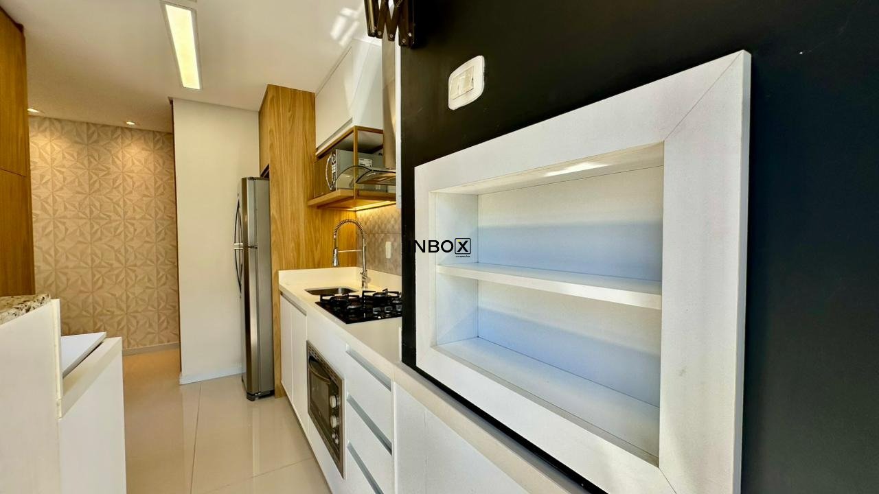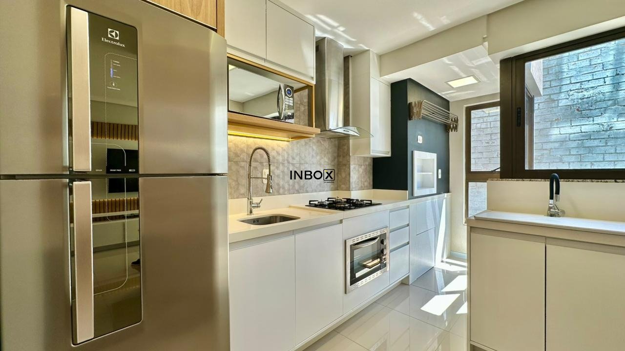 INBOX CIA IMOBILIARIA ALUGA: Apartamento com 75 m², 2 dormitórios, sendo 01 suíte. Imóvel totalmente mobiliado e com eletros, churrasqueira, laminado nas áreas intimas, porcelanato nas áreas sociais, lareira, com 01 box de garagem.