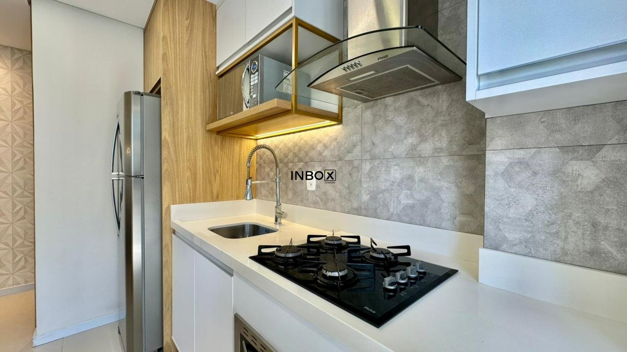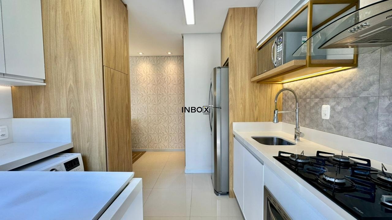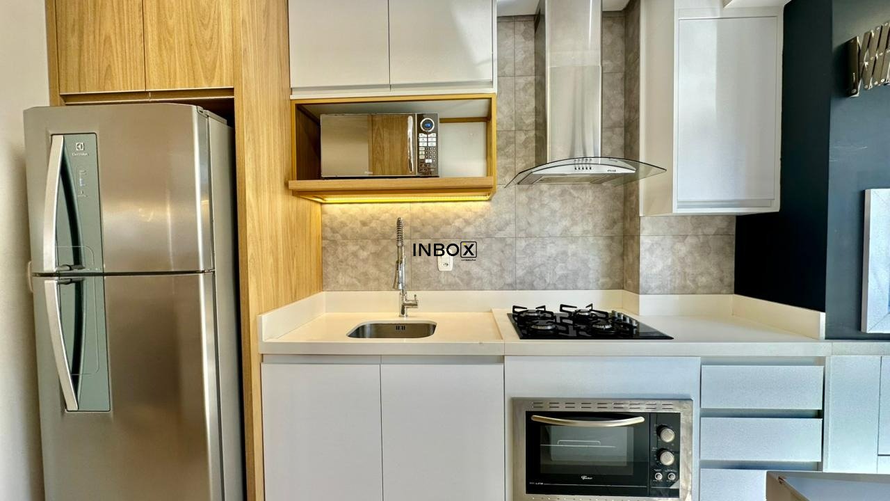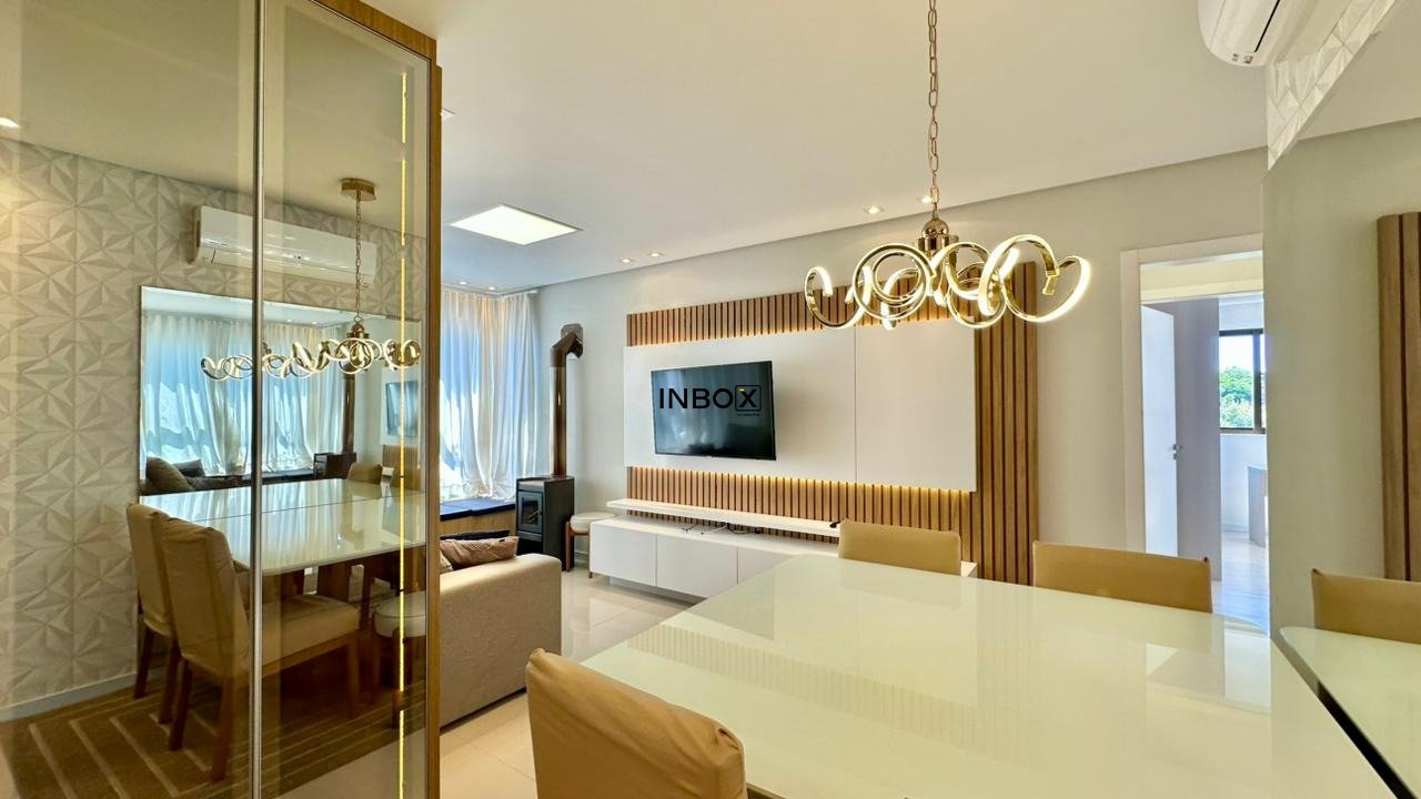 INBOX CIA IMOBILIARIA ALUGA: Apartamento com 75 m², 2 dormitórios, sendo 01 suíte. Imóvel totalmente mobiliado e com eletros, churrasqueira, laminado nas áreas intimas, porcelanato nas áreas sociais, lareira, com 01 box de garagem.